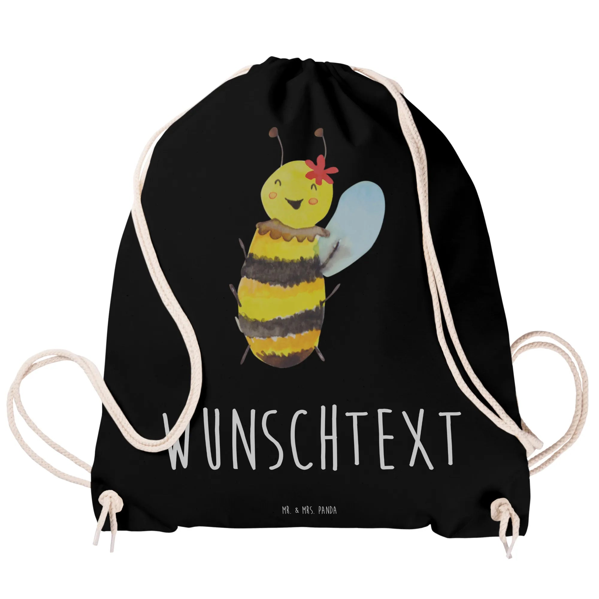 Biene Happy – der perfekte, personalisierte Sportbeutel von Mr. & Mrs. Panda! Dieser bezaubernde Sportbeutel ist nicht nur ein praktischer Begleiter für den Alltag, sondern auch ein wunderschönes Accessoire, das mit deinem Wunschnamen oder Wunschtext individuell gestaltet werden kann. Egal ob für Sport, Schule oder Freizeit, mit diesem einzigartigen Beutel machst du garantiert einen tollen Eindruck. Der hochwertige Druck zeigt eine niedliche Biene mit einer Blume auf dem Kopf, und der Slogan 'Bee happy' verbreitet gute Laune. Jedes Mal, wenn du den Beutel in die Hand nimmst, wirst du an die positive Energie der Biene erinnert!