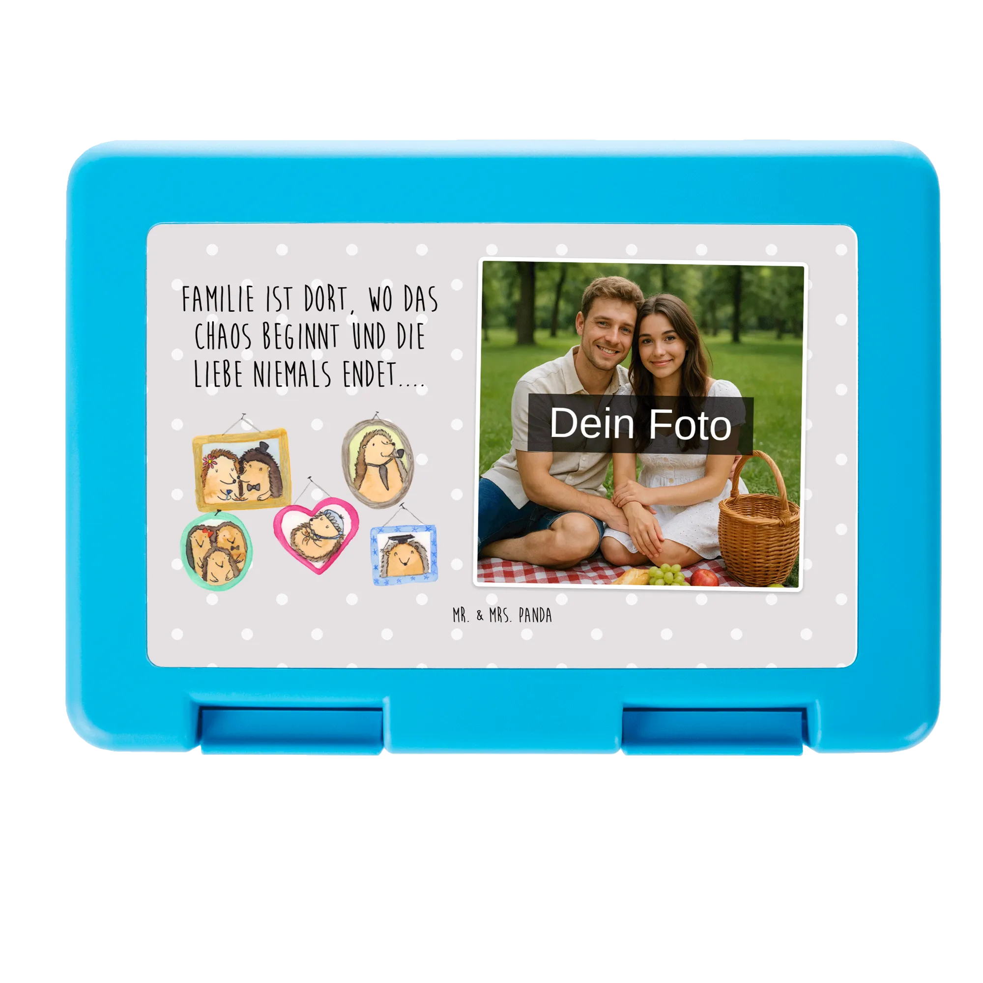 Spersonalizowane pudełko na kanapki ze zdjęciem Rodzina jeży - Pastelowy czerwony