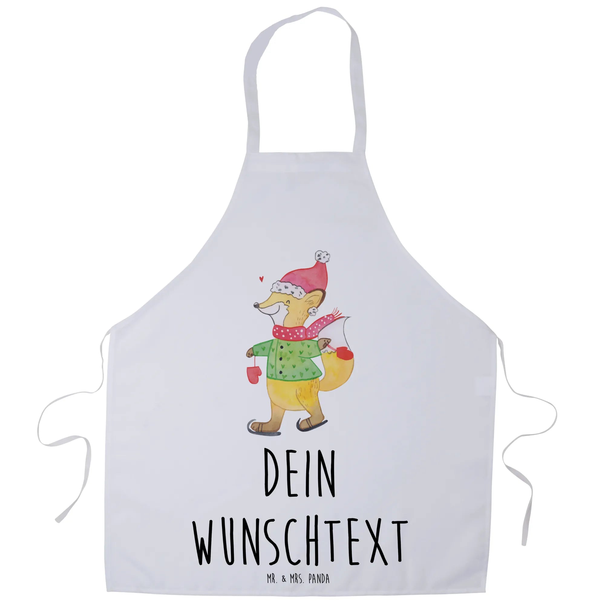 Spersonalizowany fartuch kuchenny lis łyżwy - biały