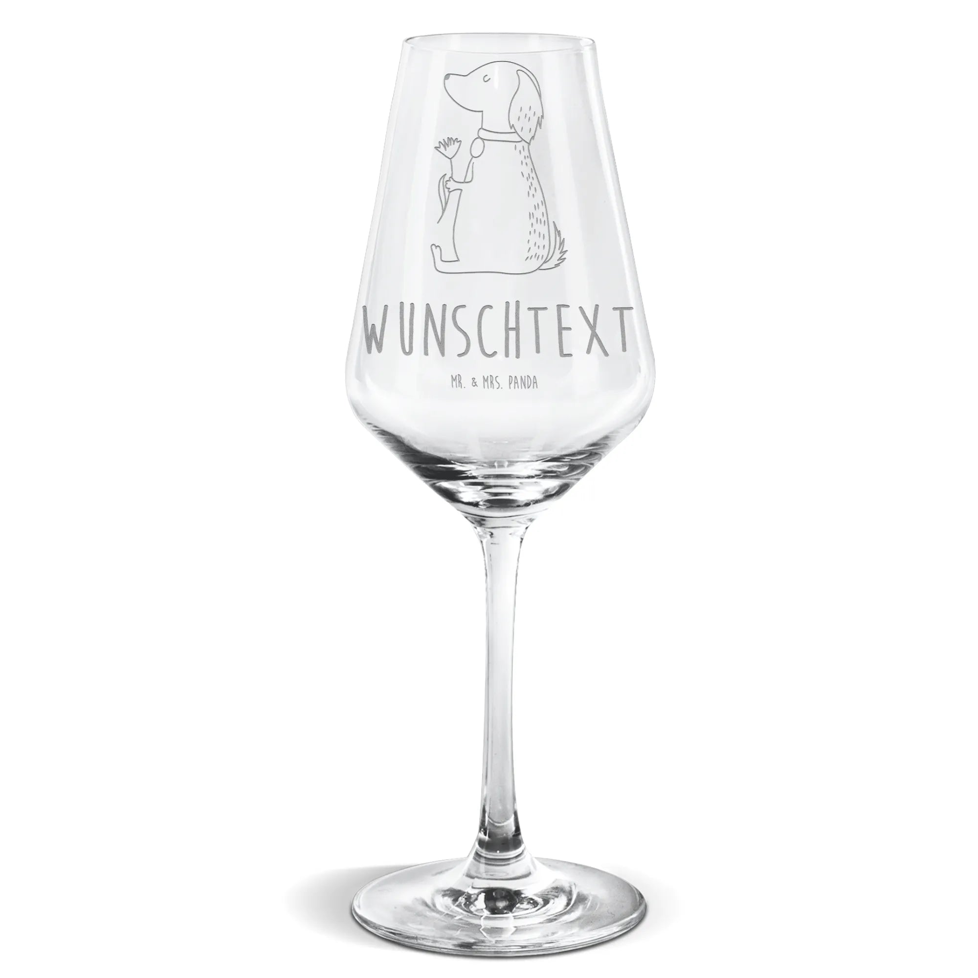 Spersonalizowany kieliszek do białego wina pies kwiat – Mr. & Mrs. Panda