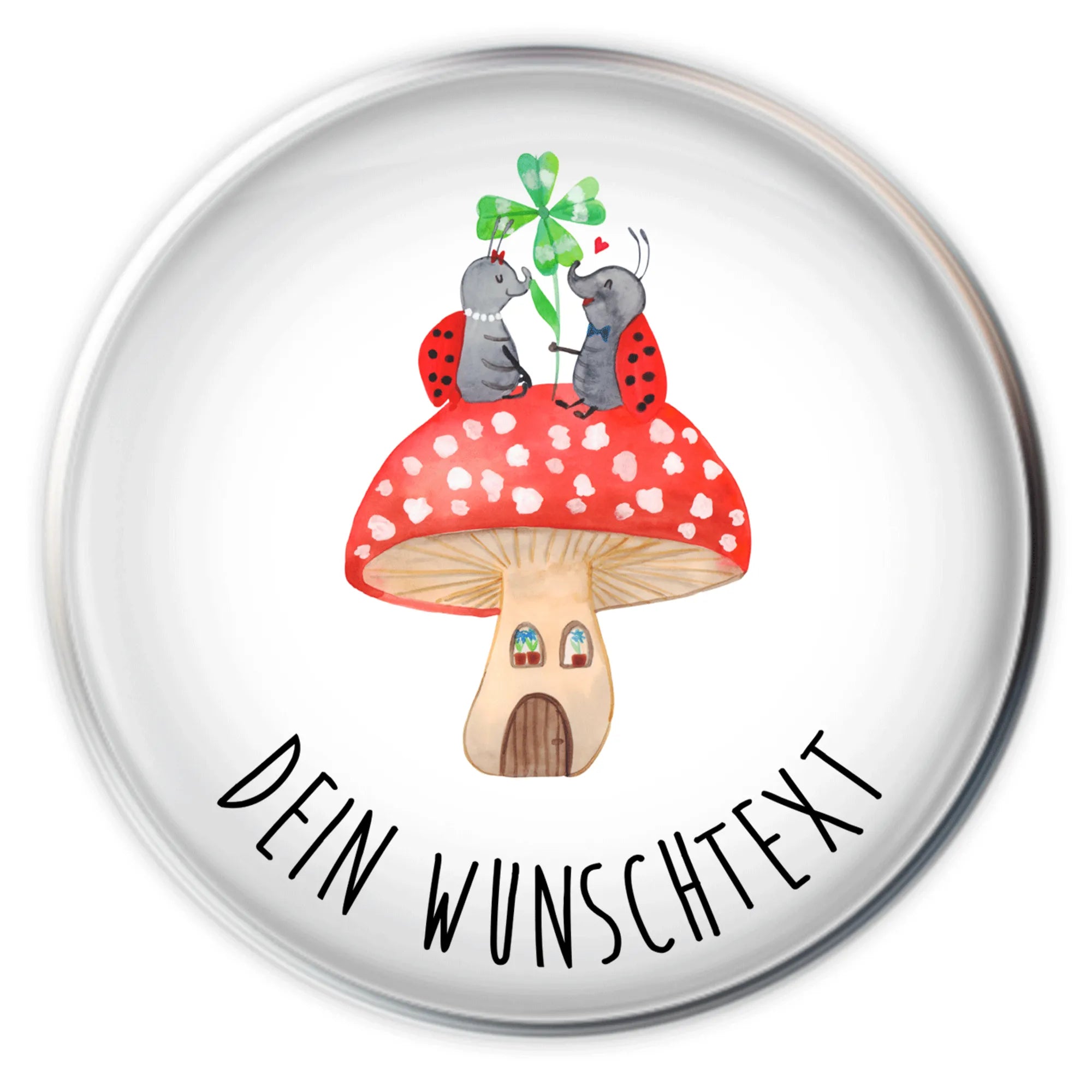 Suchst du nach dem perfekten Geschenk für dein Zuhause oder das eines lieben Freundes? Dann haben wir genau das Richtige für dich! Der personalisierte Waschbeckenstöpsel mit dem zauberhaften Motiv "Marienkäfer Paar Fliegenpilz" aus der beliebten Small World Kollektion von Mr. & Mrs. Panda wird garantiert für gute Laune in jedem Badezimmer sorgen.