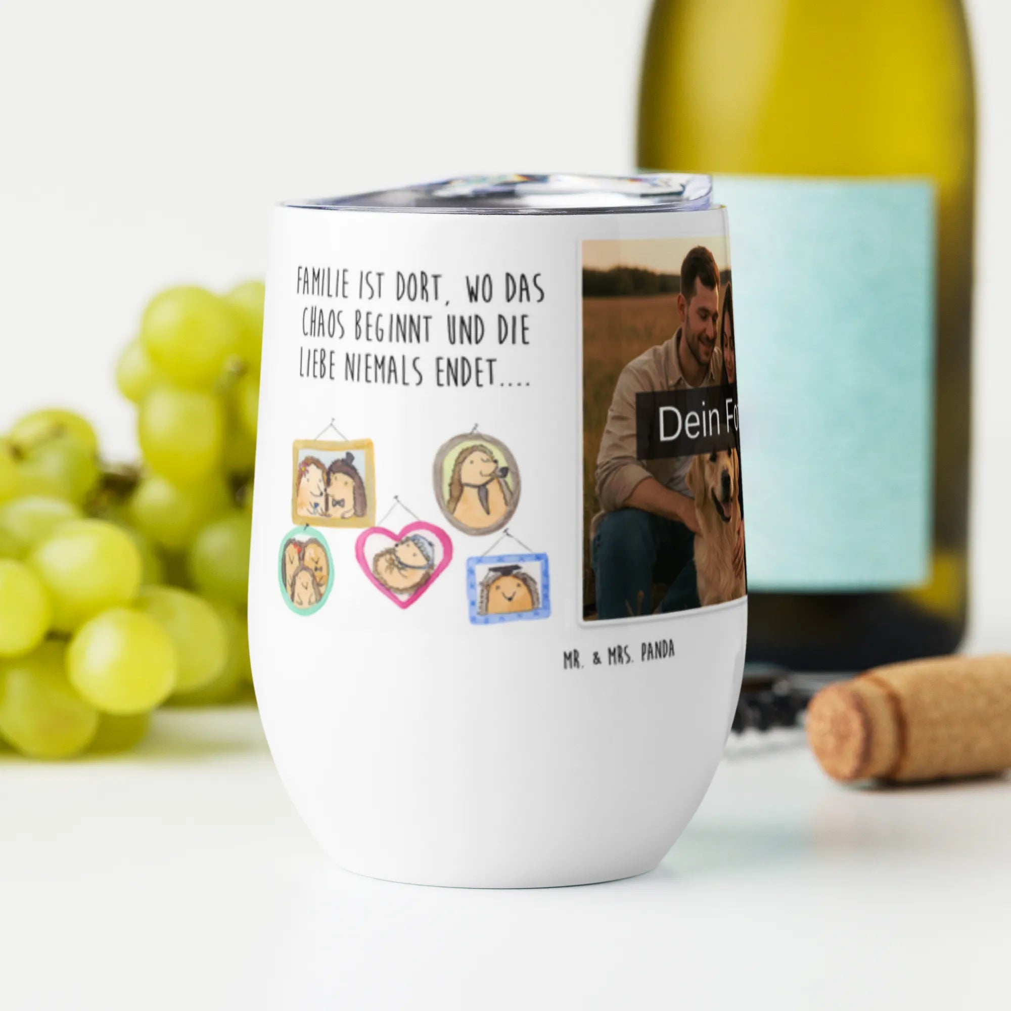 Spersonalizowany kubek do wina ze zdjęciem Rodzina jeży
