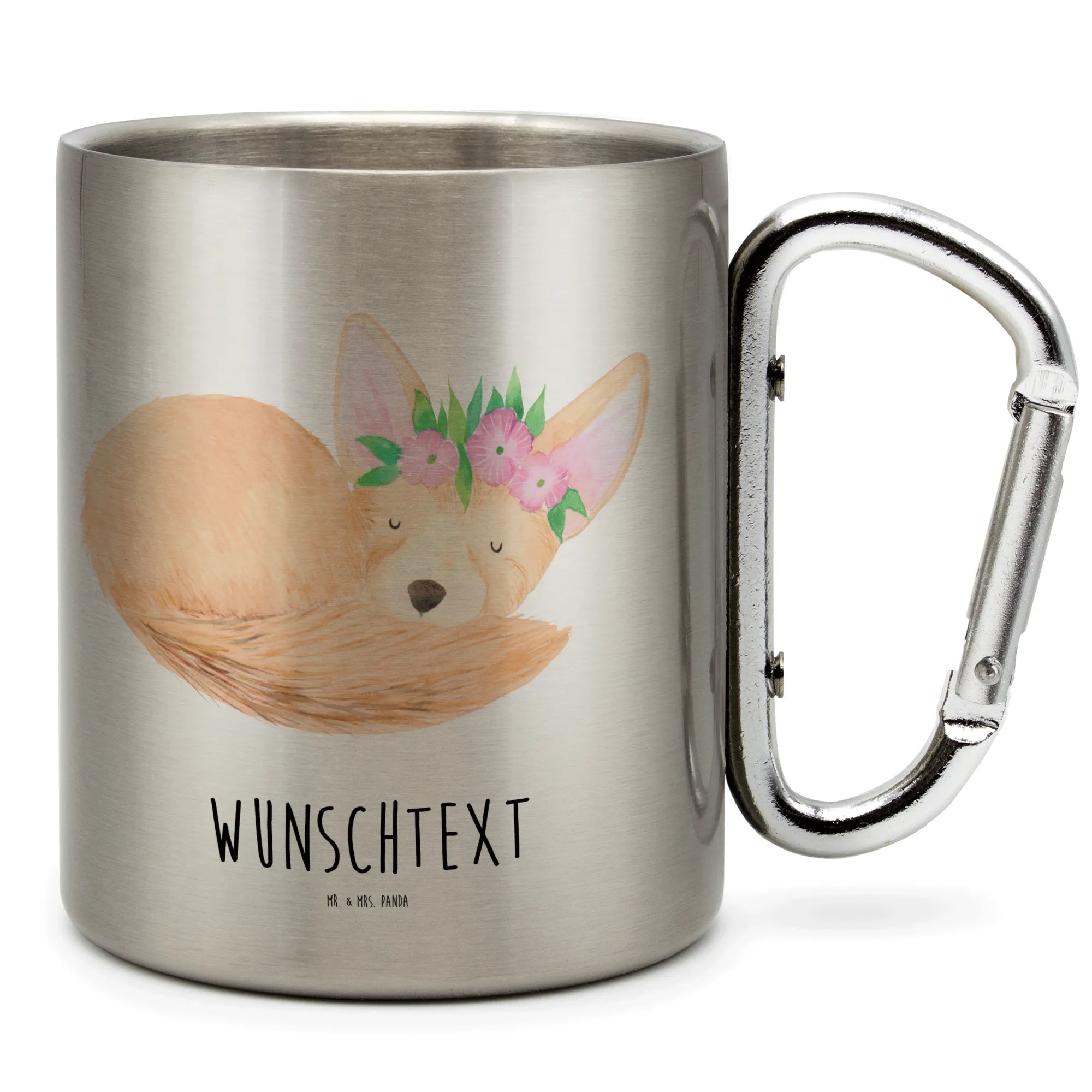 Spersonalizowany kubek ze stali nierdzewnej lis pustynny kwiaty