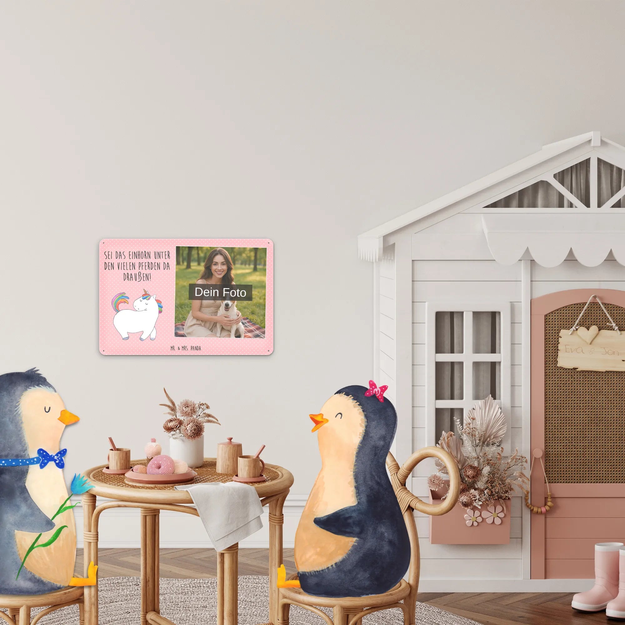 Spersonalizowany metalowy szyld ze zdjęciem jednorożec dumnie kroczyć - DIN A6