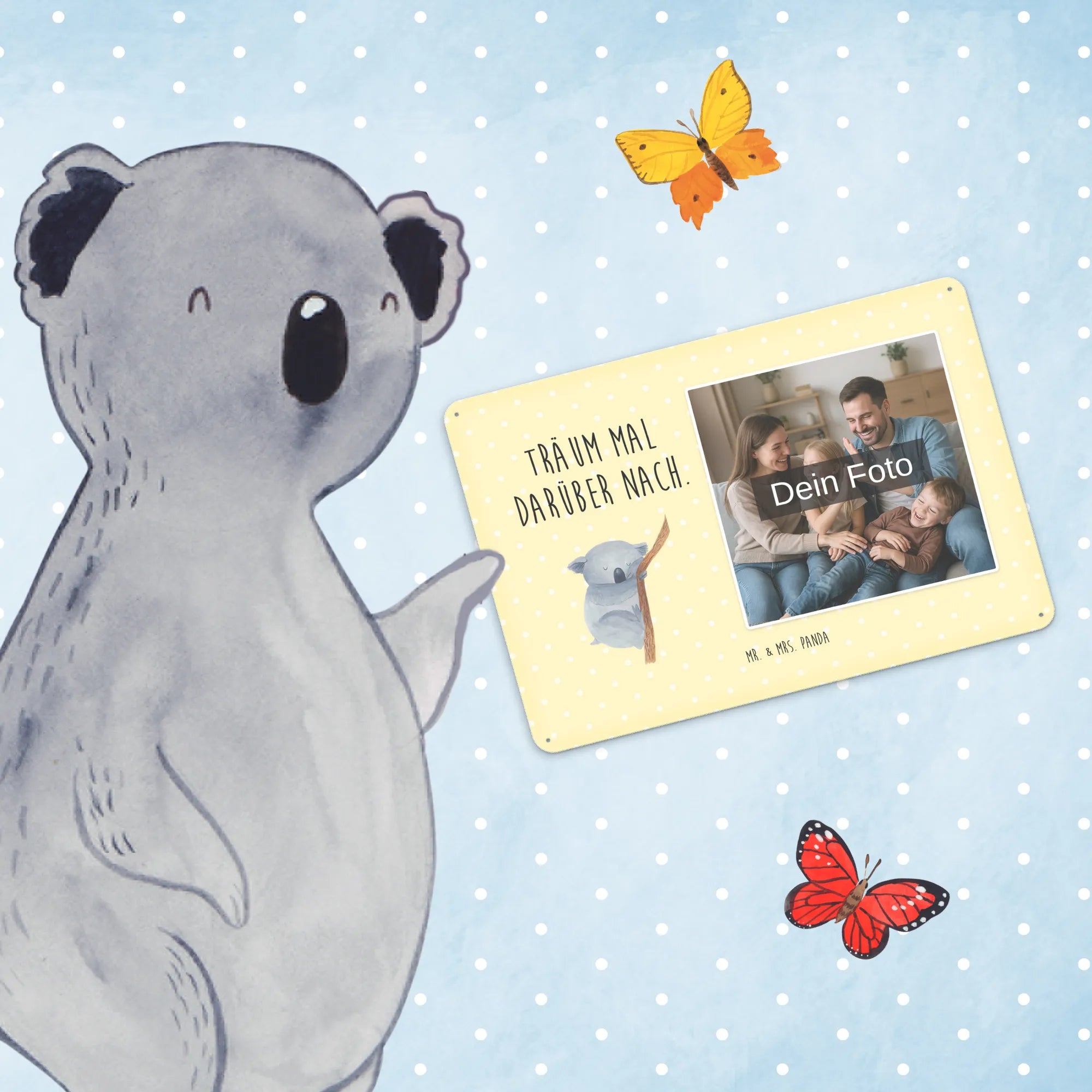 Spersonalizowany metalowy szyld ze zdjęciem Koala - DIN A6 - Pastelowy żółty