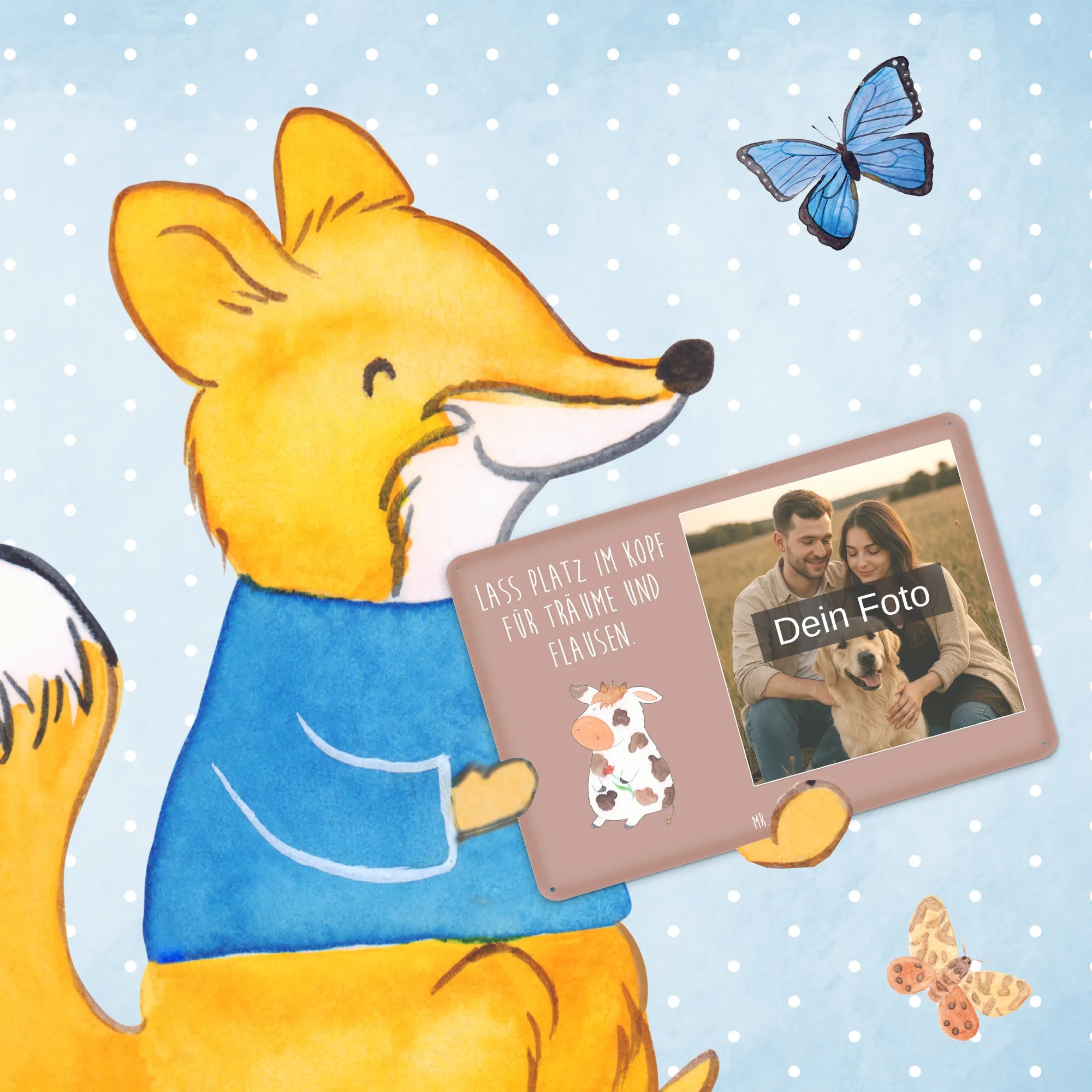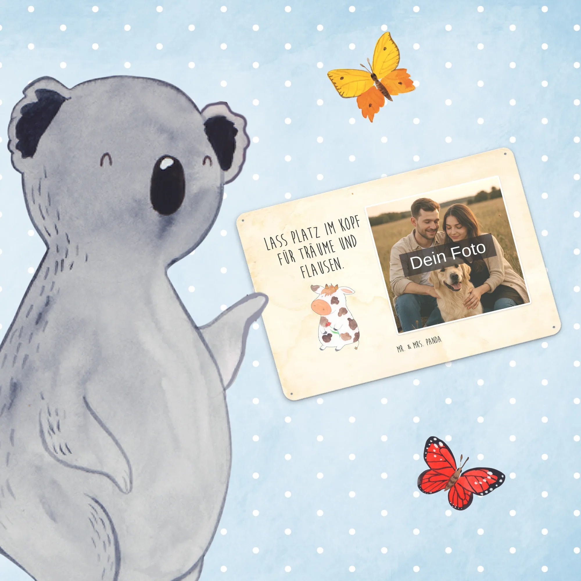 Spersonalizowany metalowy szyld ze zdjęciem Krowa - DIN A6 - Vintage