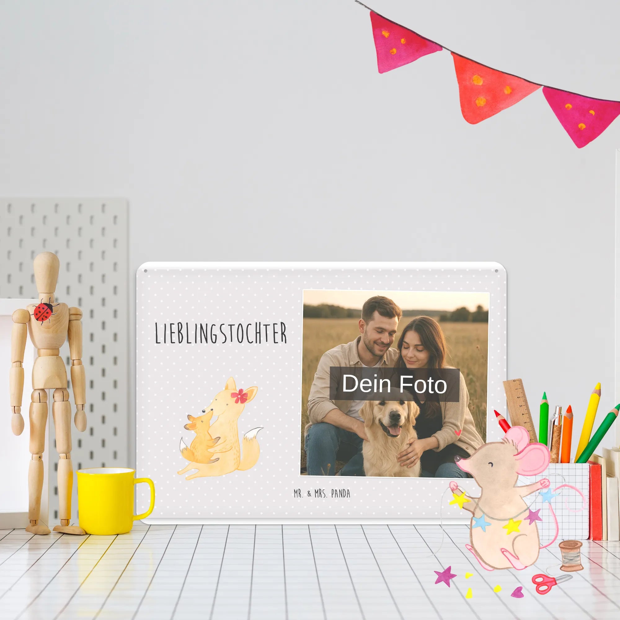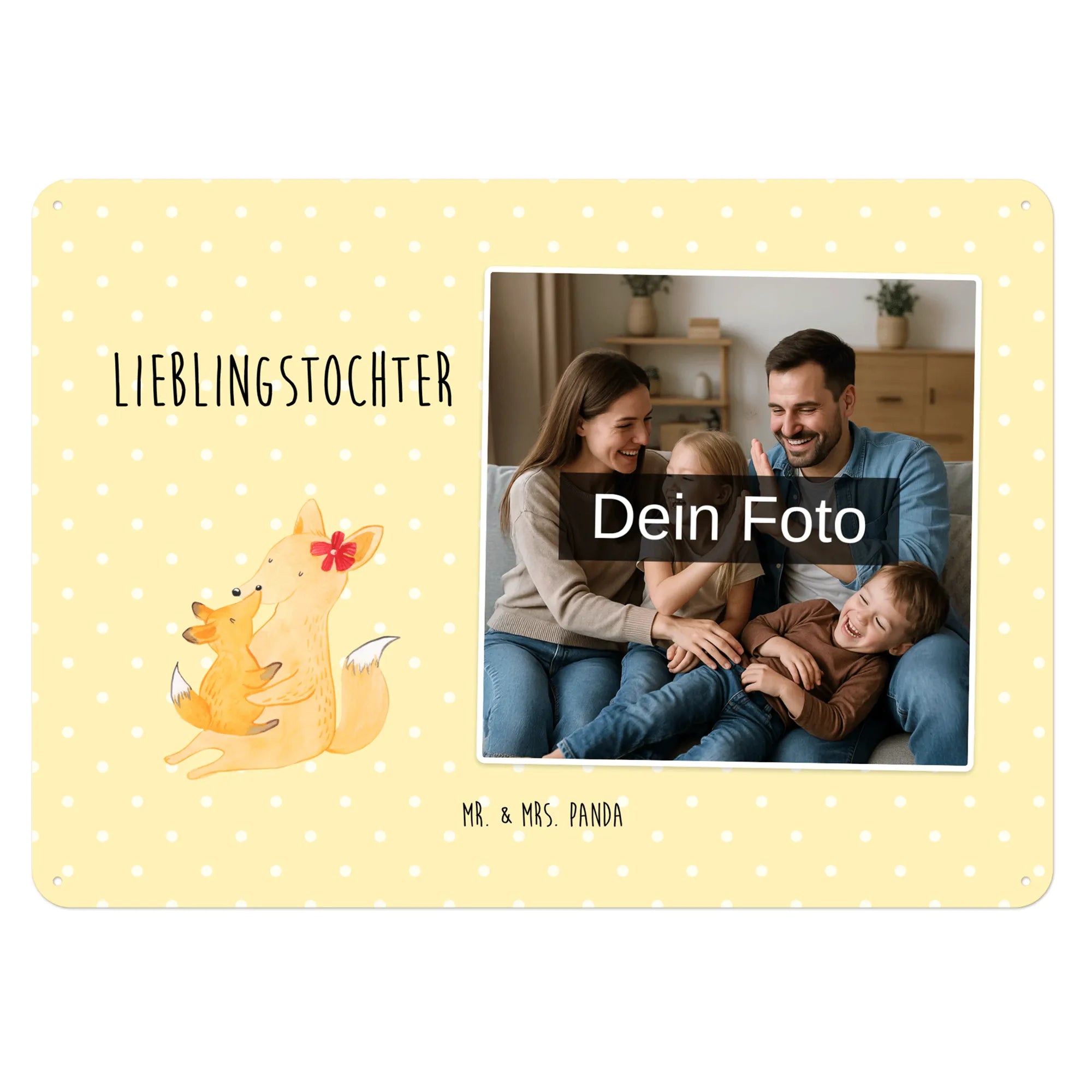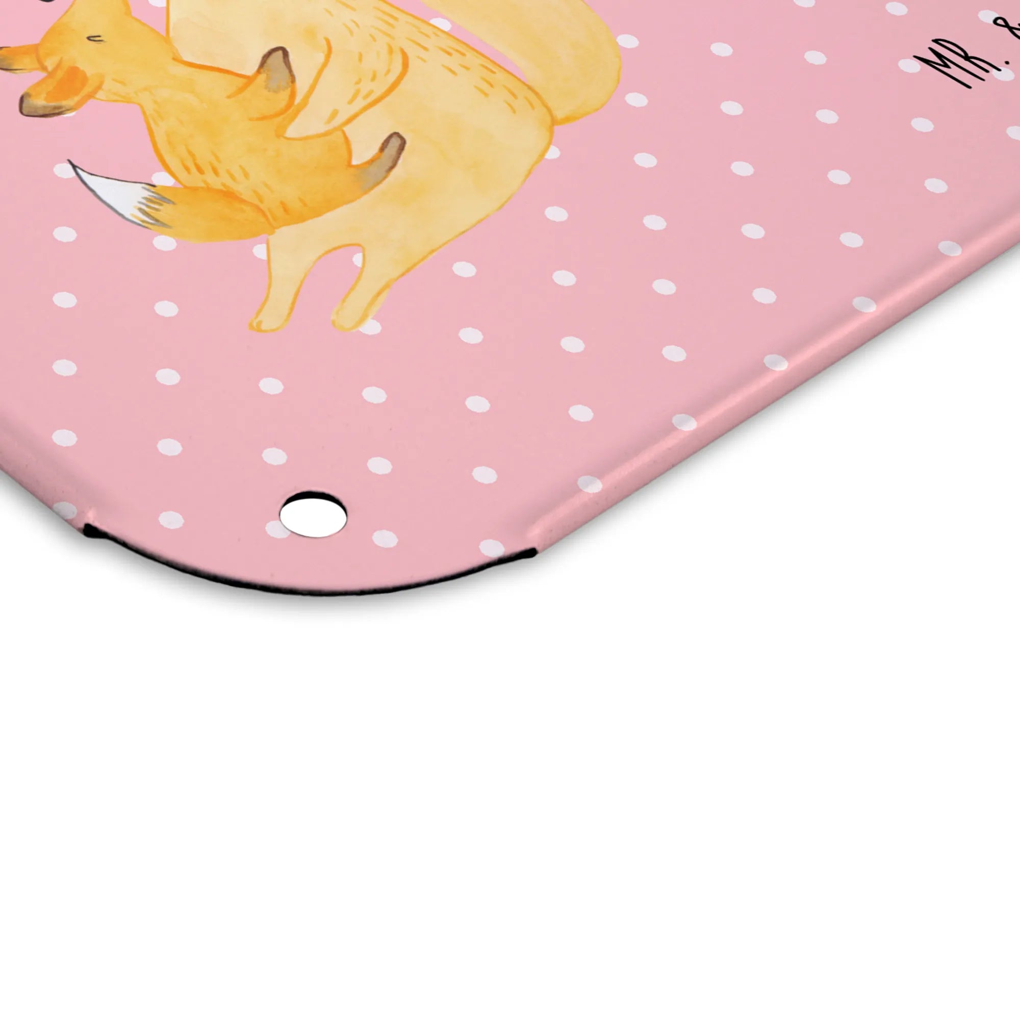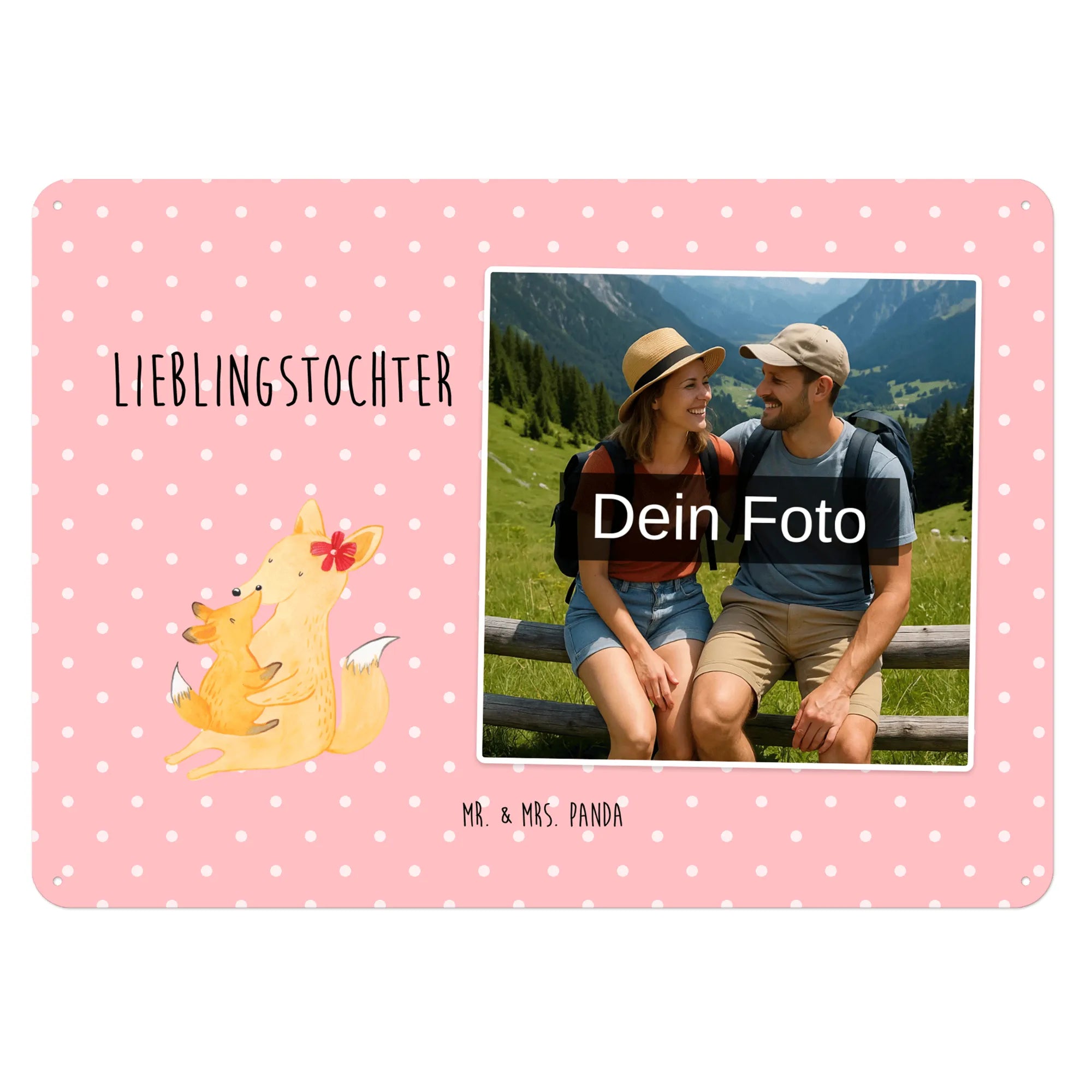 Spersonalizowany metalowy szyld ze zdjęciem Lis Mama - DIN A6 - Pastelowy czerwony