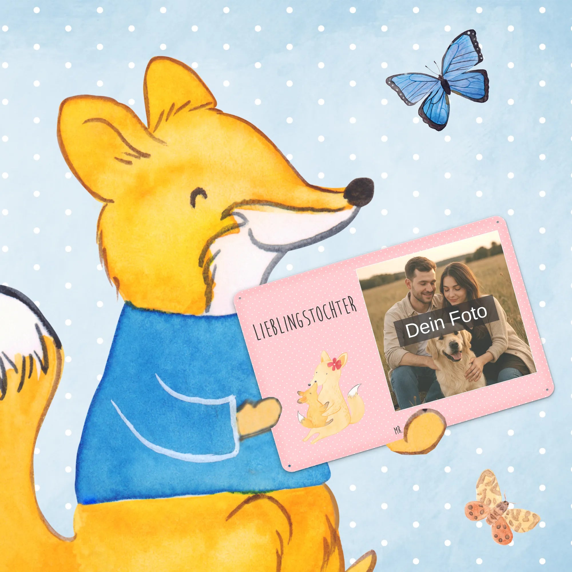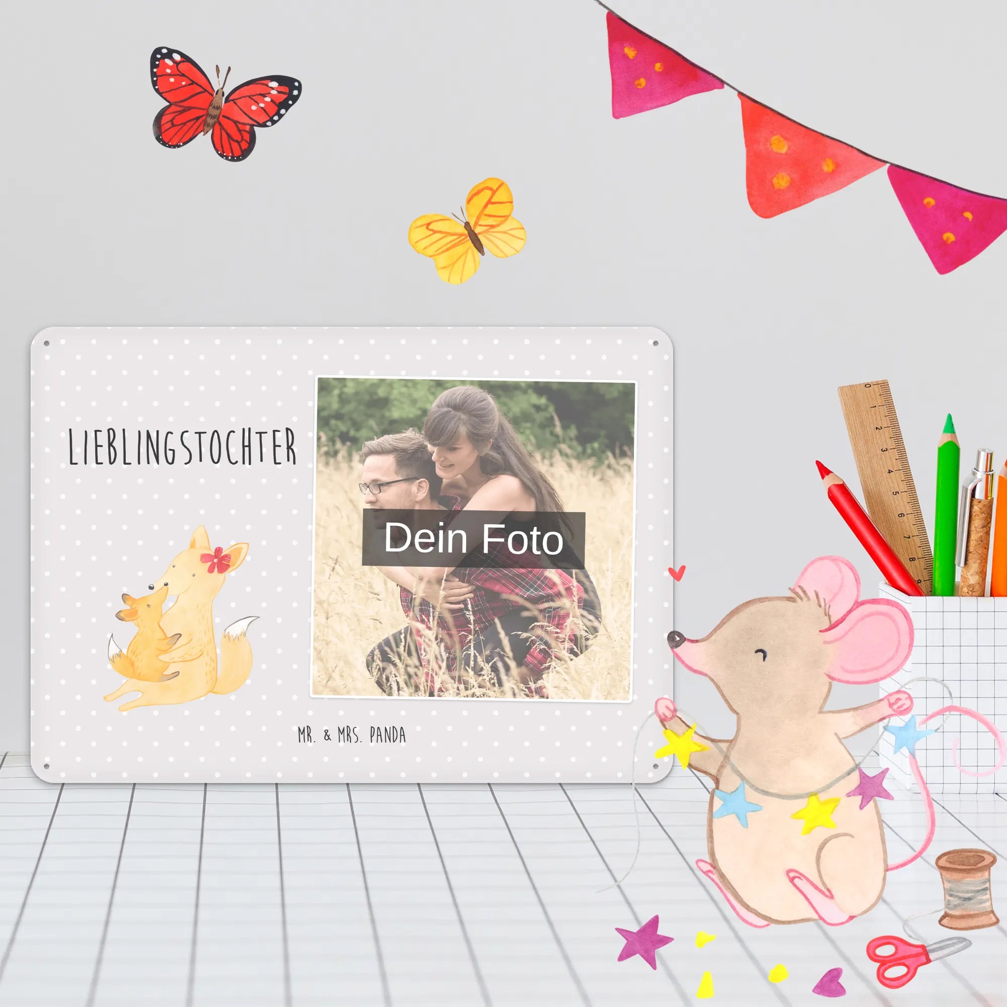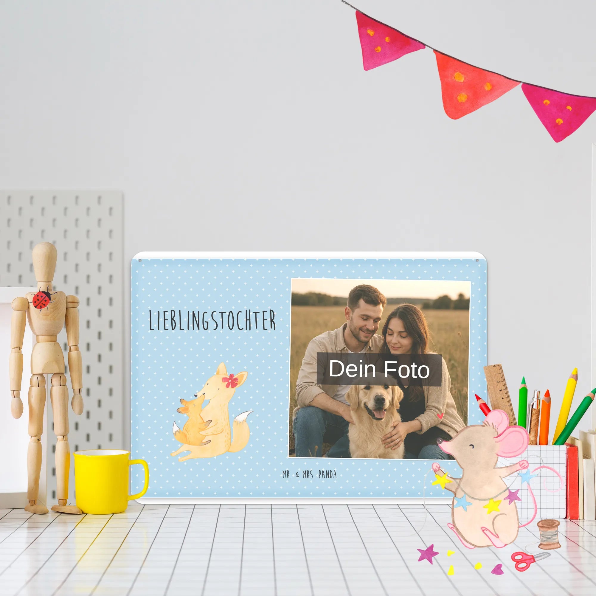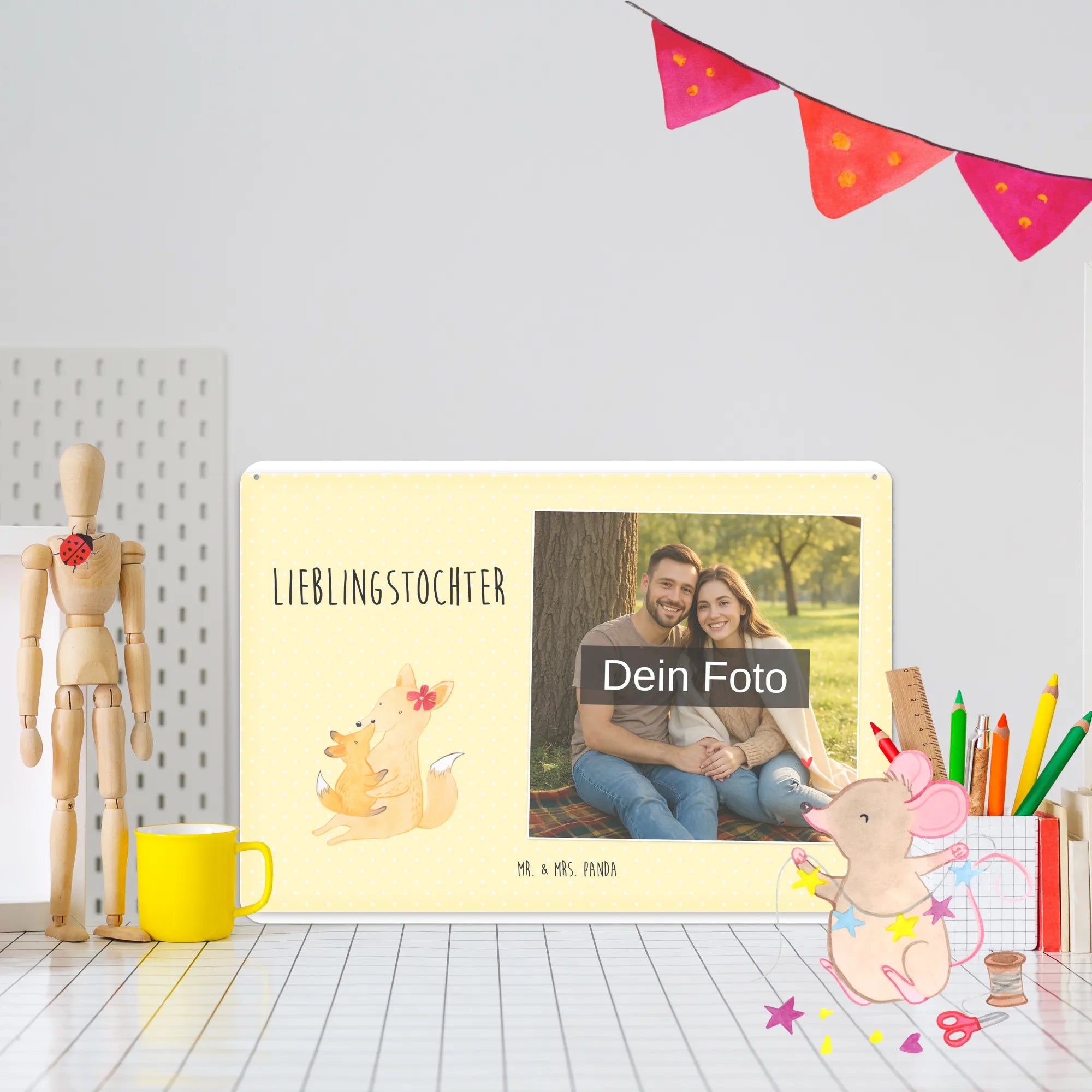 Spersonalizowany metalowy szyld ze zdjęciem Lis Mama - DIN A6 - Pastelowy czerwony