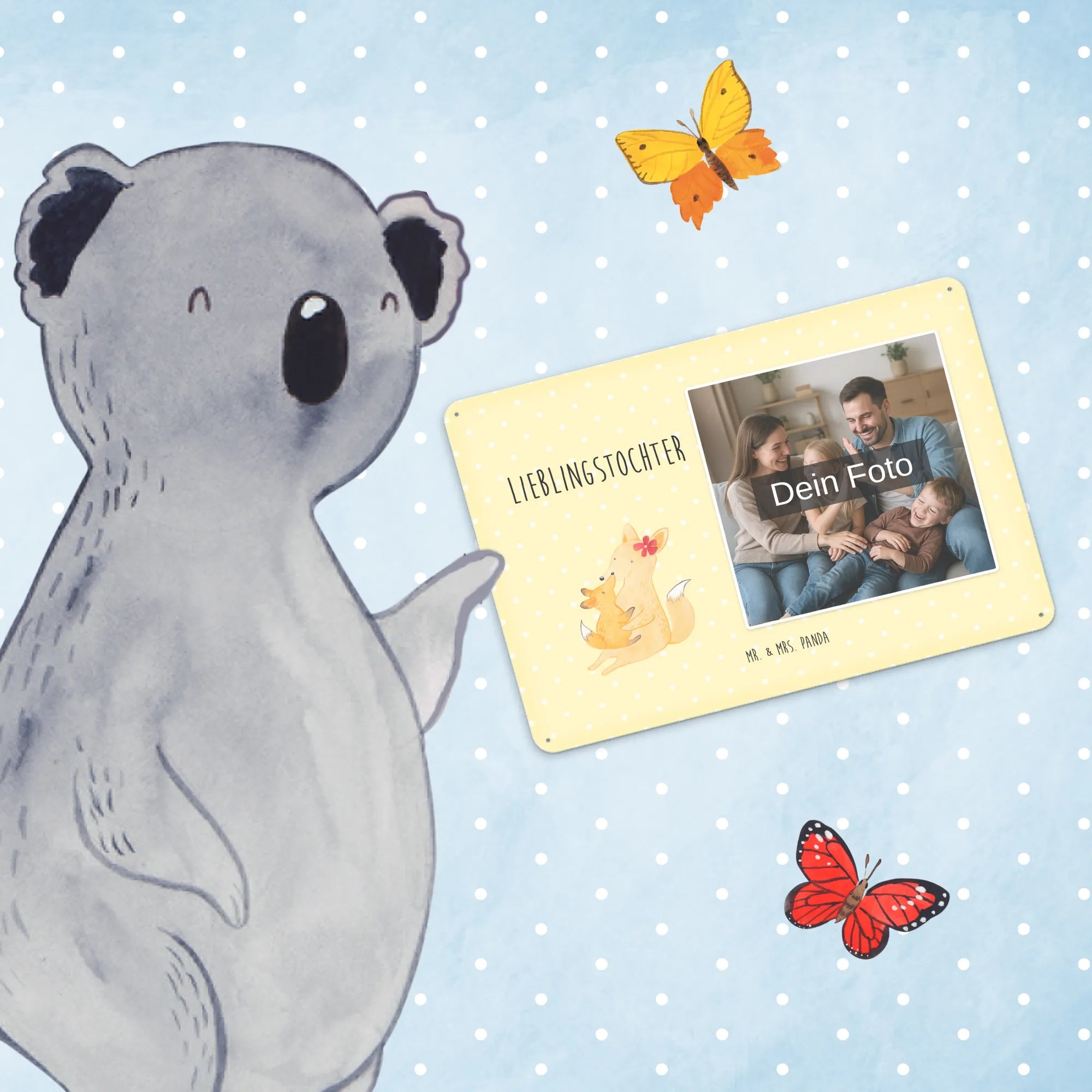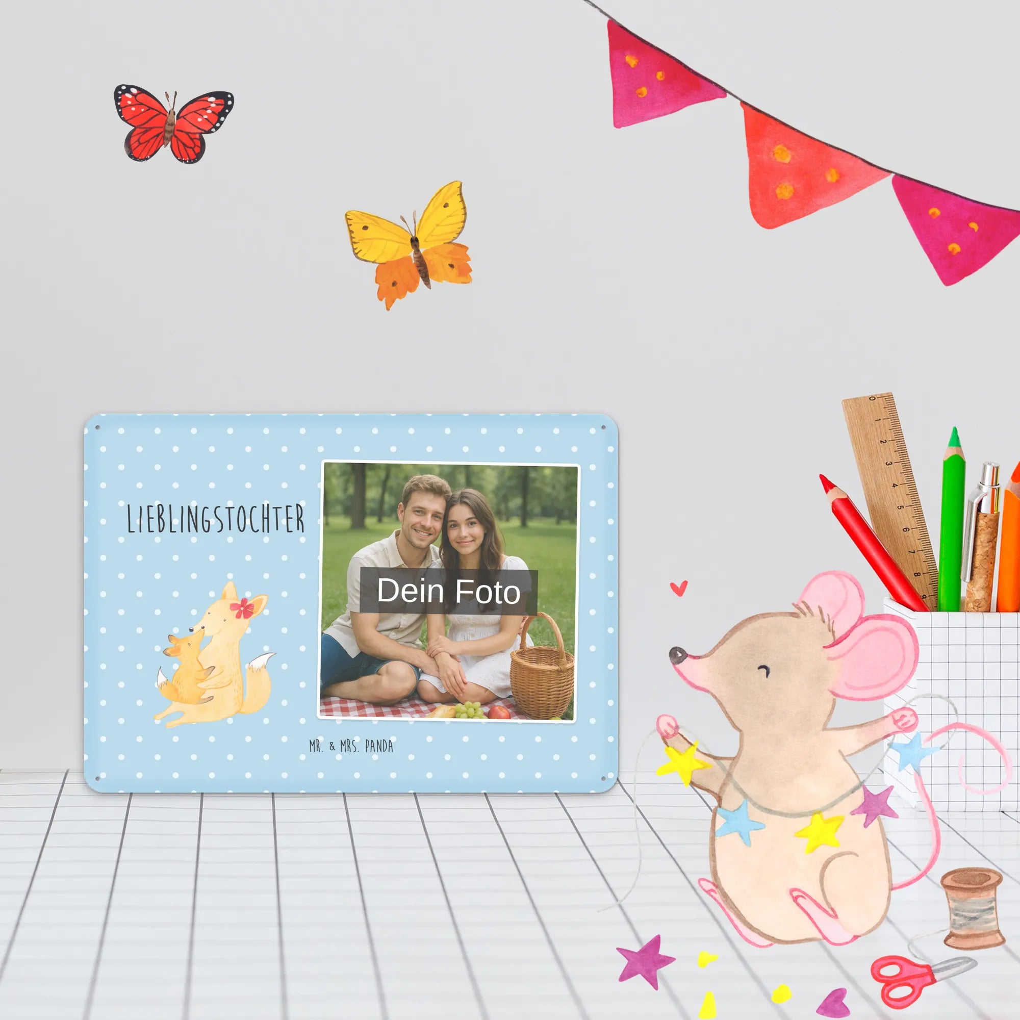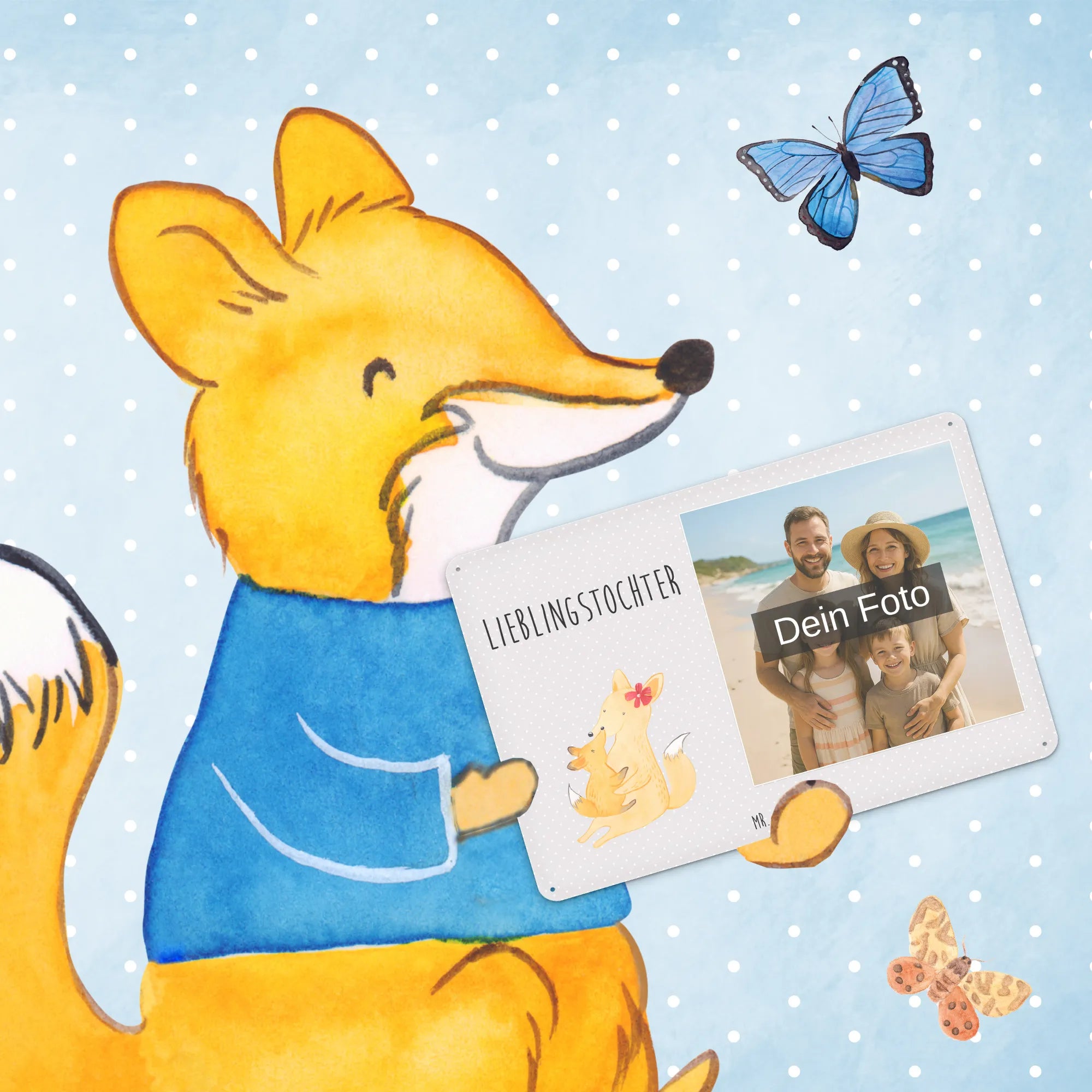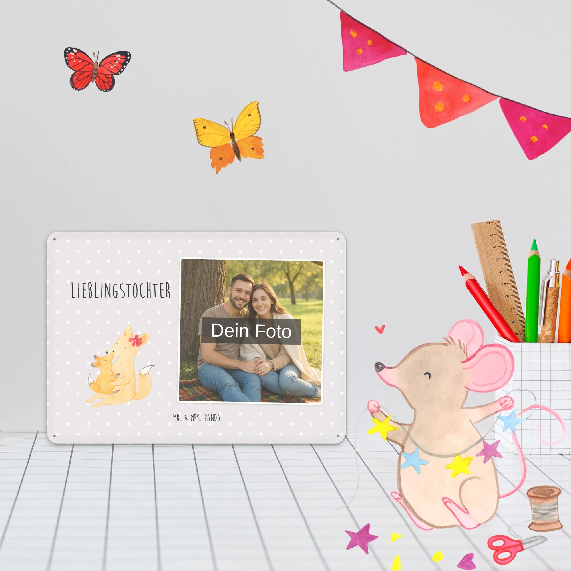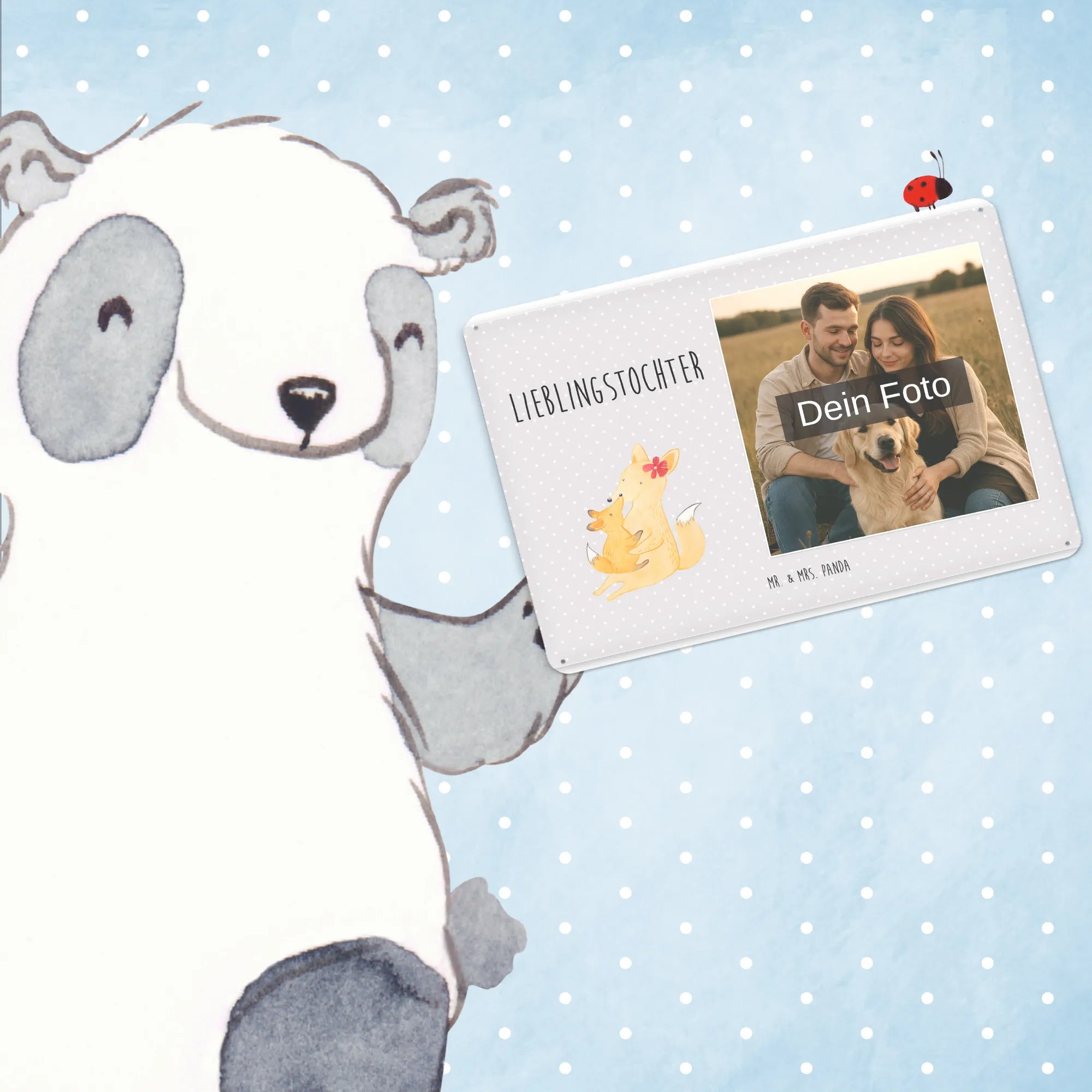 Spersonalizowany metalowy szyld ze zdjęciem Lis Mama - DIN A6 - Pastelowy czerwony