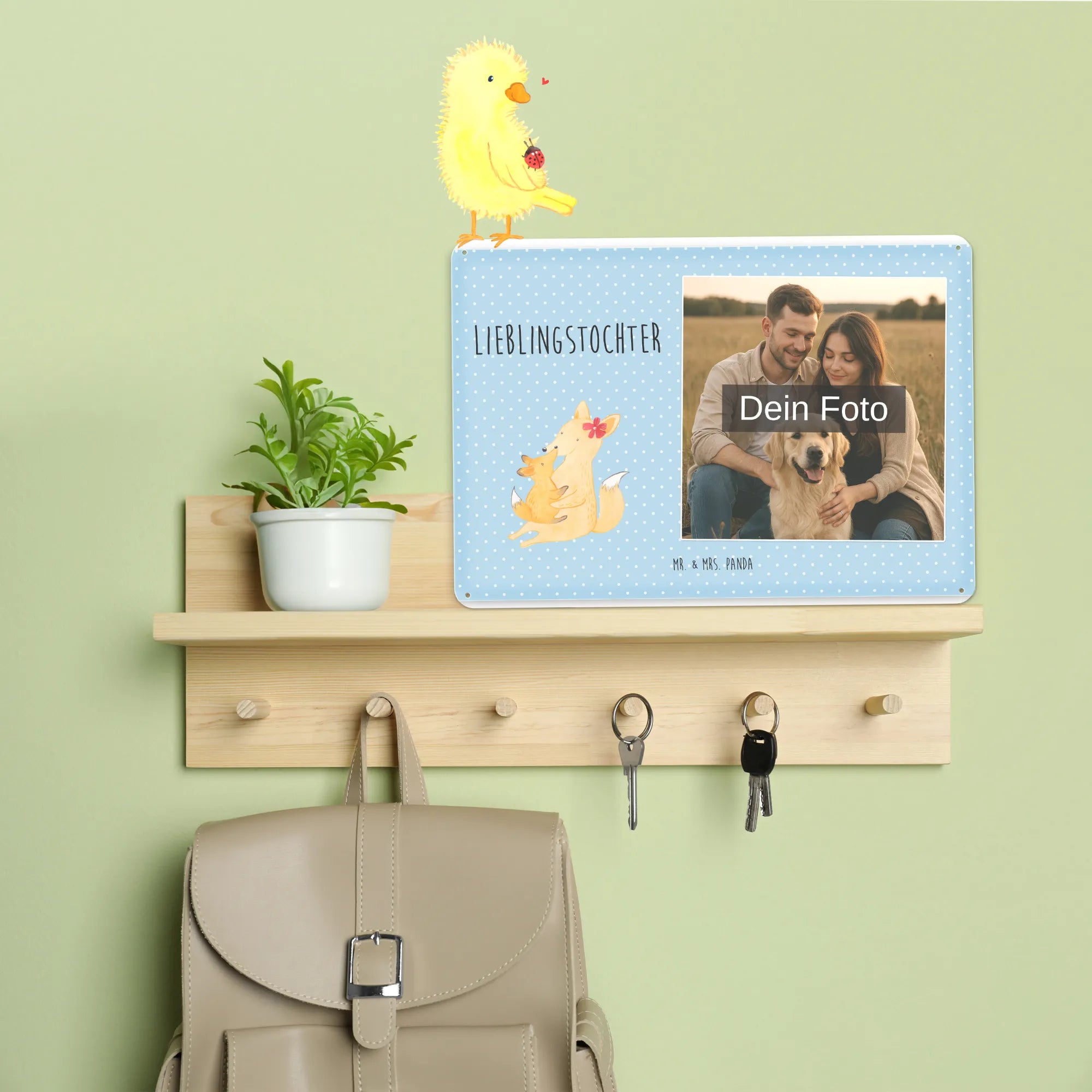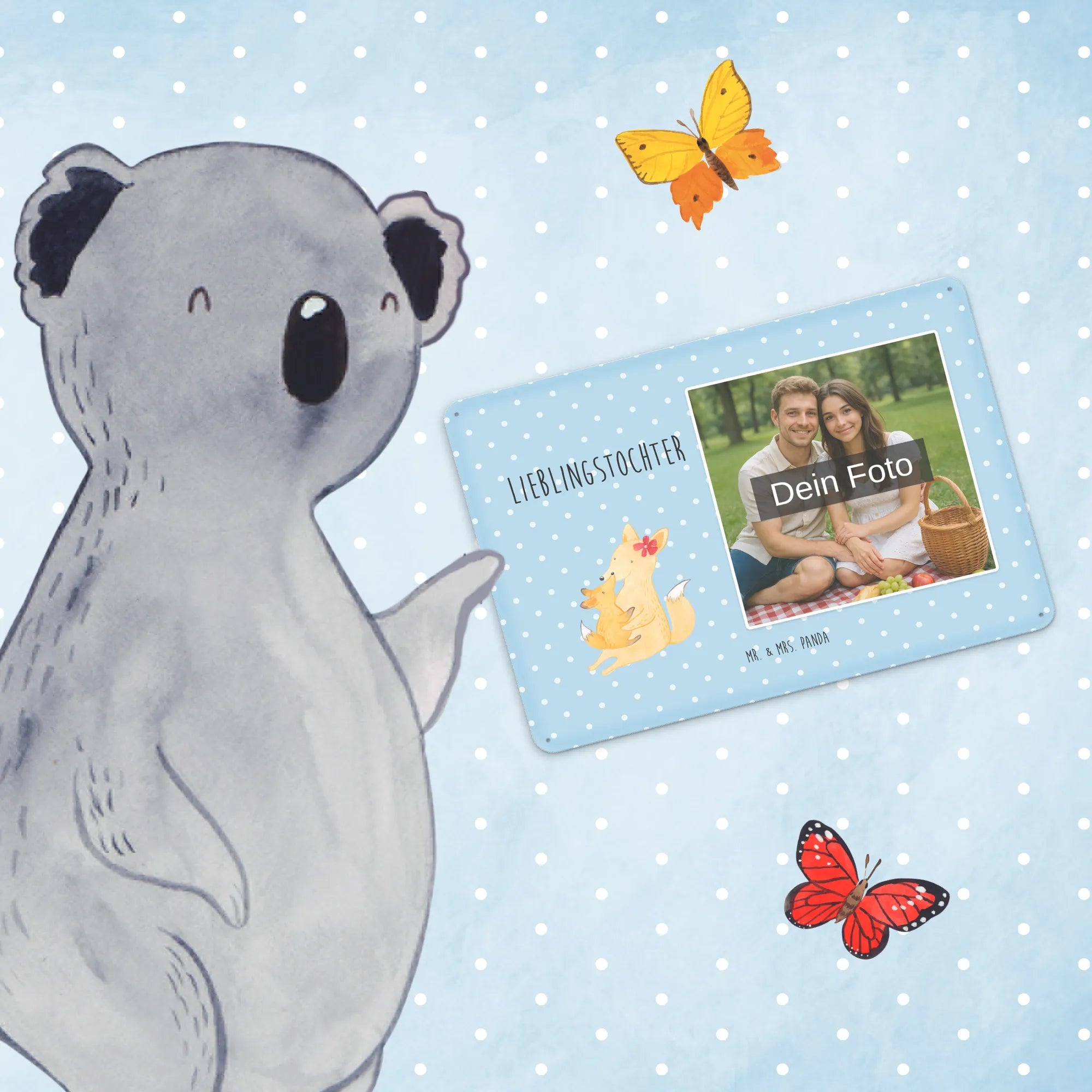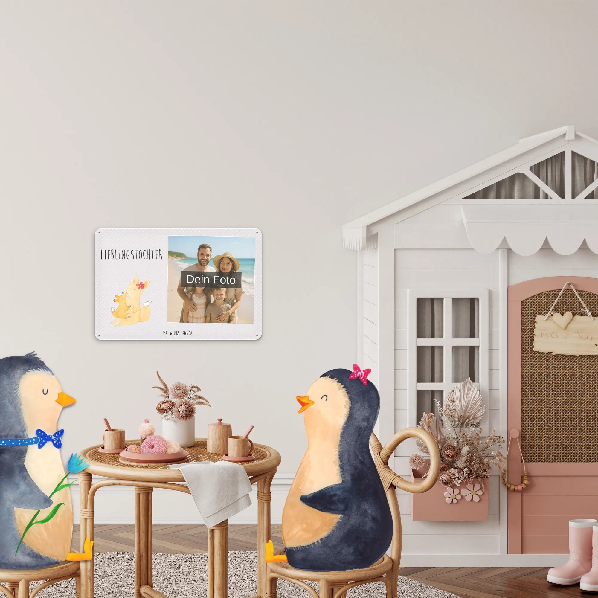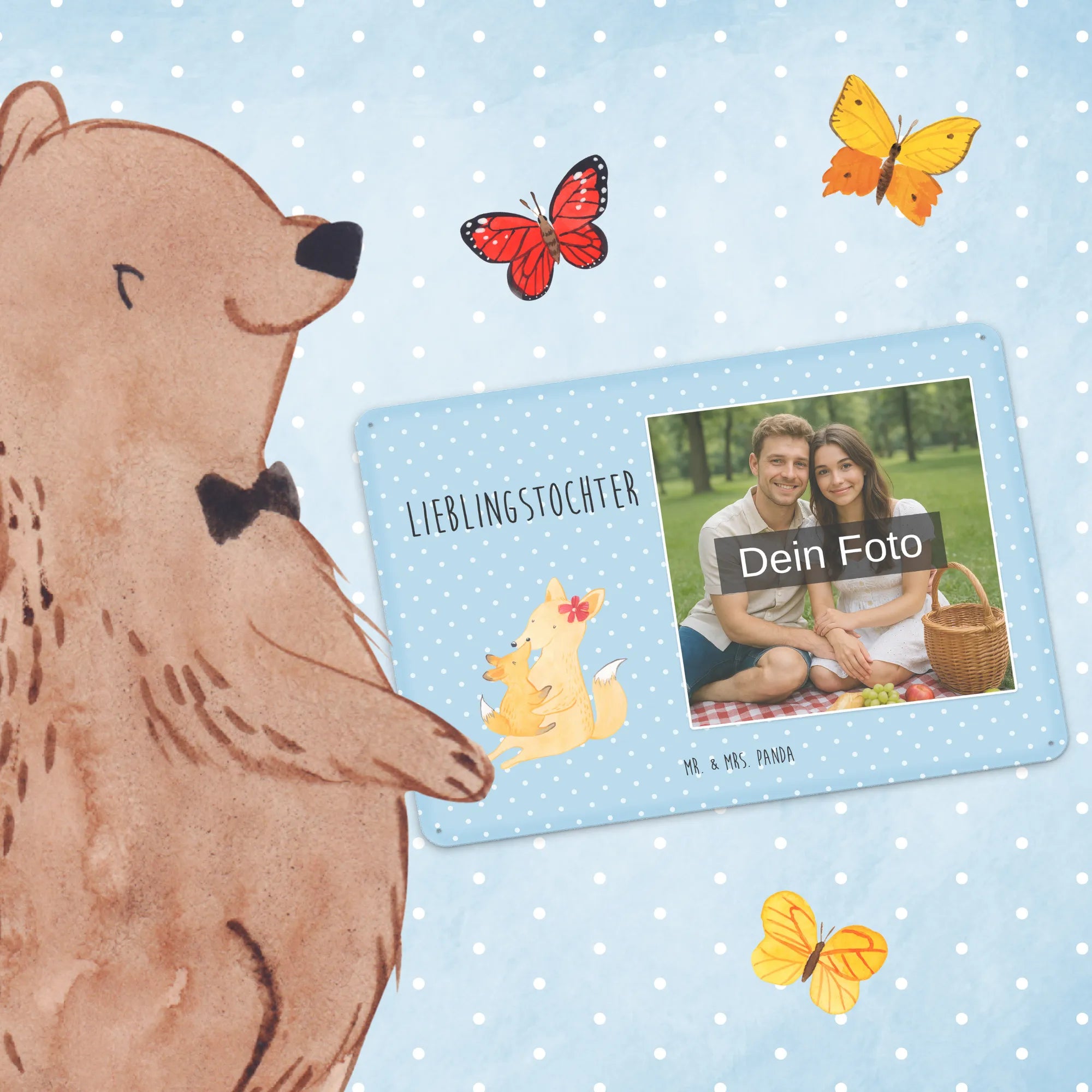 Spersonalizowany metalowy szyld ze zdjęciem Lis Mama - DIN A6 - Pastelowy czerwony