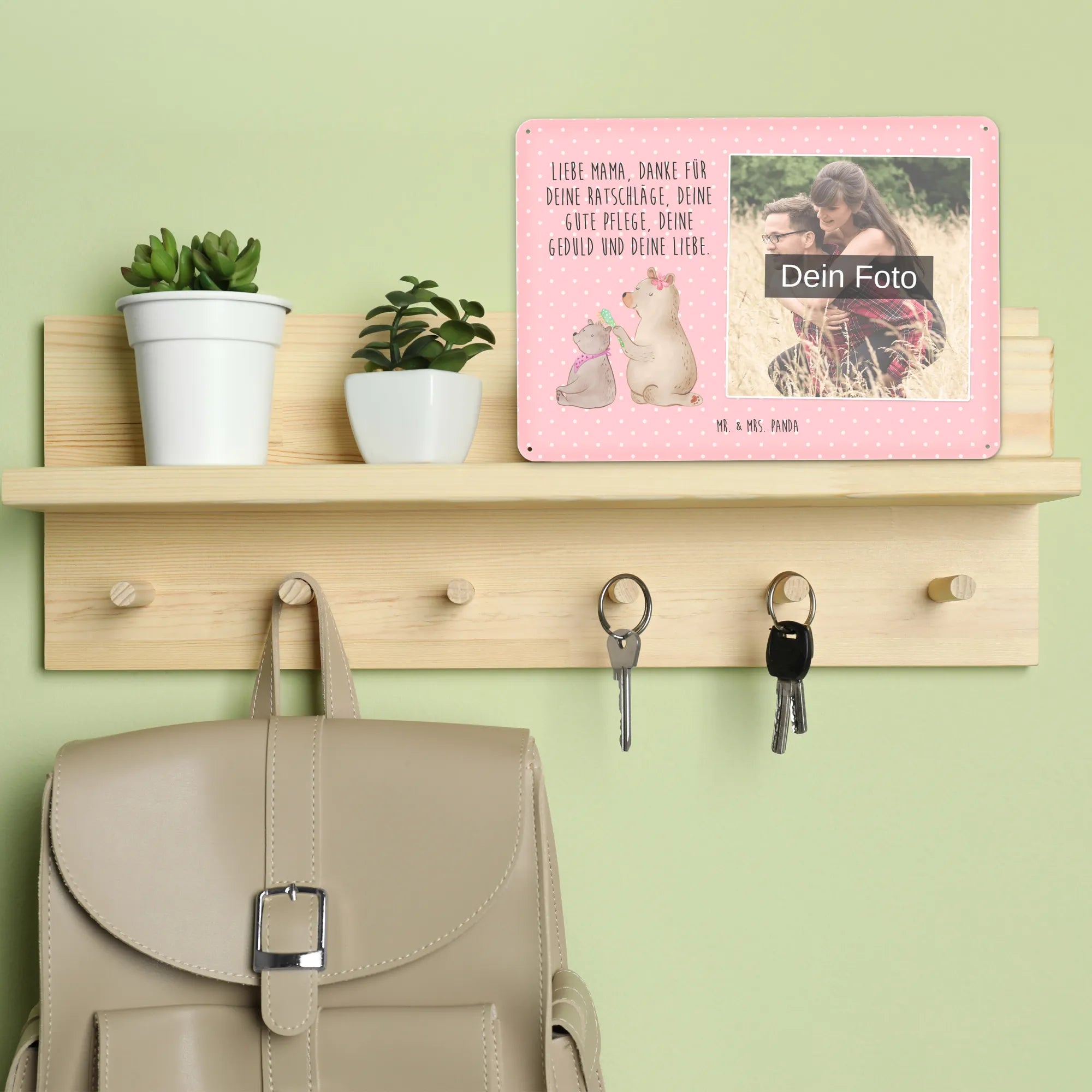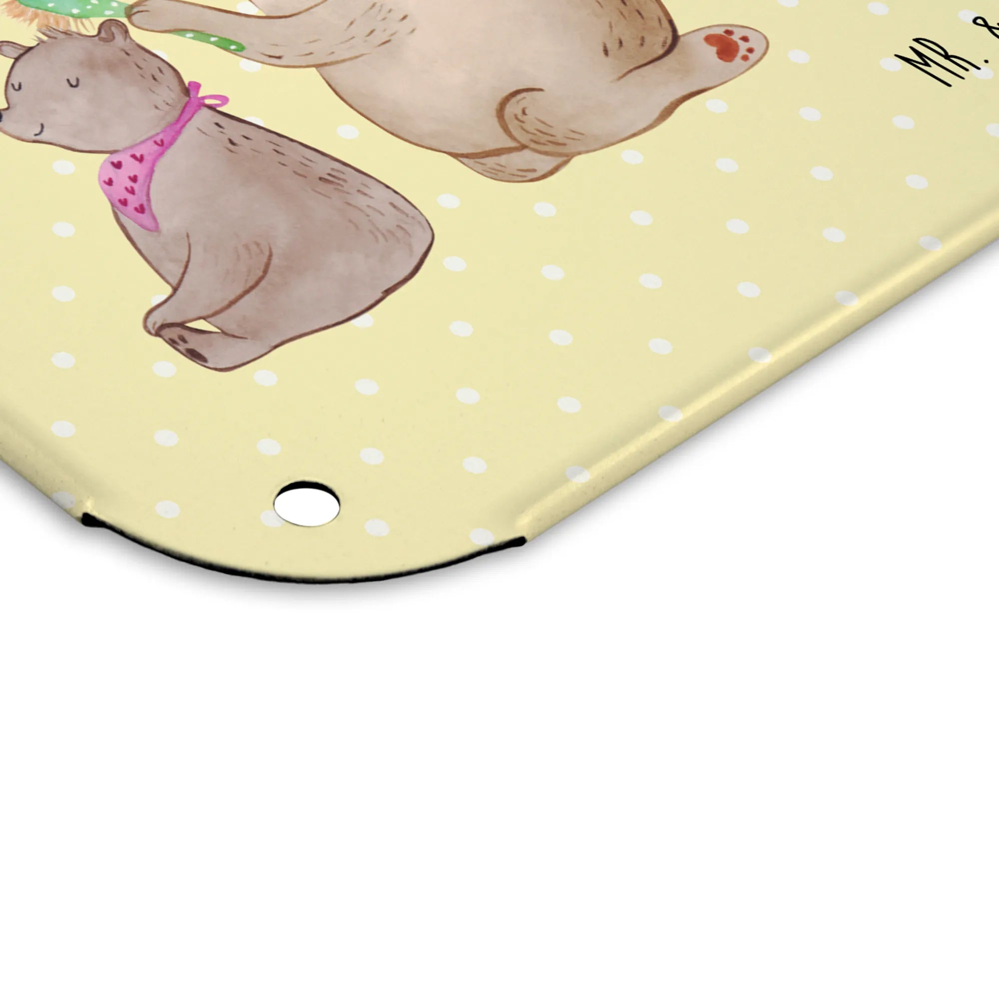 Spersonalizowany metalowy szyld ze zdjęciem niedźwiedź dziecko - DIN A6 - Pastelowy żółty