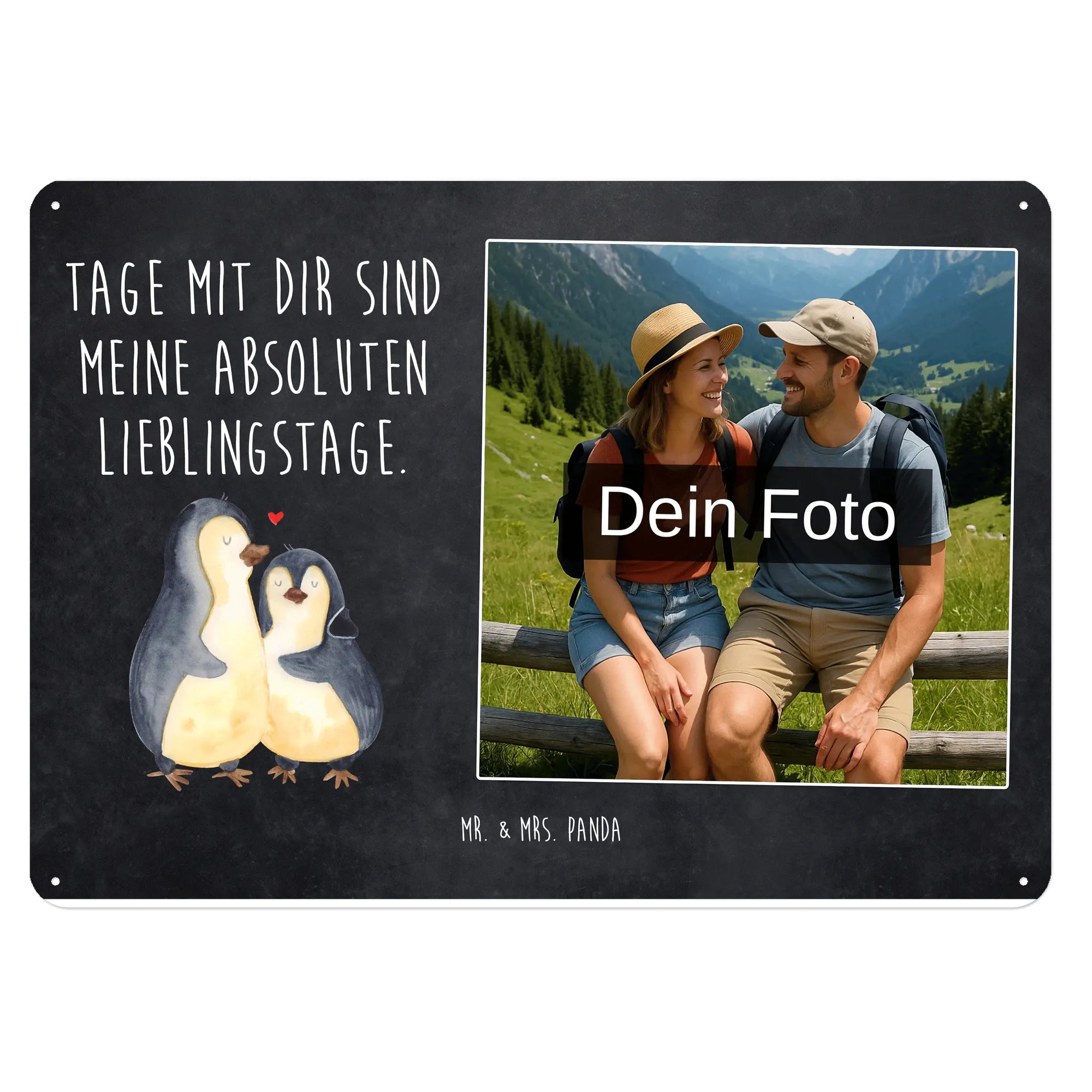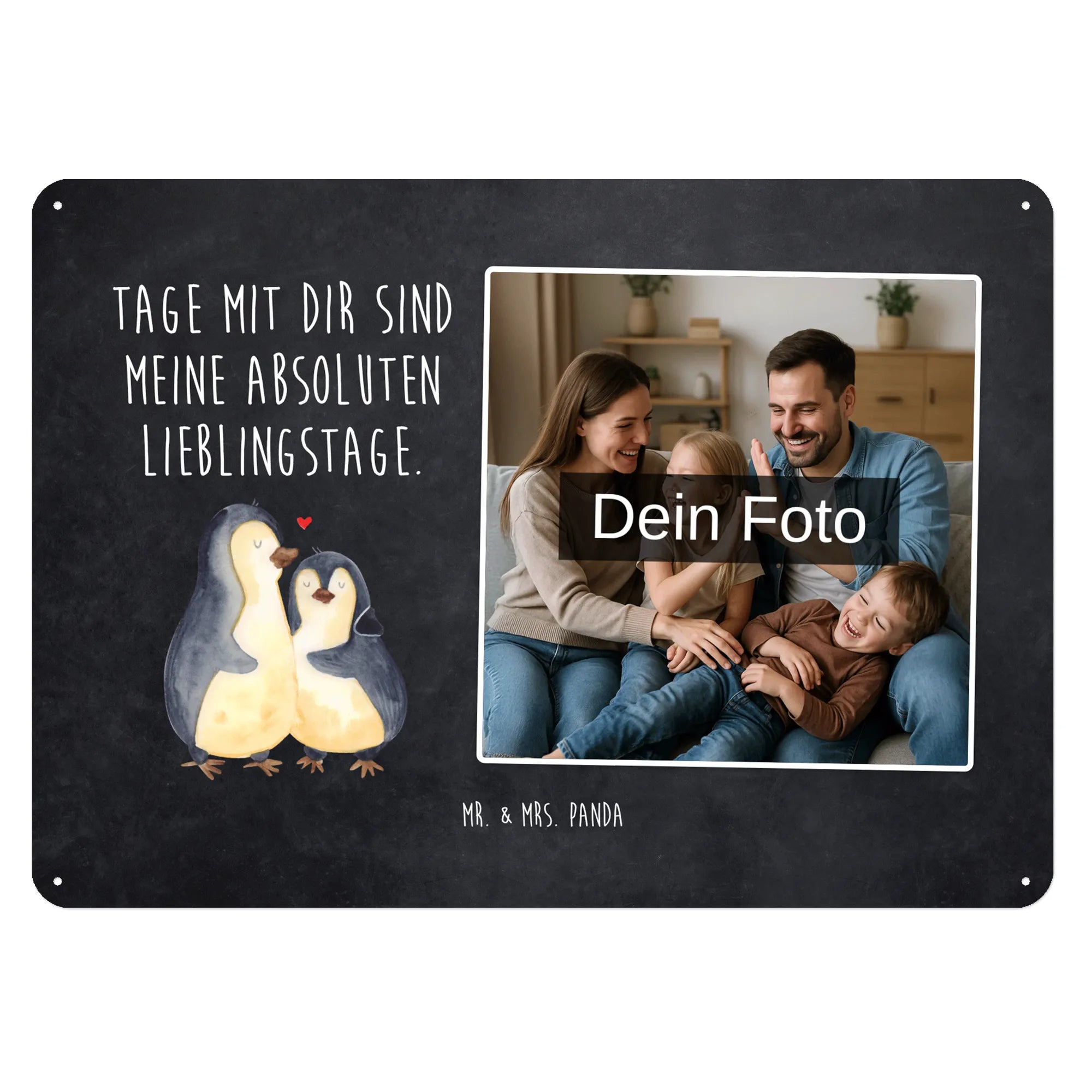 Spersonalizowany metalowy szyld ze zdjęciem Pingwin przytulać - DIN A6 - lodowoniebieski