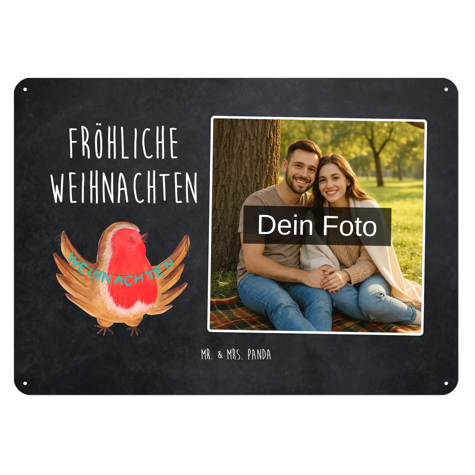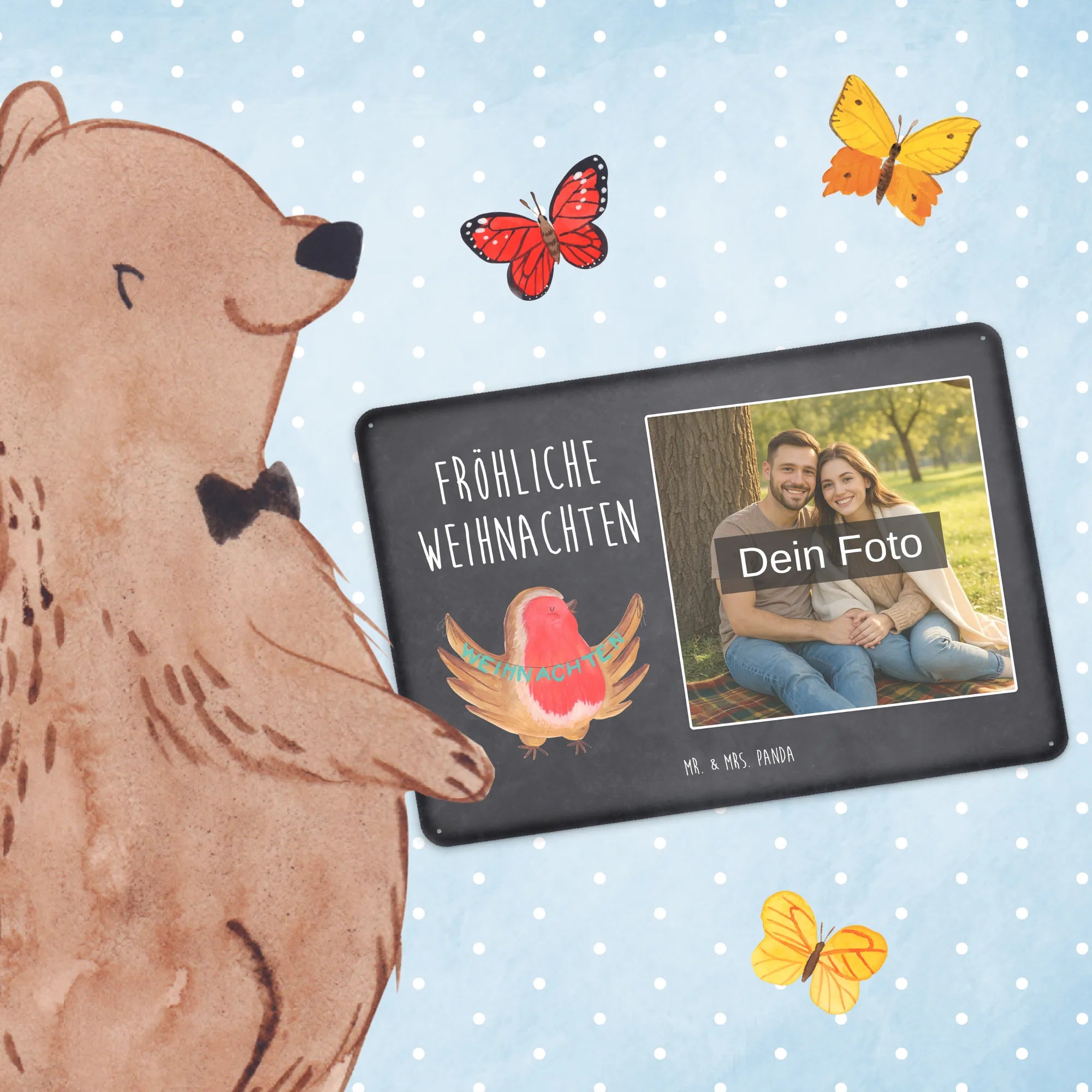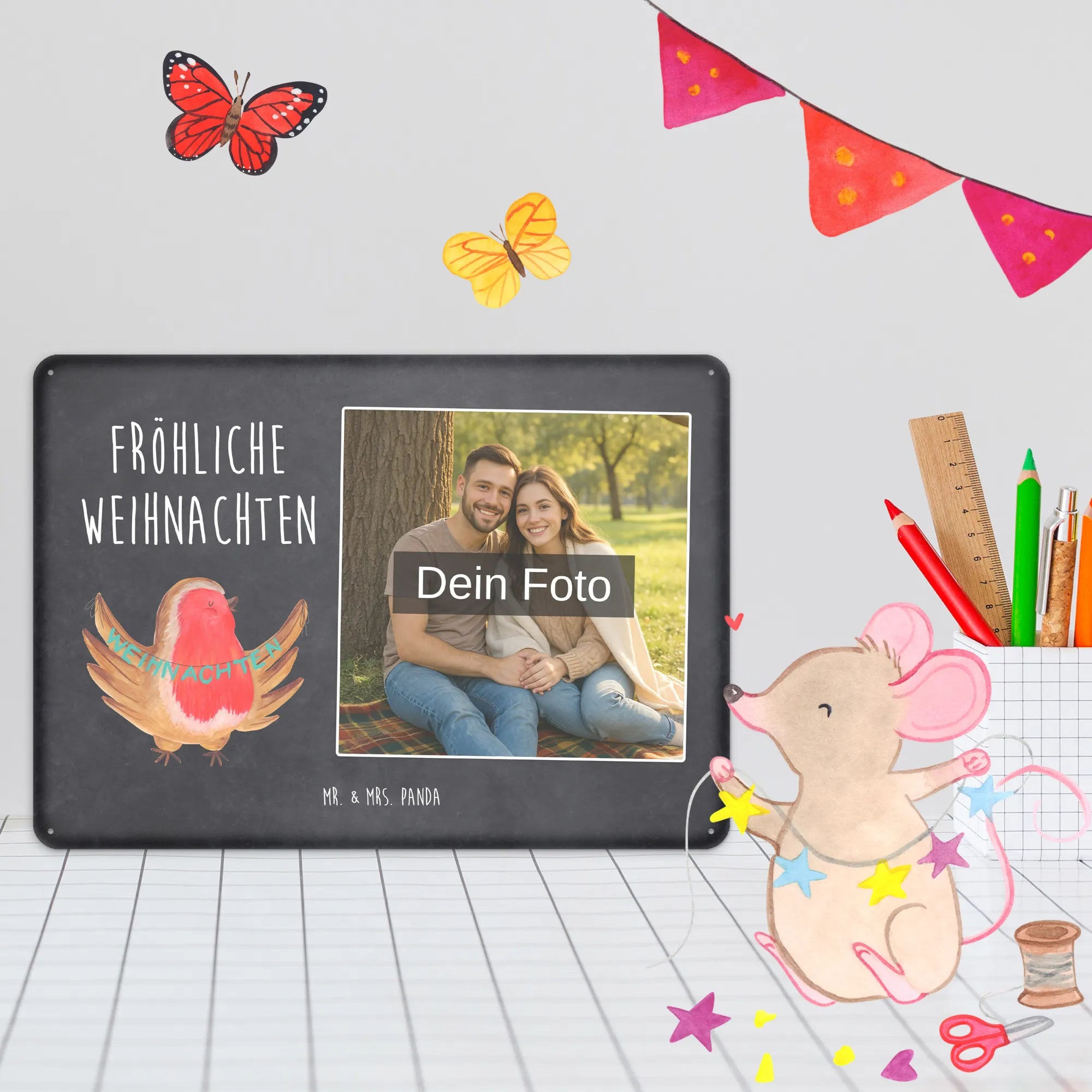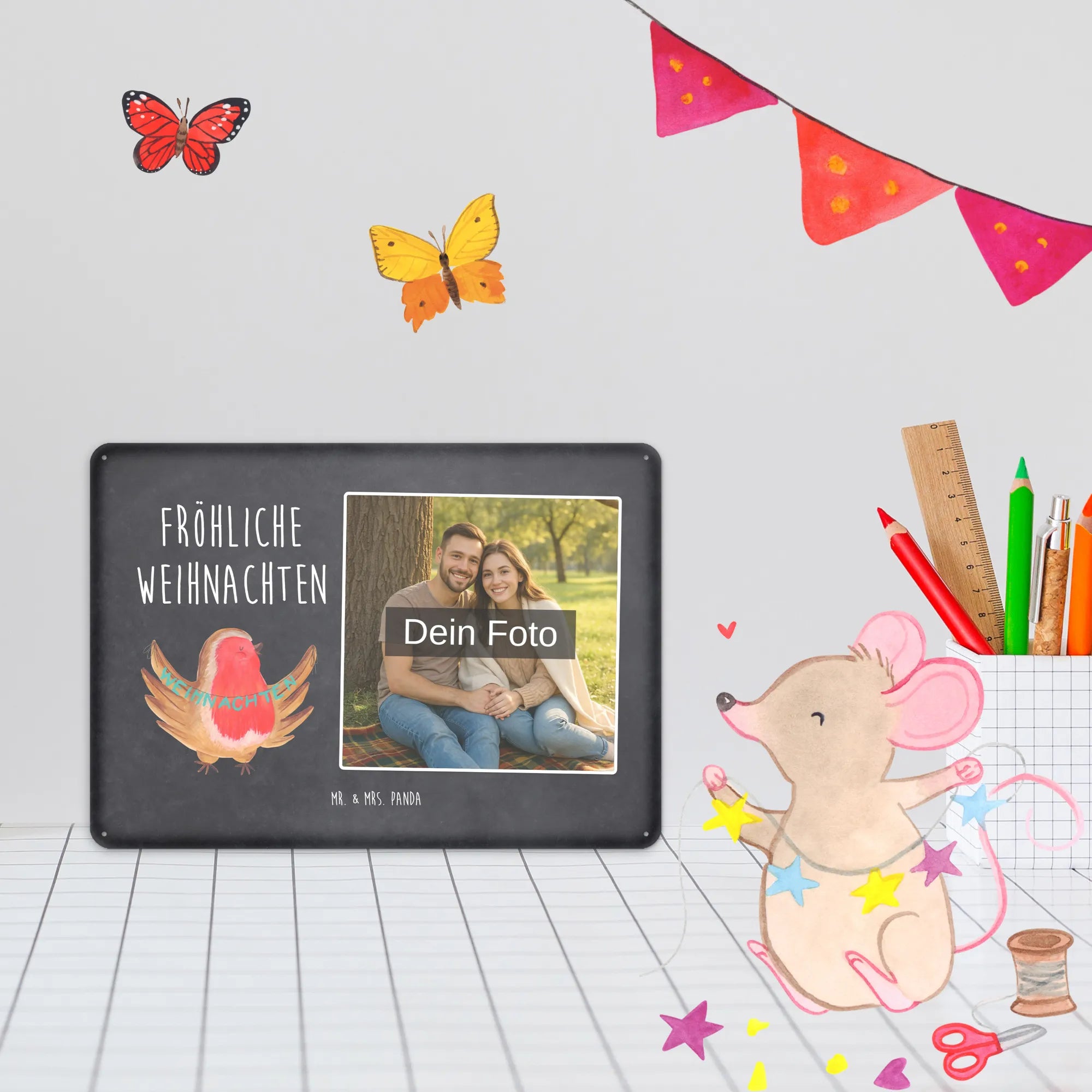 Spersonalizowany metalowy szyld ze zdjęciem rudzik Boże Narodzenie - DIN A6 - Tablica kredowa