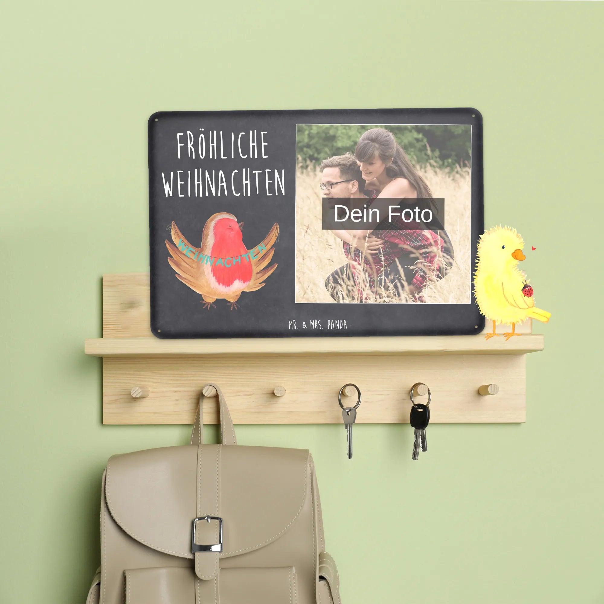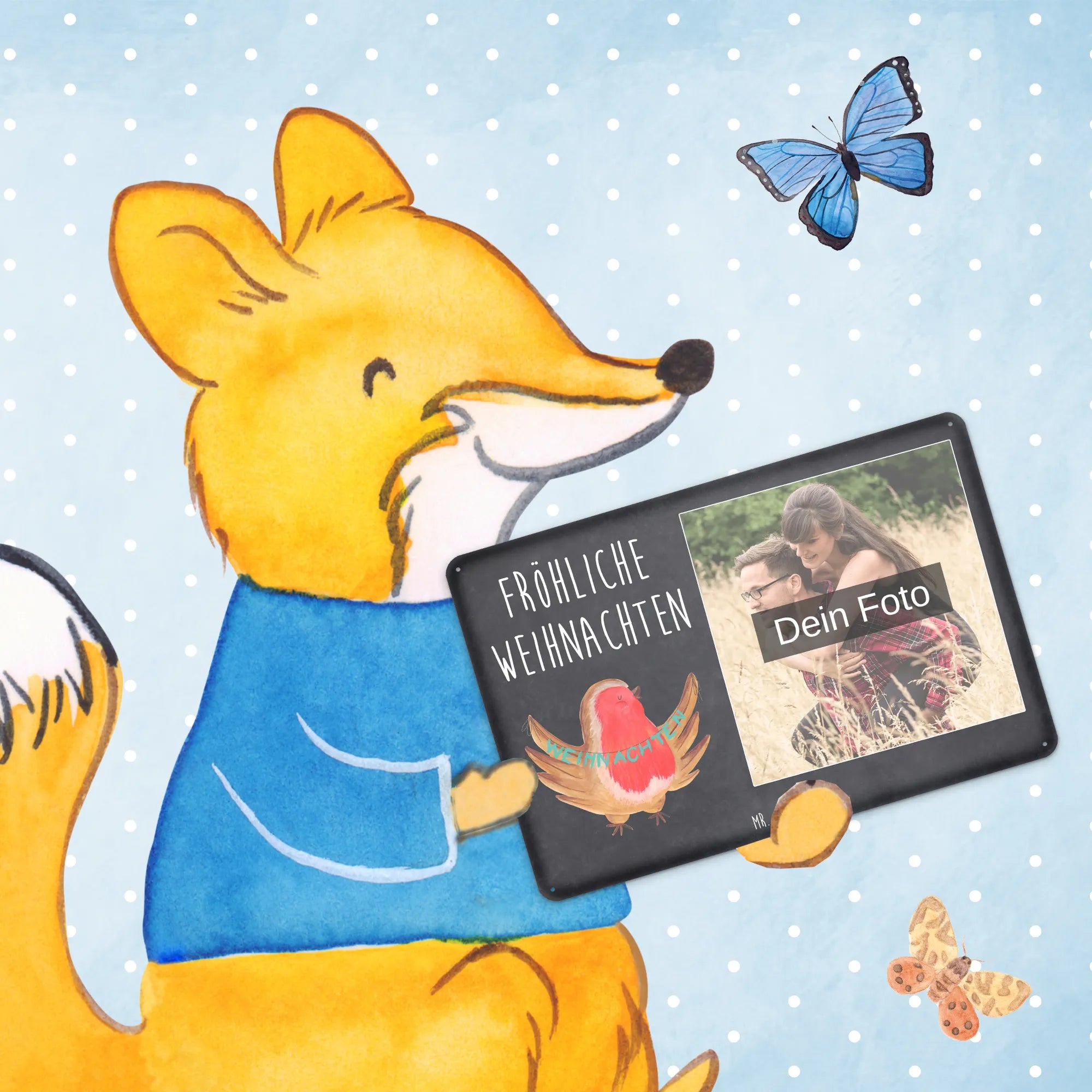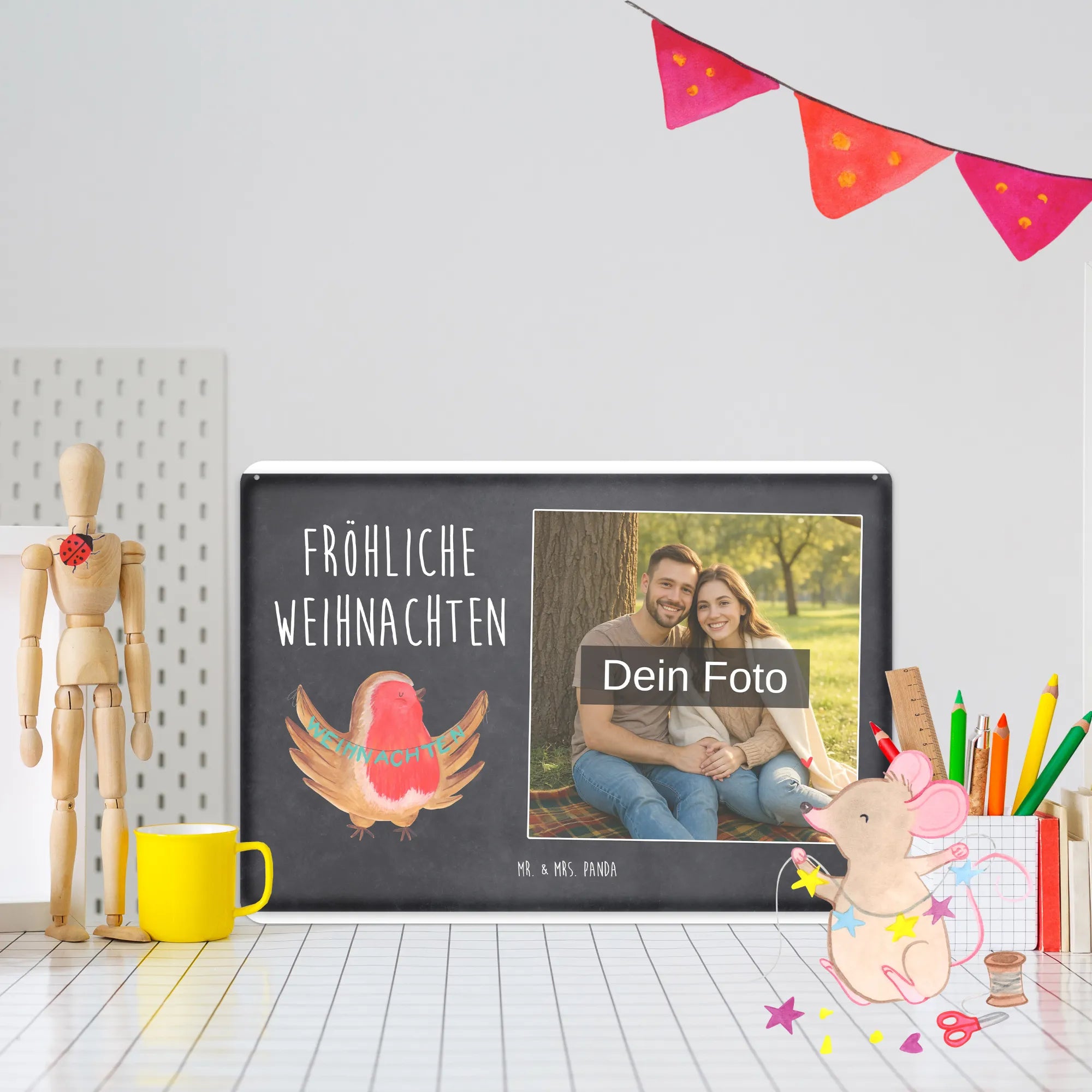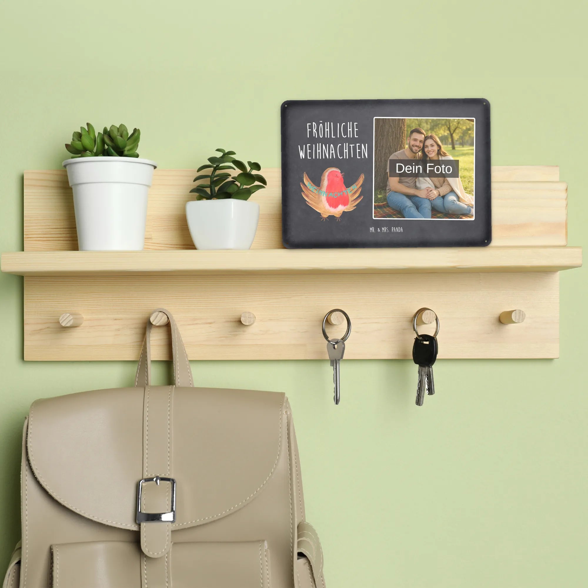 Spersonalizowany metalowy szyld ze zdjęciem rudzik Boże Narodzenie - DIN A6 - Tablica kredowa