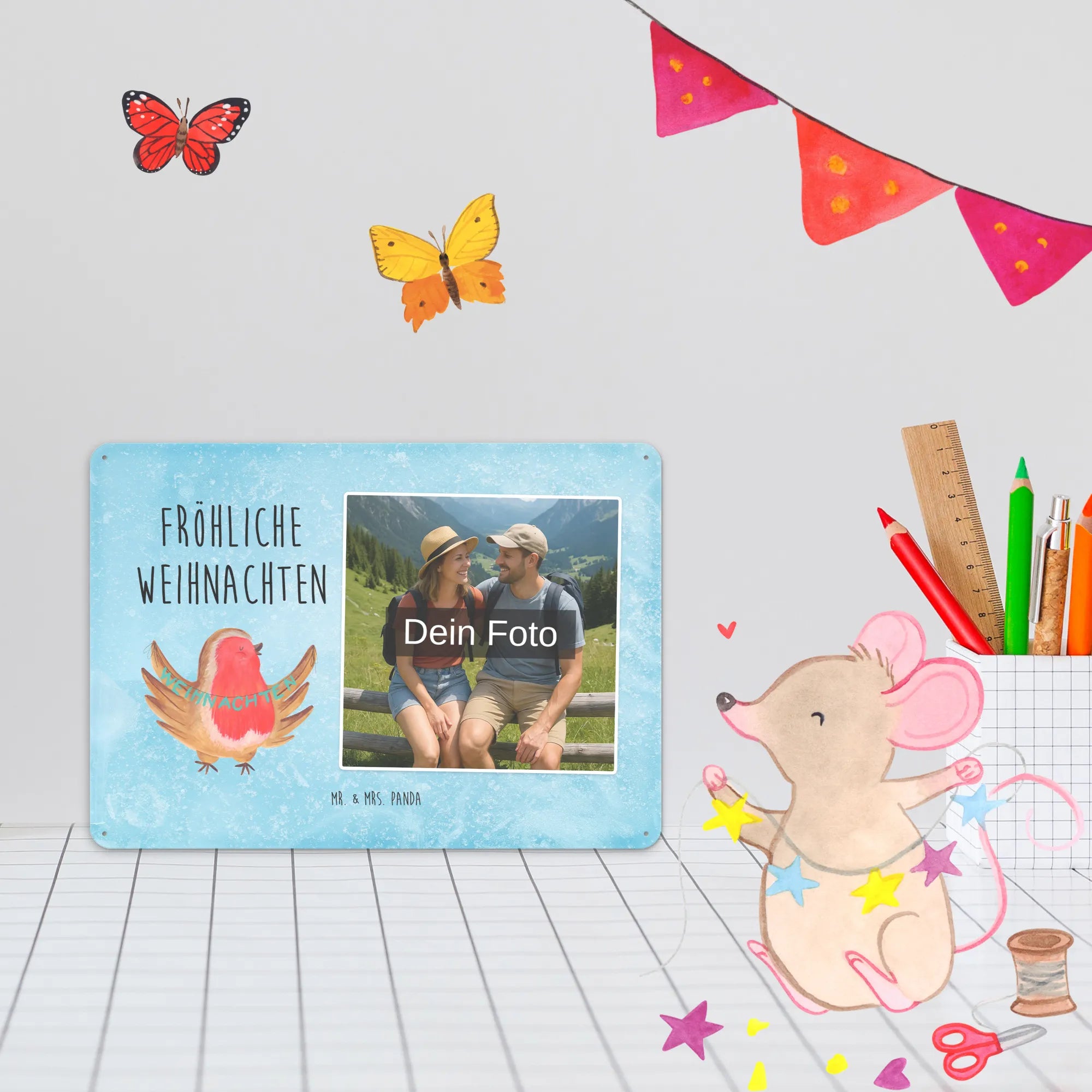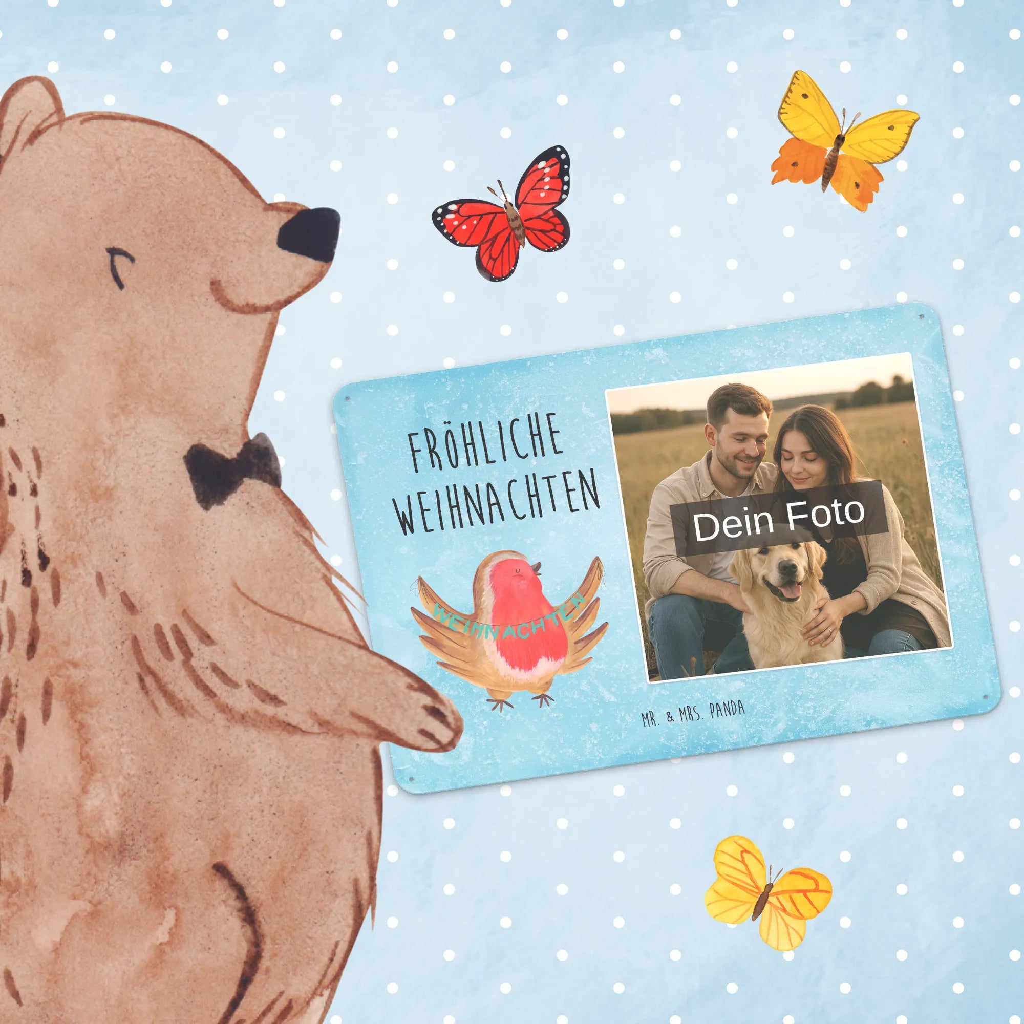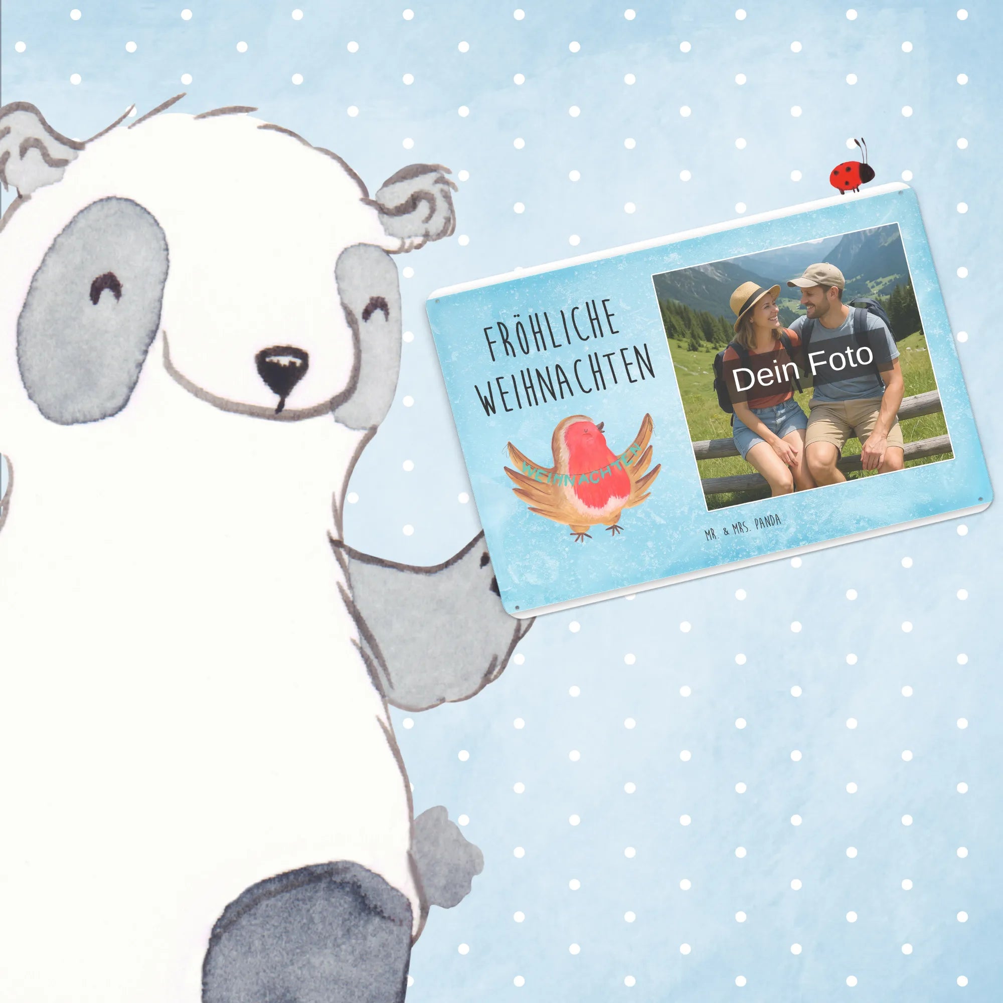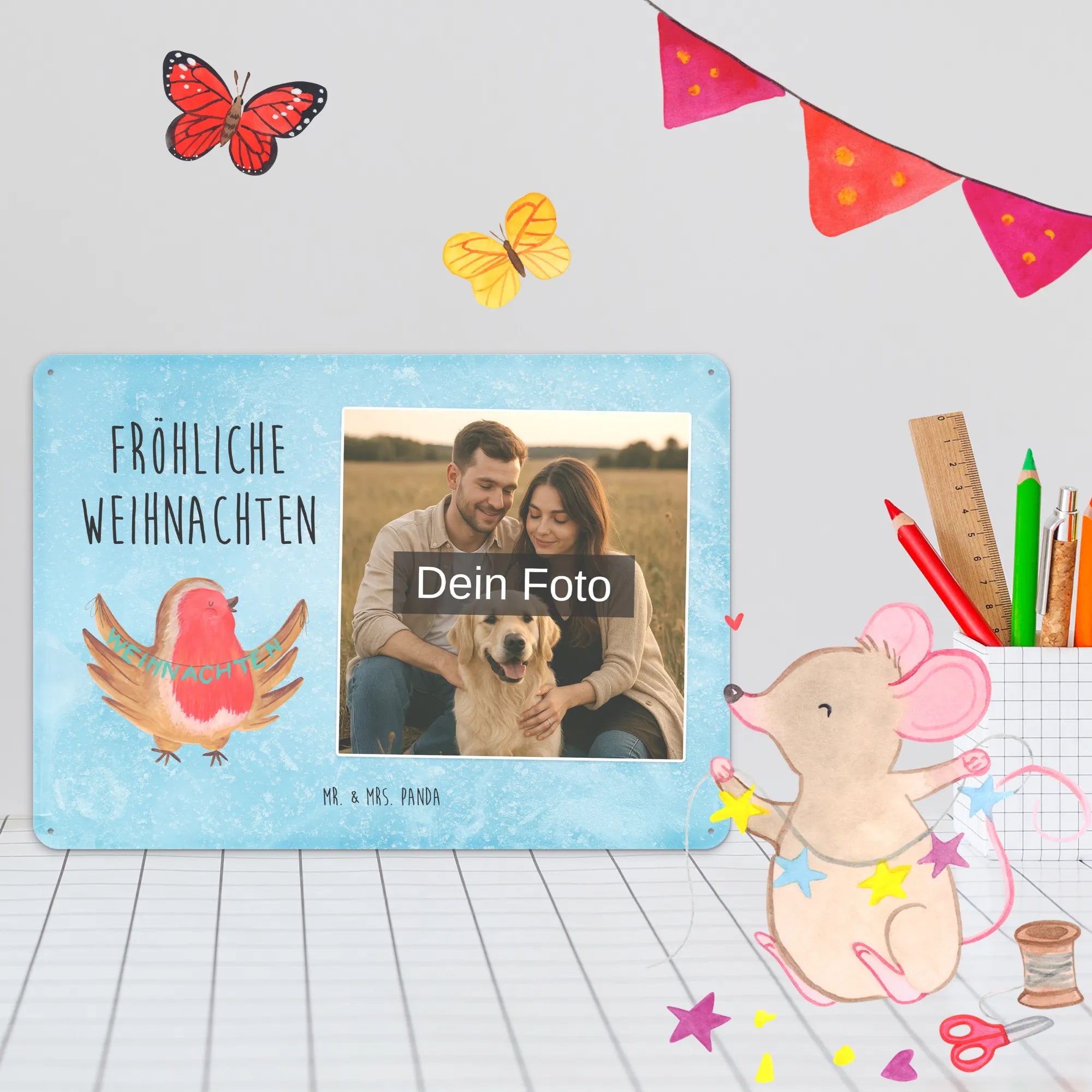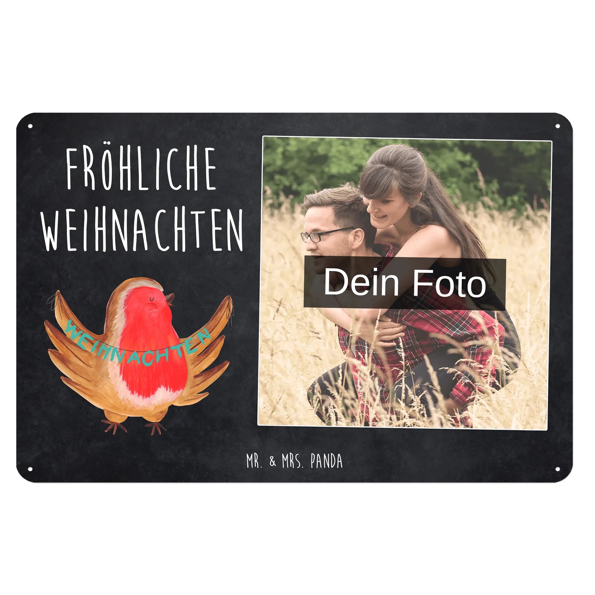 Spersonalizowany metalowy szyld ze zdjęciem rudzik Boże Narodzenie - DIN A6 - Tablica kredowa