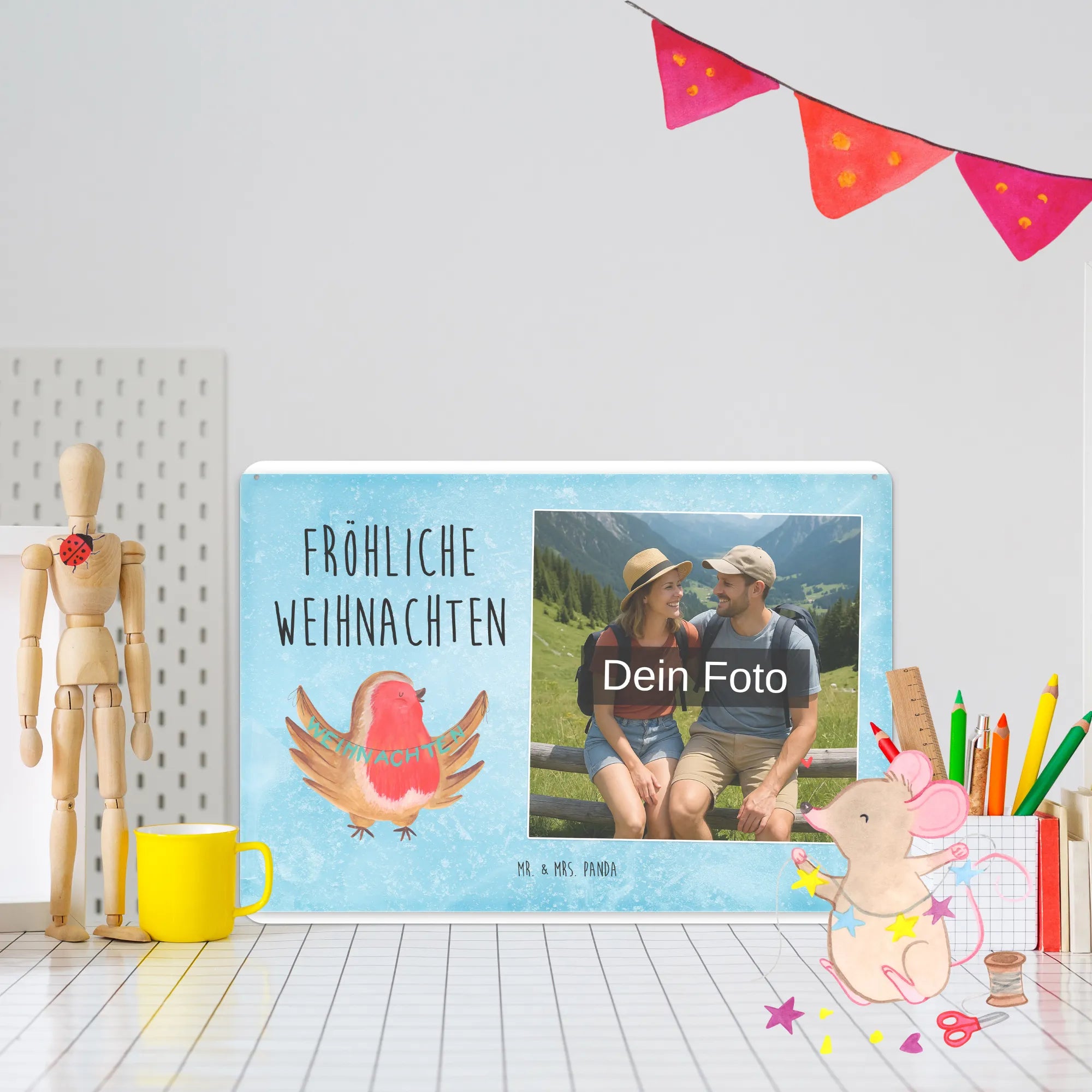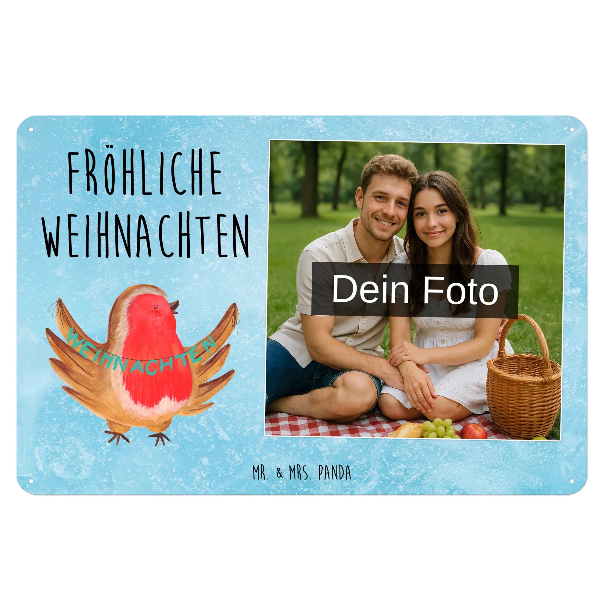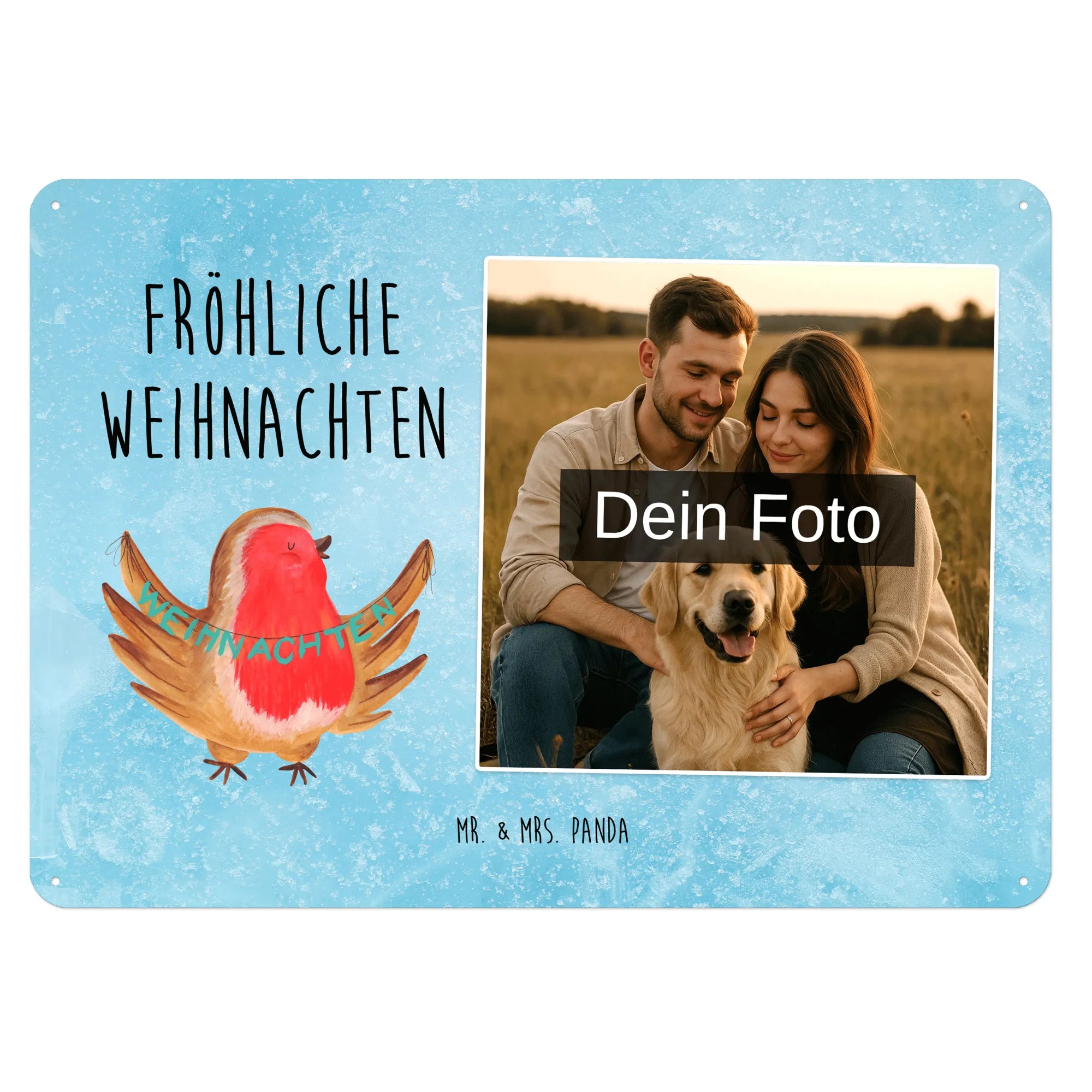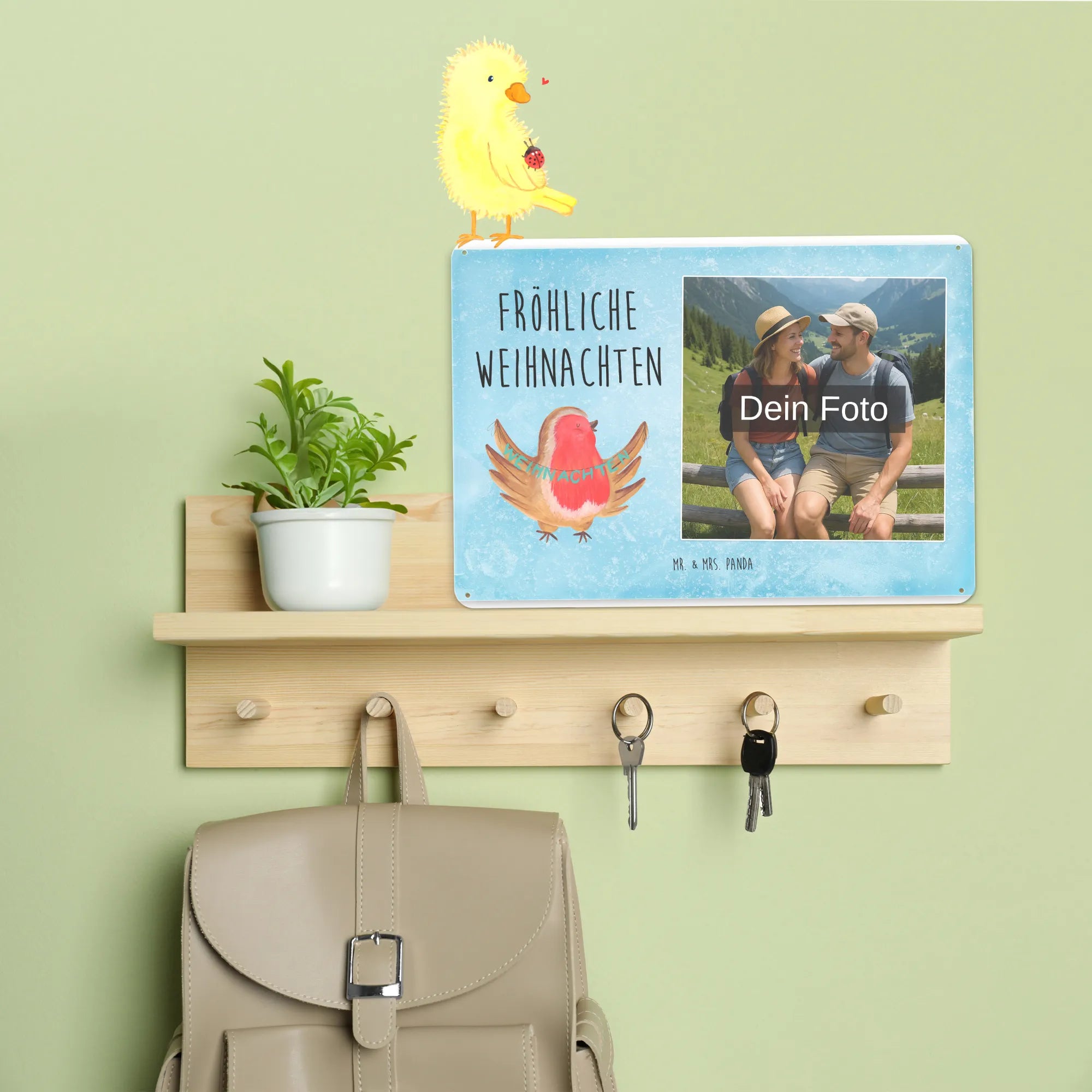 Spersonalizowany metalowy szyld ze zdjęciem rudzik Boże Narodzenie - DIN A6 - Tablica kredowa