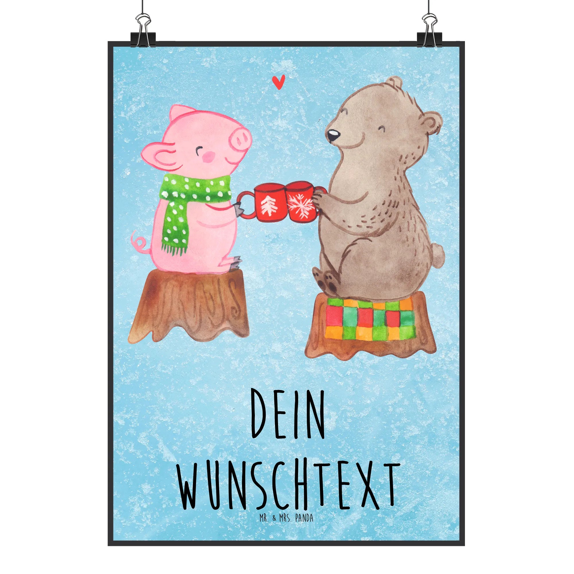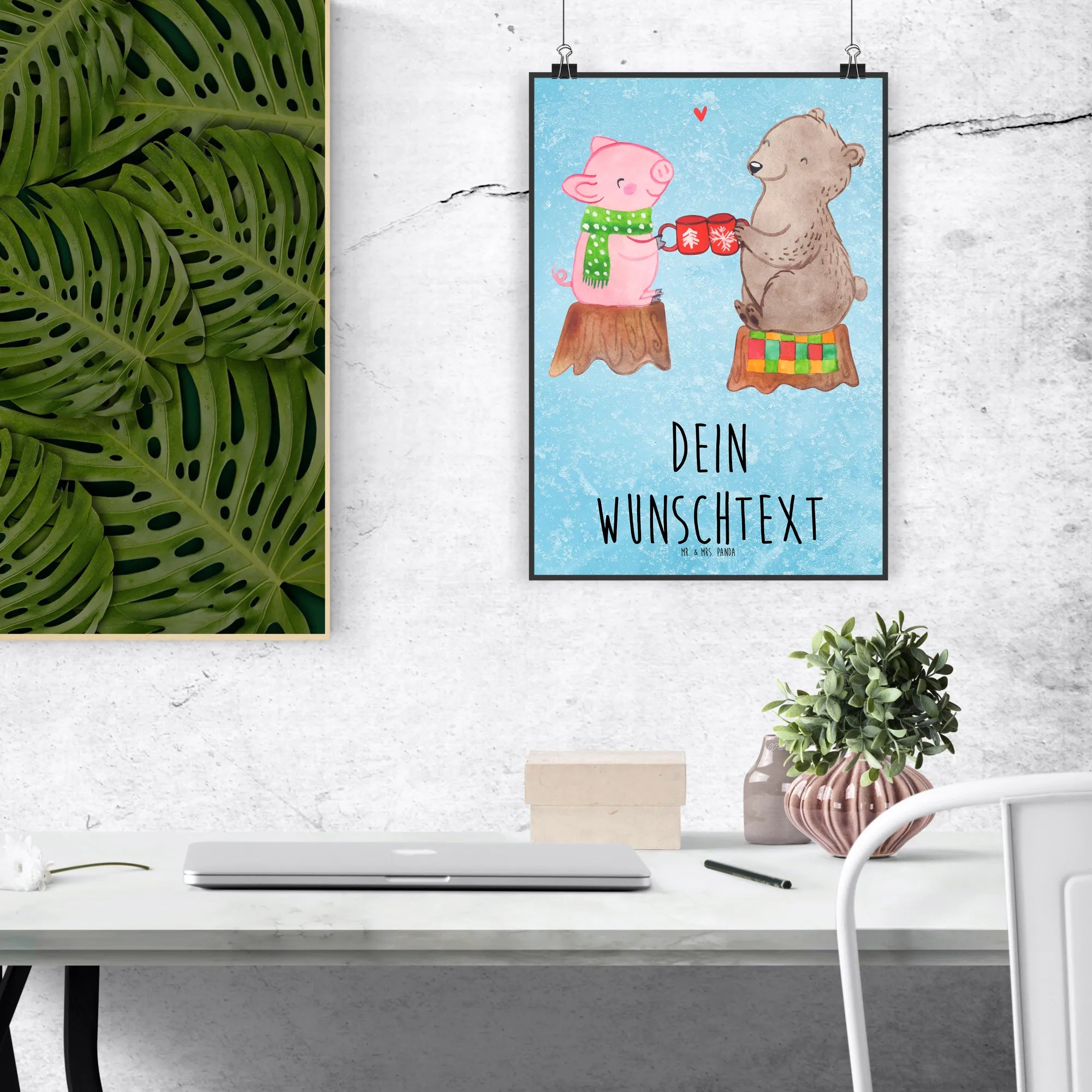 Das personalisierte Poster "Glühschwein Sause" aus der Kollektion Winter Kollektion von Mr. & Mrs. Panda ist das perfekte Geschenk für alle, die die besinnliche Weihnachtszeit lieben. Mit seinem fröhlichen Motiv zeigt es ein süßes Schweinchen mit einem Schal und einen Bären, die gemeinsam auf einem Baumstumpf anstoßen. Durch ein kleines Herzchen verbunden, stoßen die beiden mit einer Tasse auf das Leben an und verleihen jedem Raum eine gemütliche und feierliche Atmosphäre.