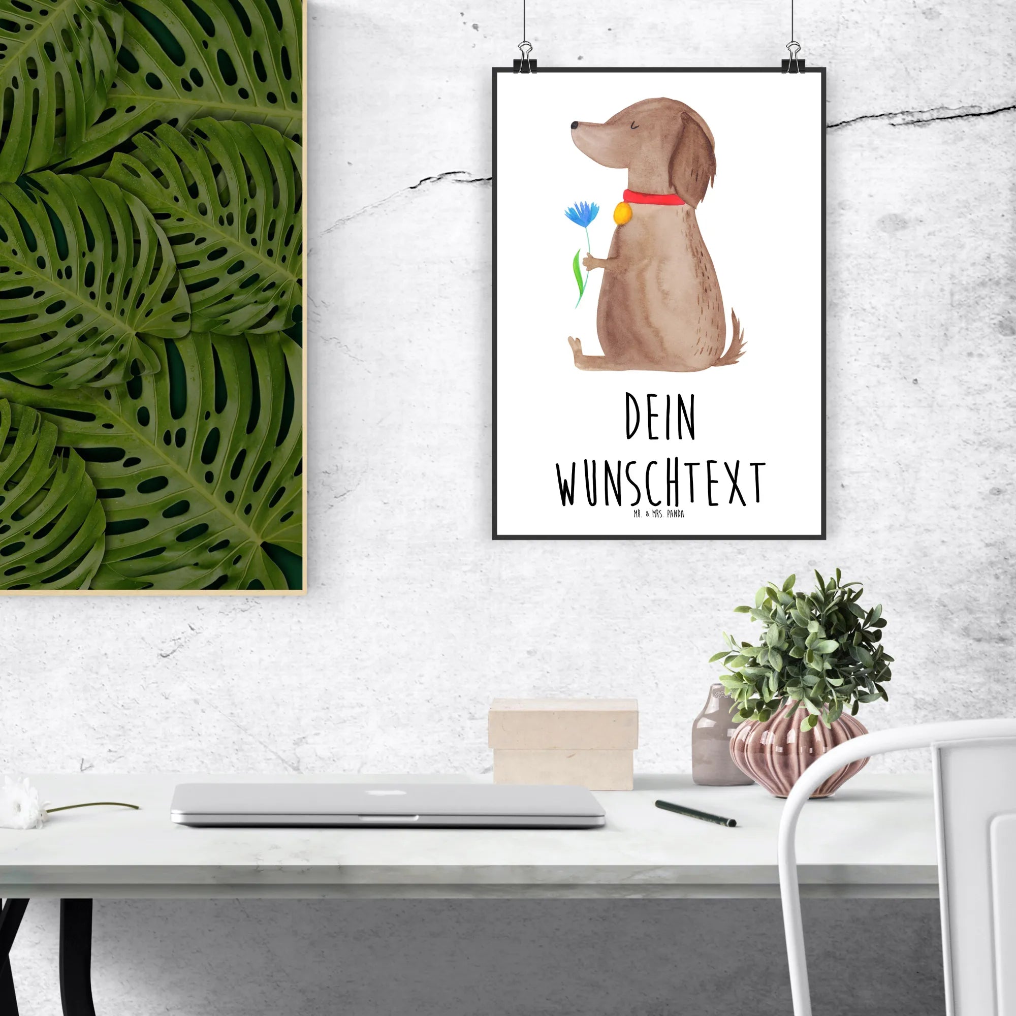 Spersonalizowany plakat pies kwiat - DIN A5 - biały