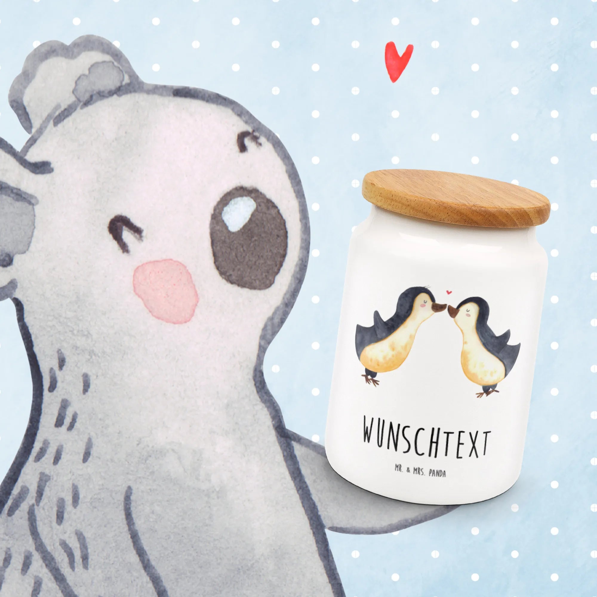 Spersonalizowany pojemnik na zapasy Pingwiny Pocałunek