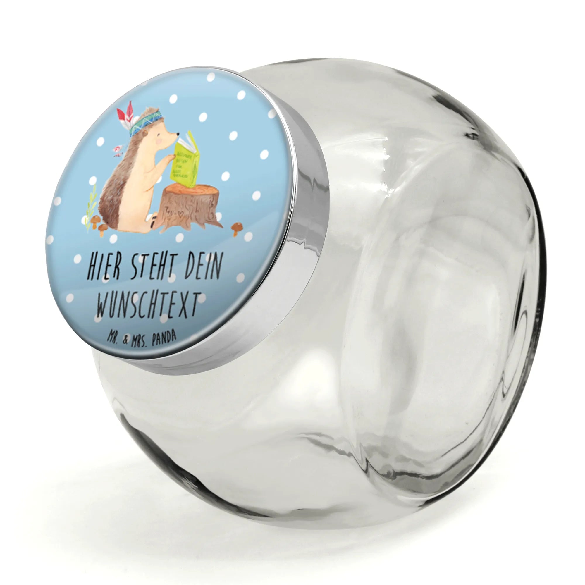 Spersonalizowany słoik na cukierki jeż Ozdoba z piór - L 870ml - Pastelowy niebieski