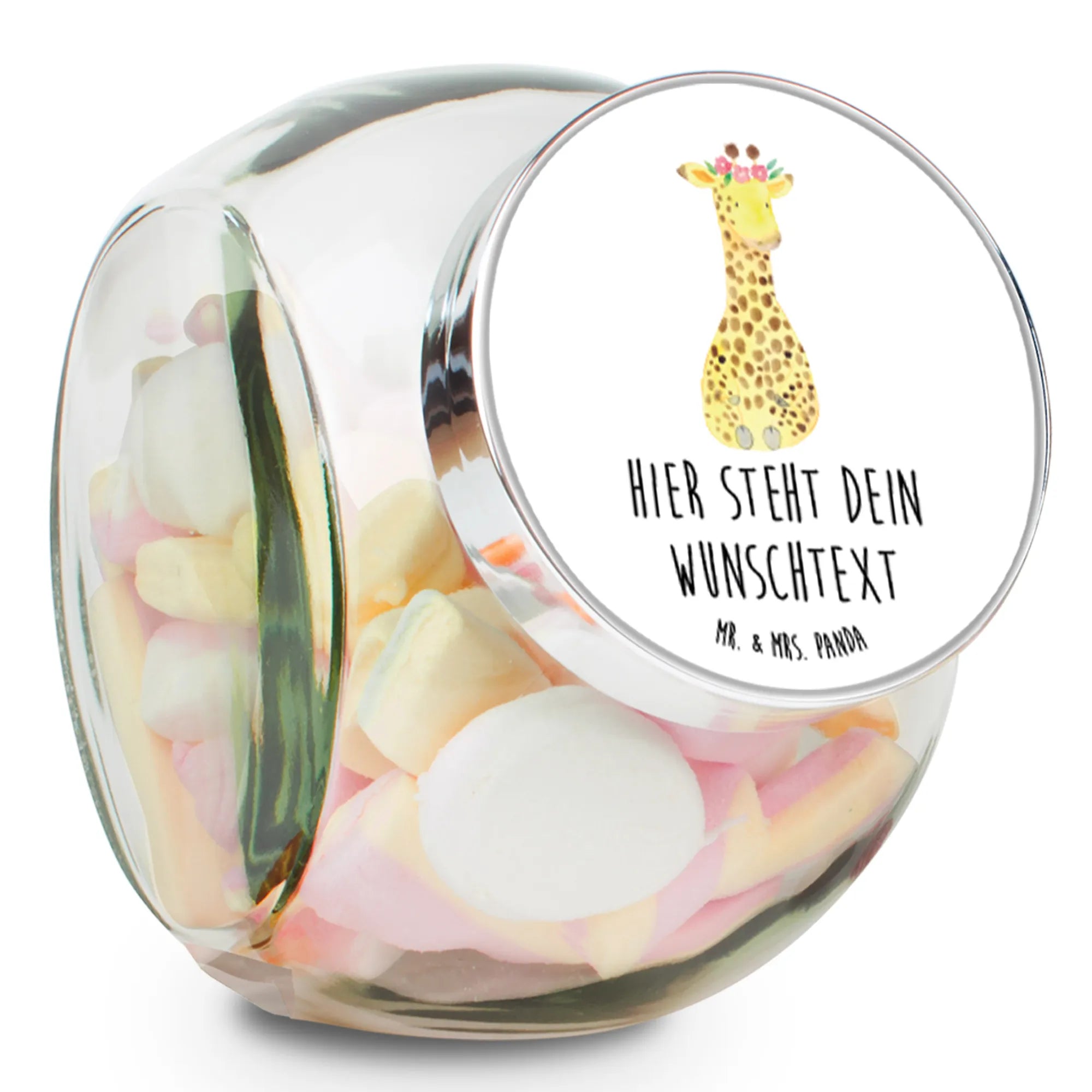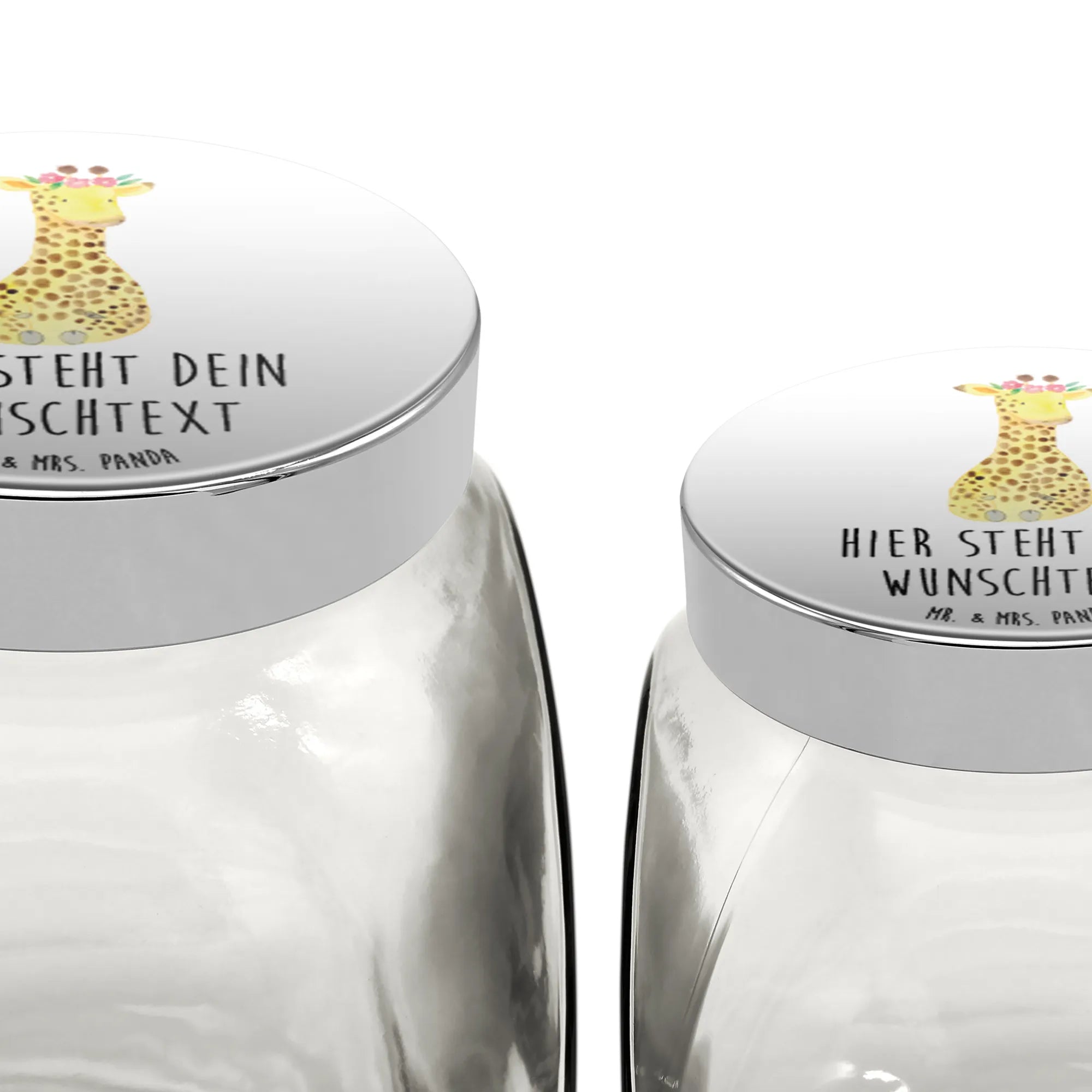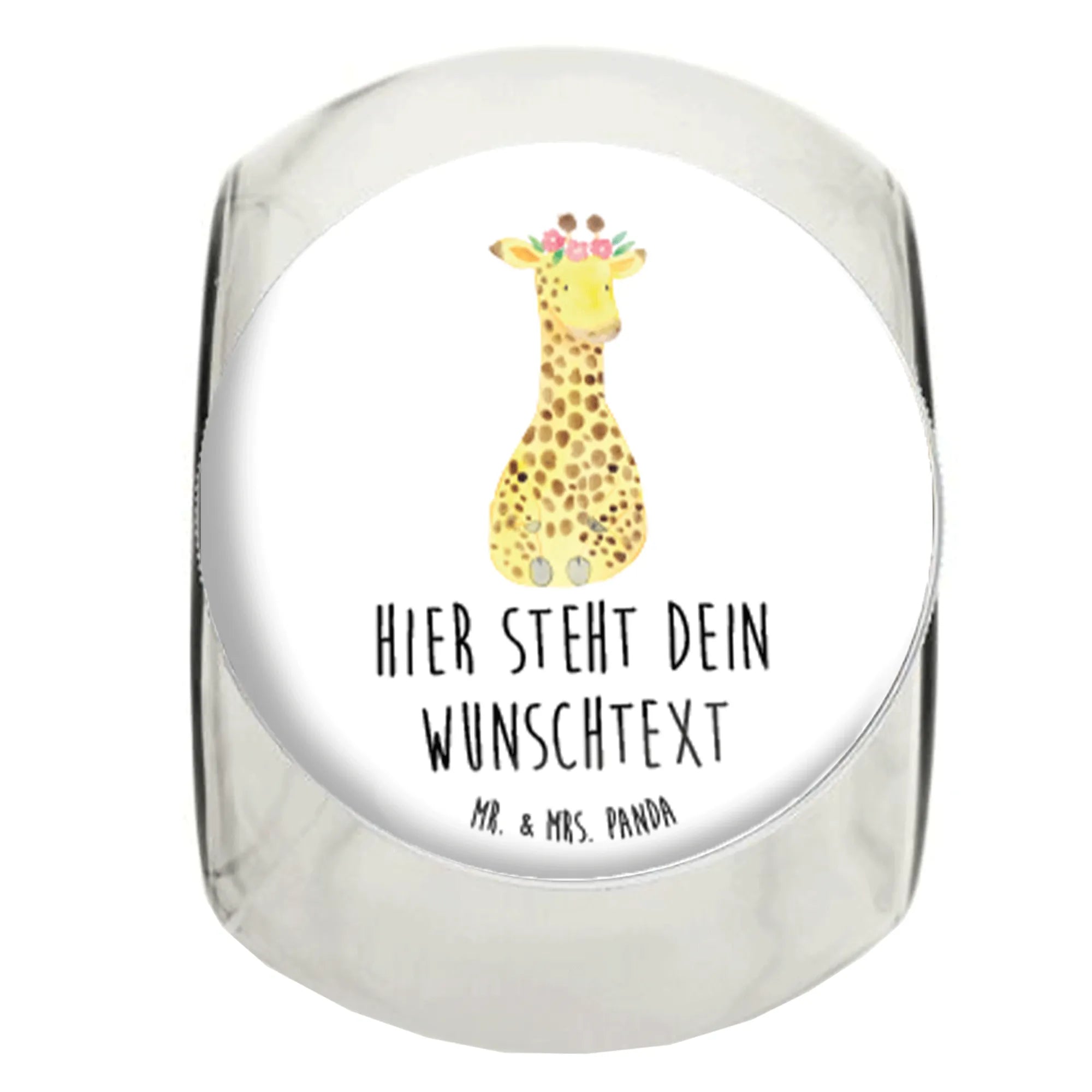 Entdecke das wunderschöne personalisierte Bonbonglas mit dem bezaubernden Motiv der Giraffe mit Blumenkranz aus unserer exklusiven Afrika-Kollektion! 🌼 Dieses Glas ist nicht nur ein Blickfang in jeder Küche, sondern auch das perfekte Geschenk für all die Süßigkeitenliebhaber und Tee-Genießer in deinem Leben.