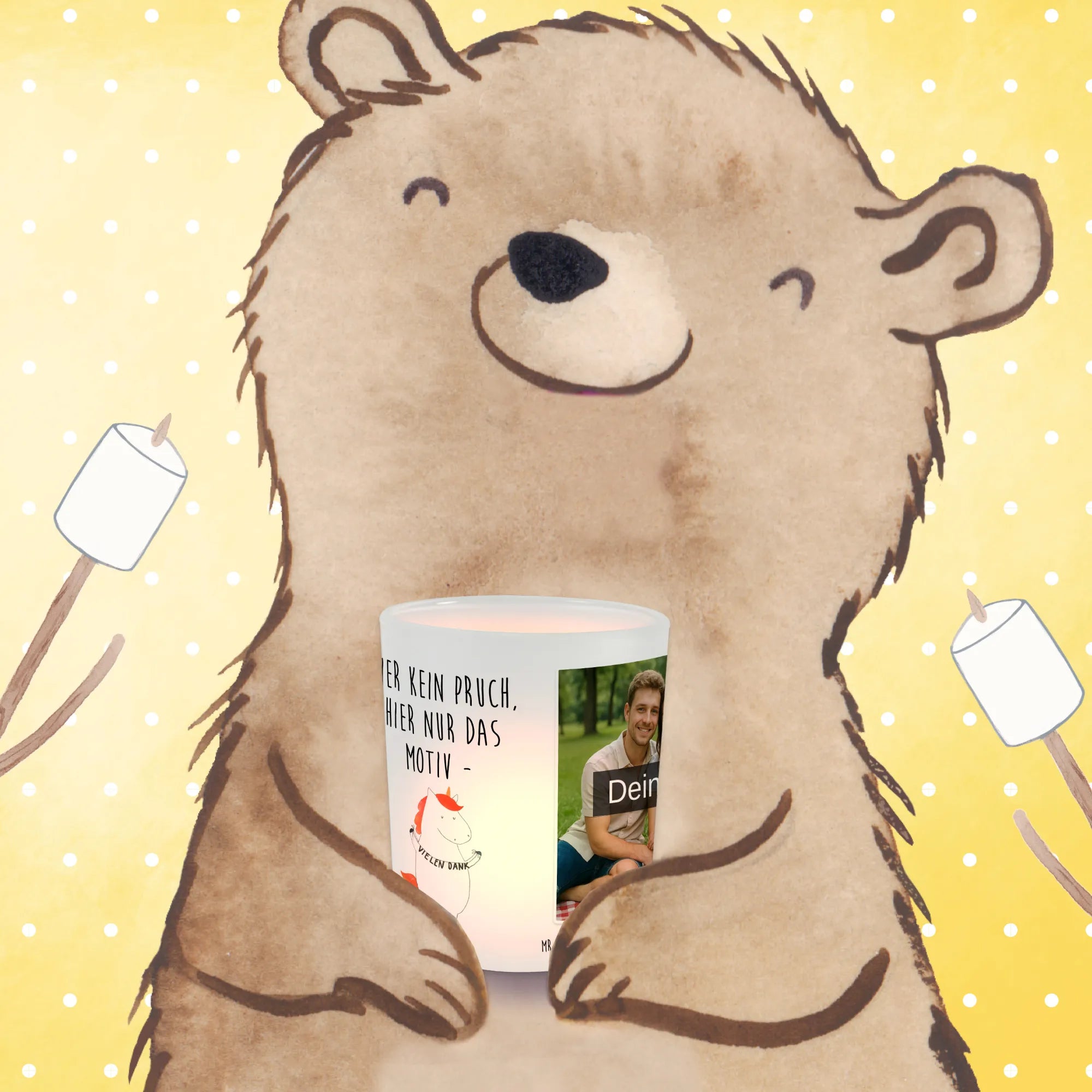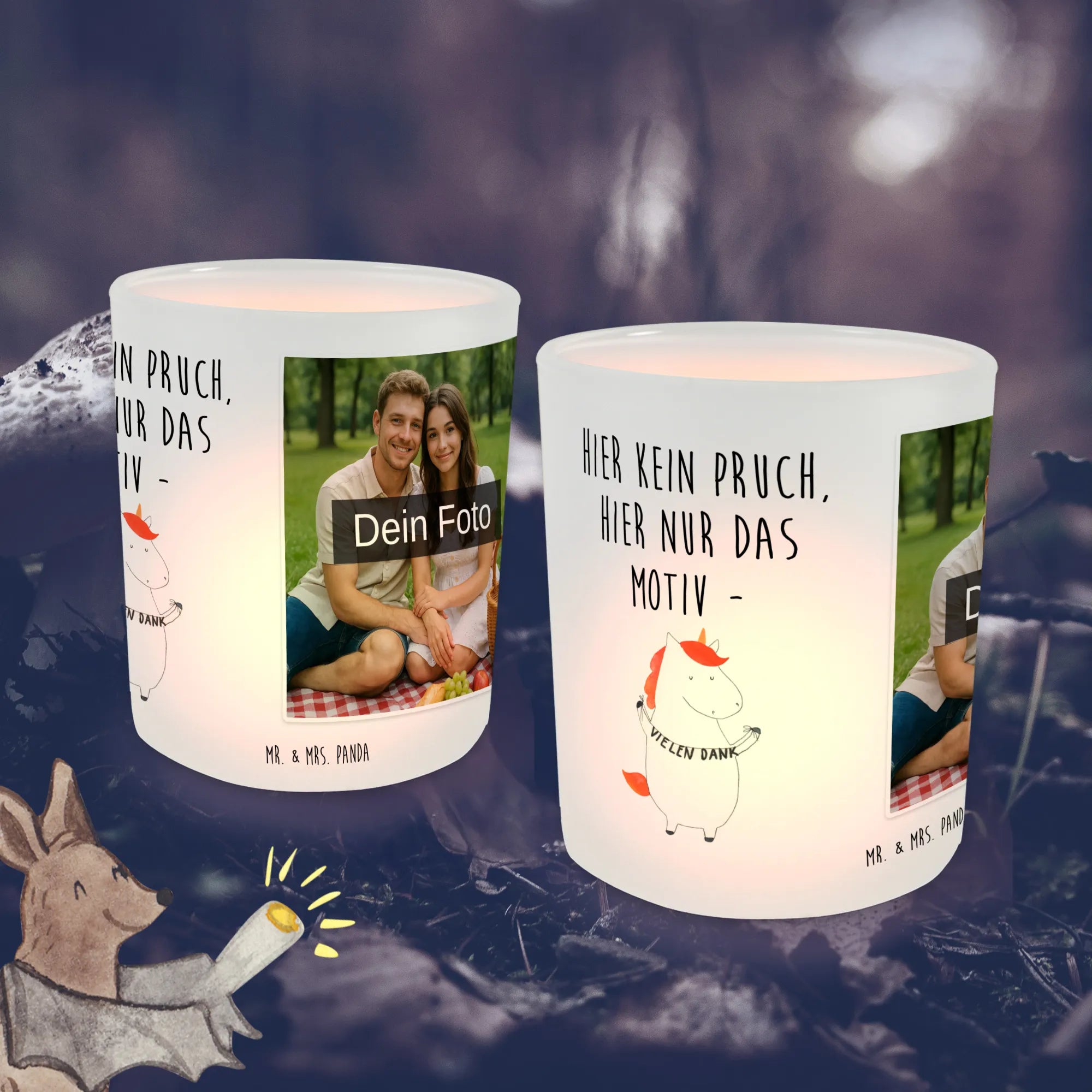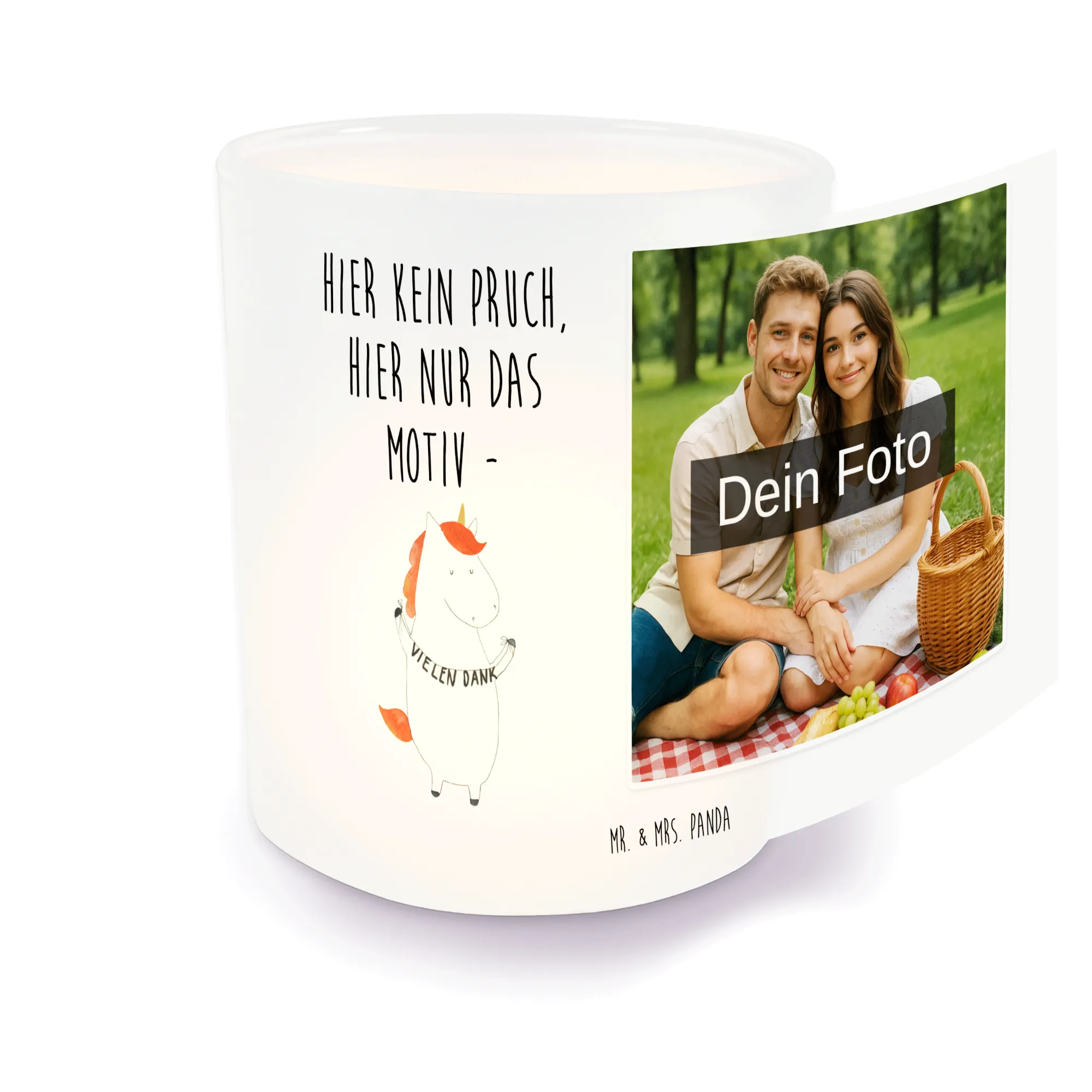 Spersonalizowany świecznik ze zdjęciem Jednorożec Dziękuję – Mr. & Mrs. Panda