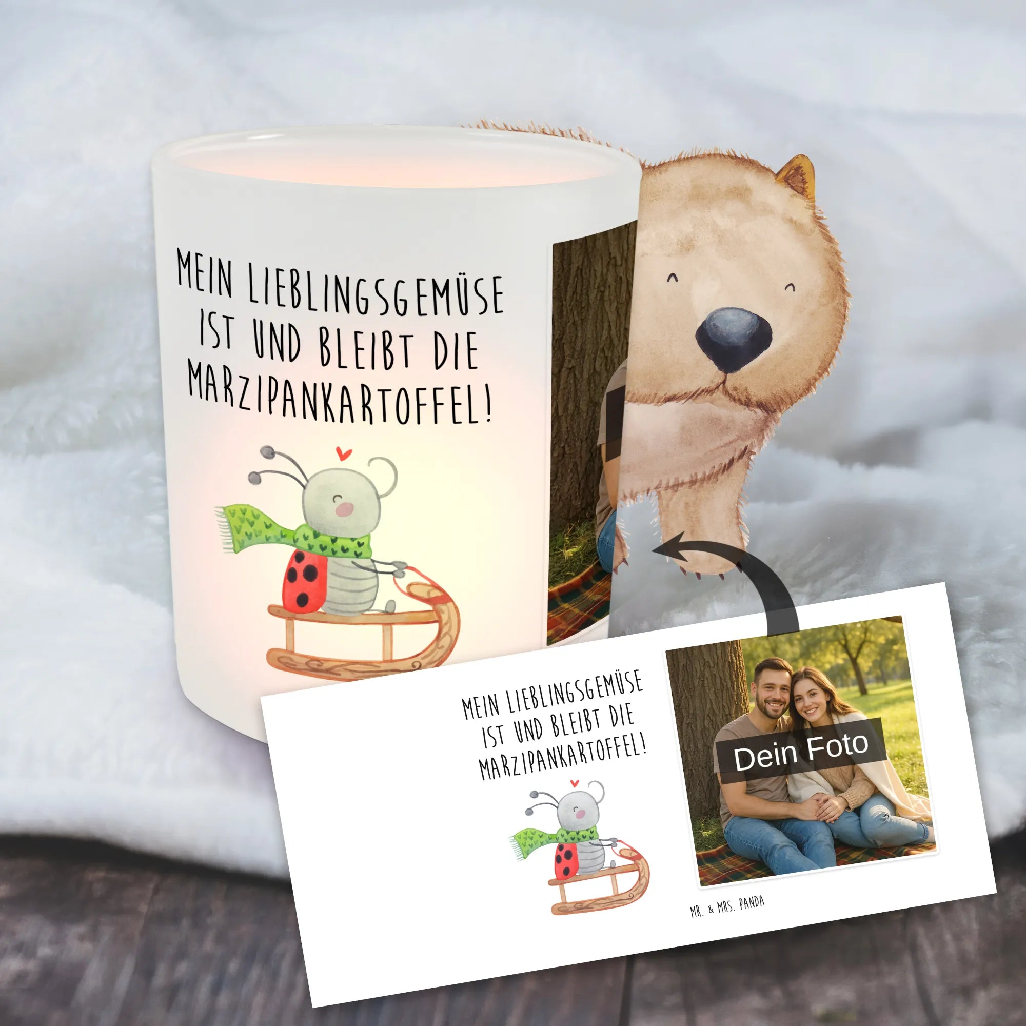 Spersonalizowany świecznik ze zdjęciem Smörle jazda na sankach – Mr. & Mrs. Panda