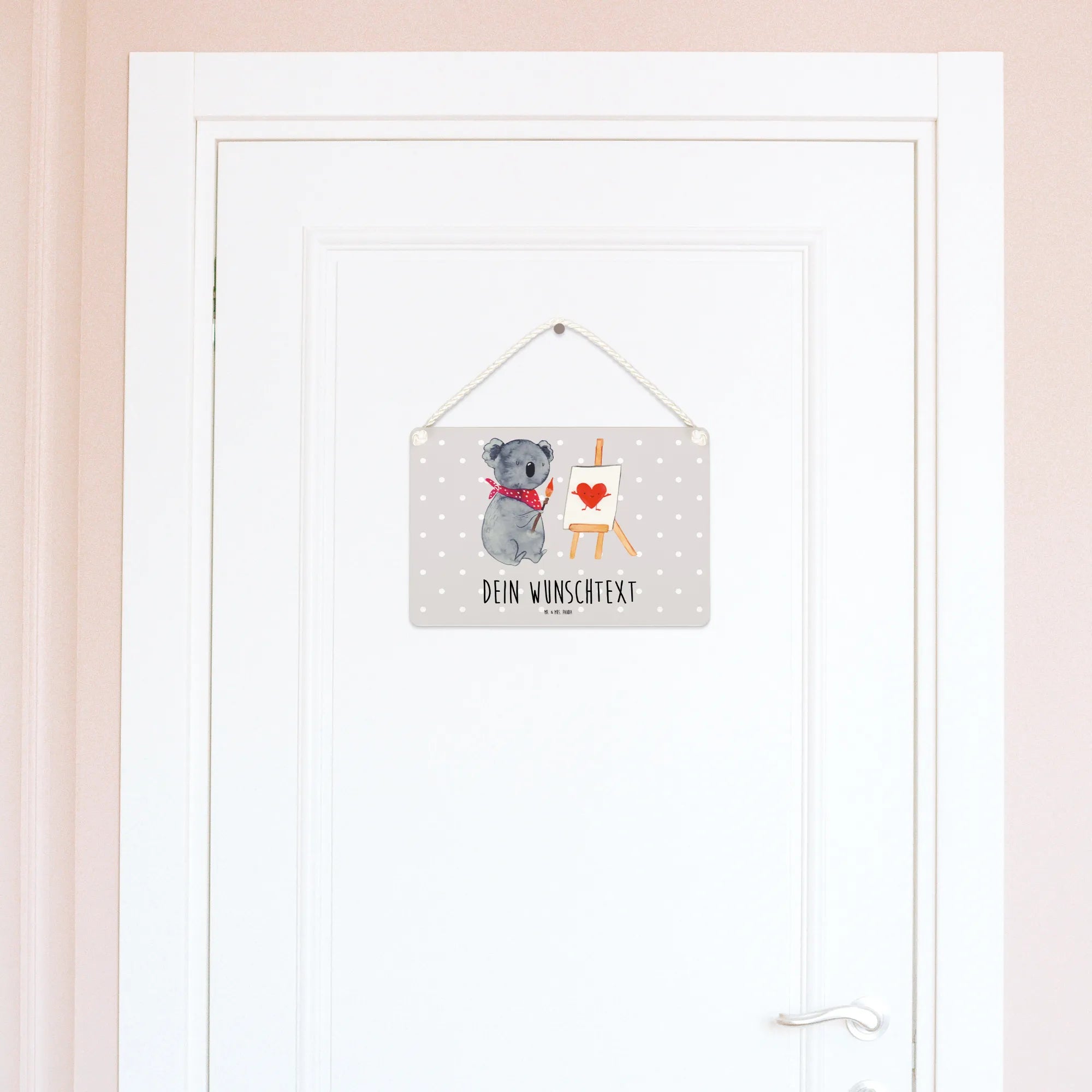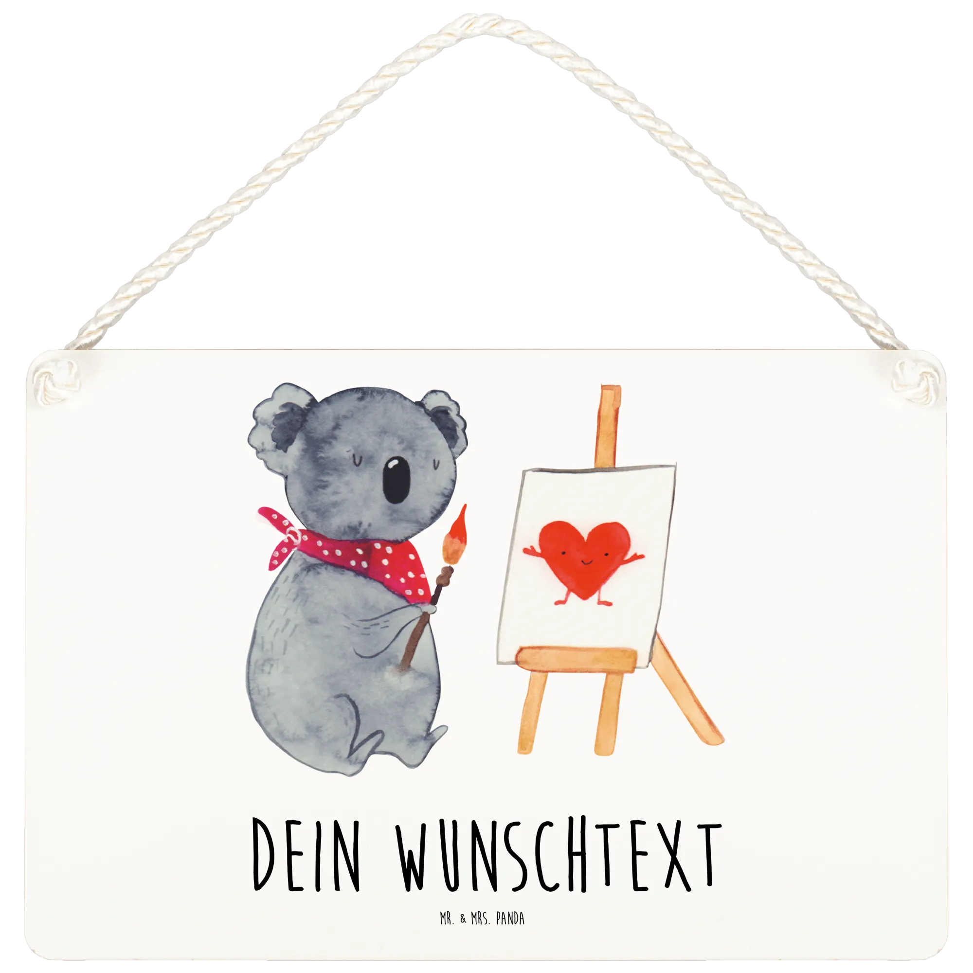 Spersonalizowany szyld dekoracyjny koala artysta - DIN A6 - biały
