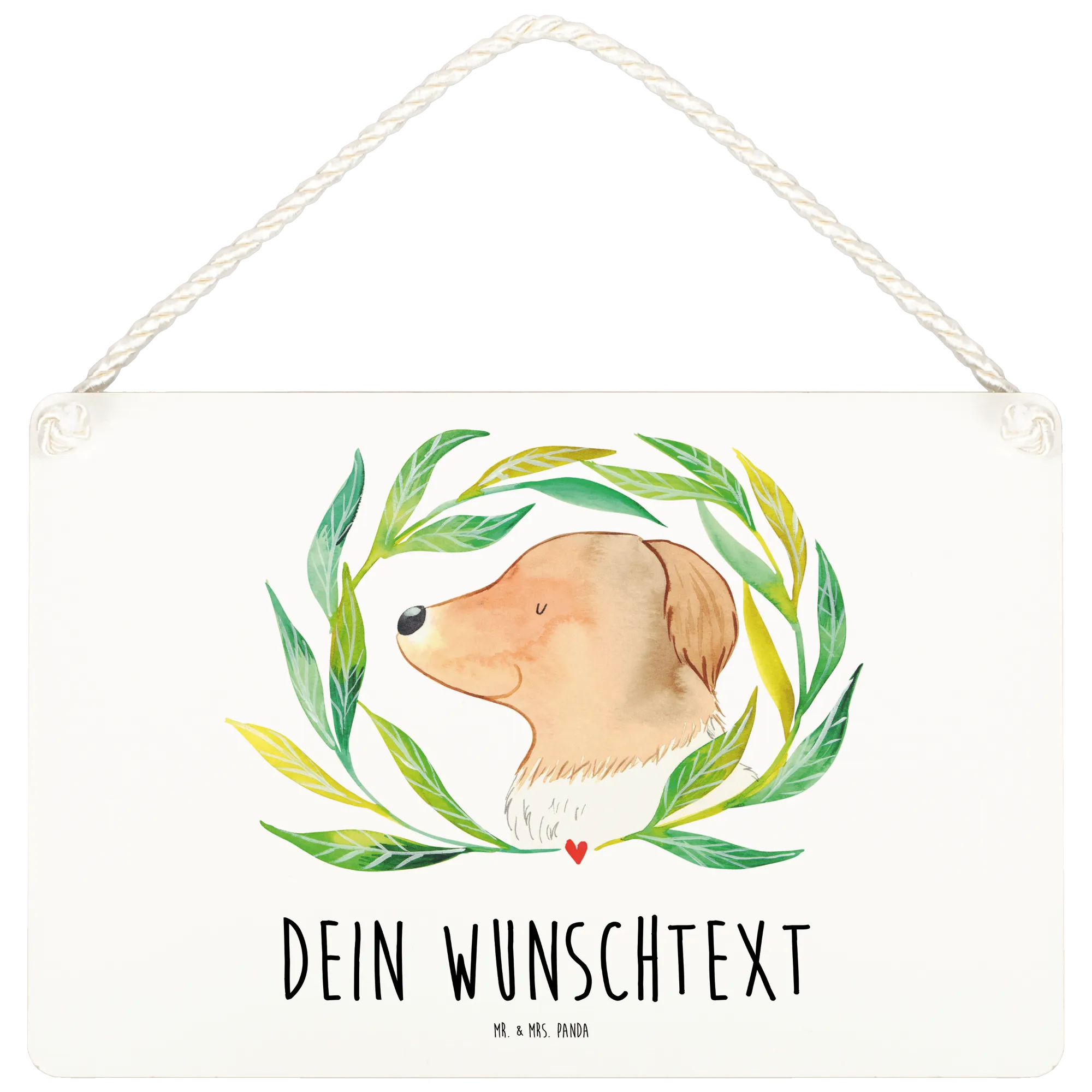 Spersonalizowany szyld dekoracyjny pies kwiaty - DIN A6 - biały