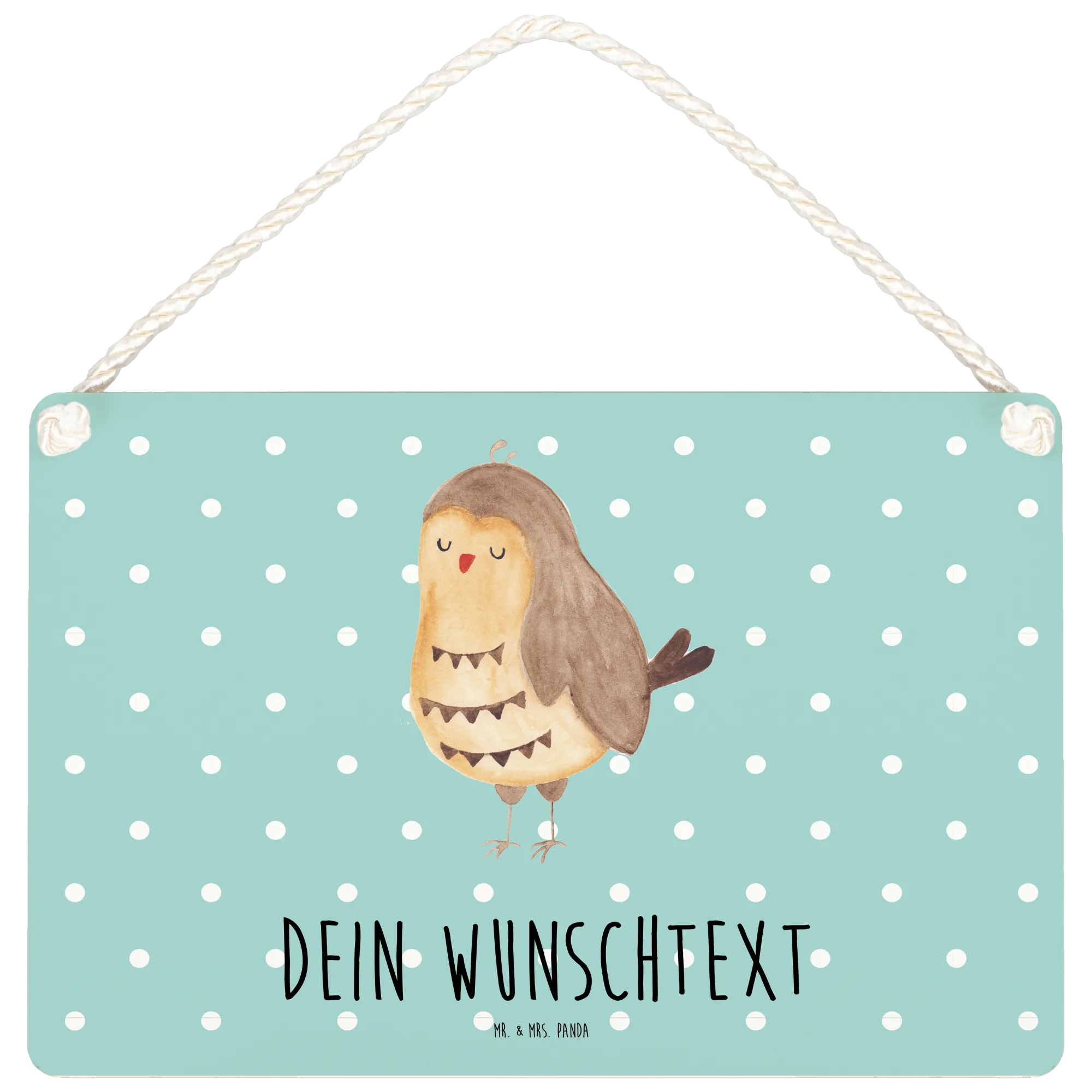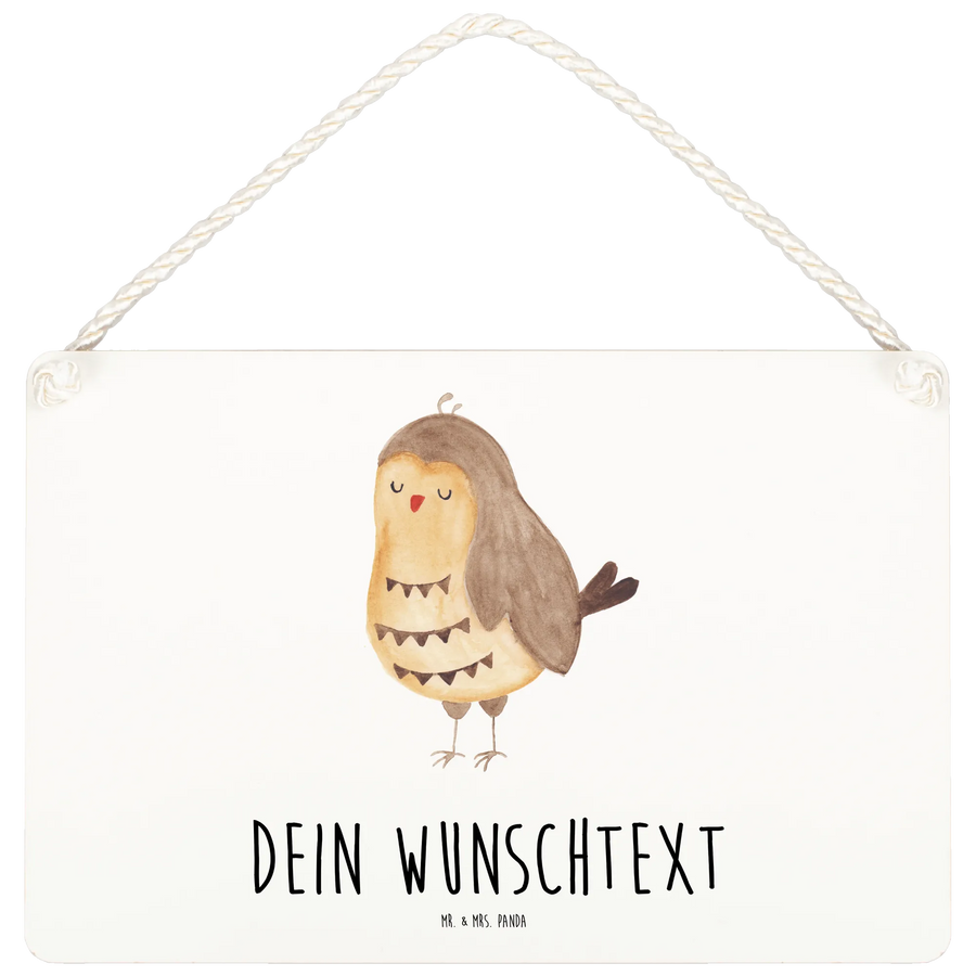 Spersonalizowany szyld dekoracyjny sowa zadowolona - DIN A6 - biały