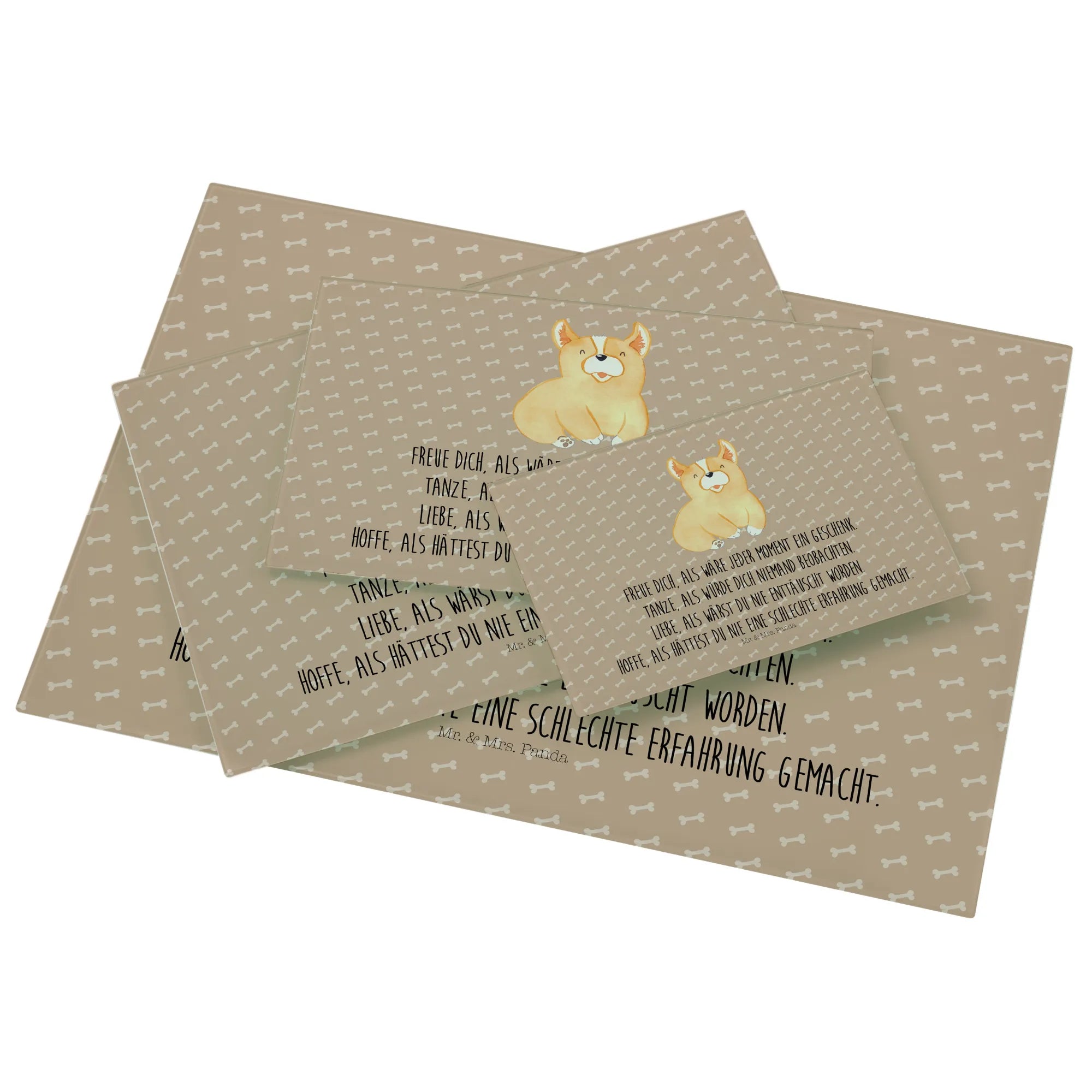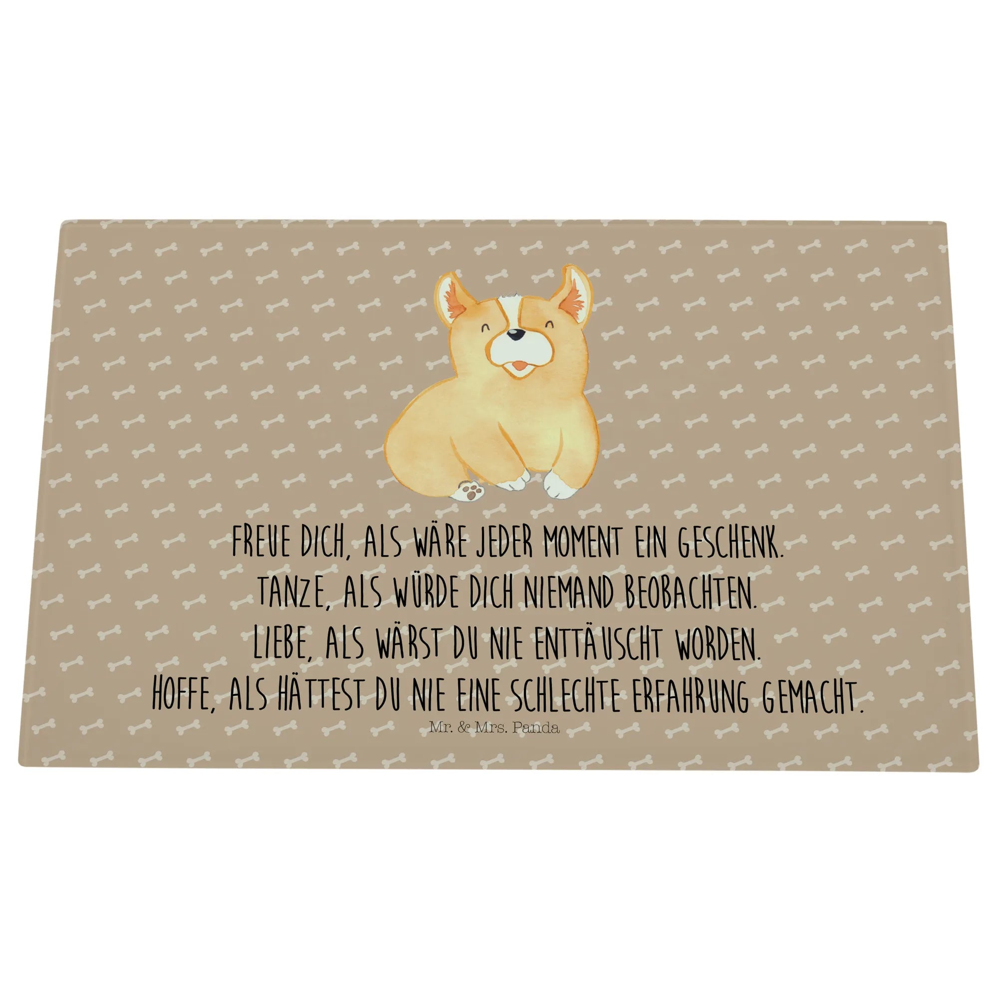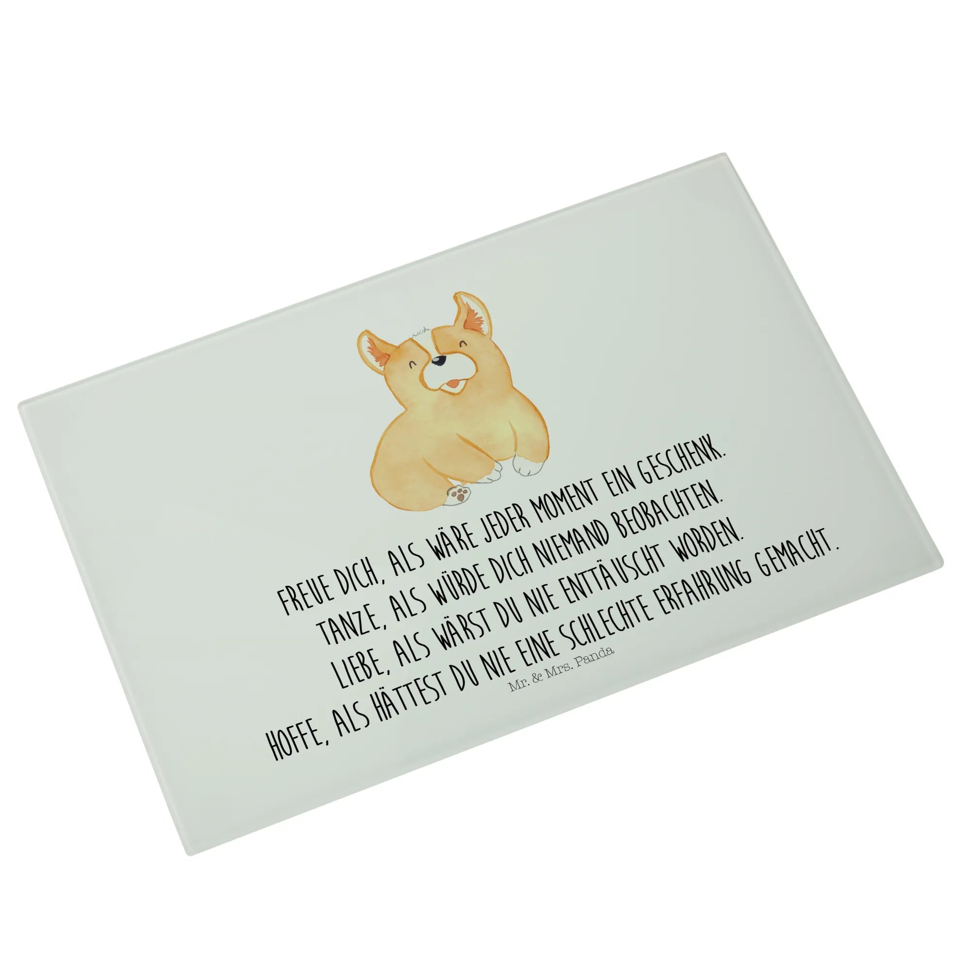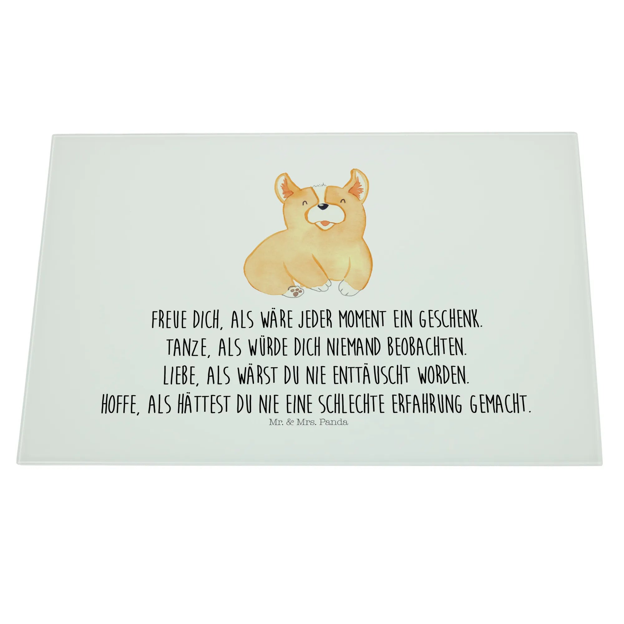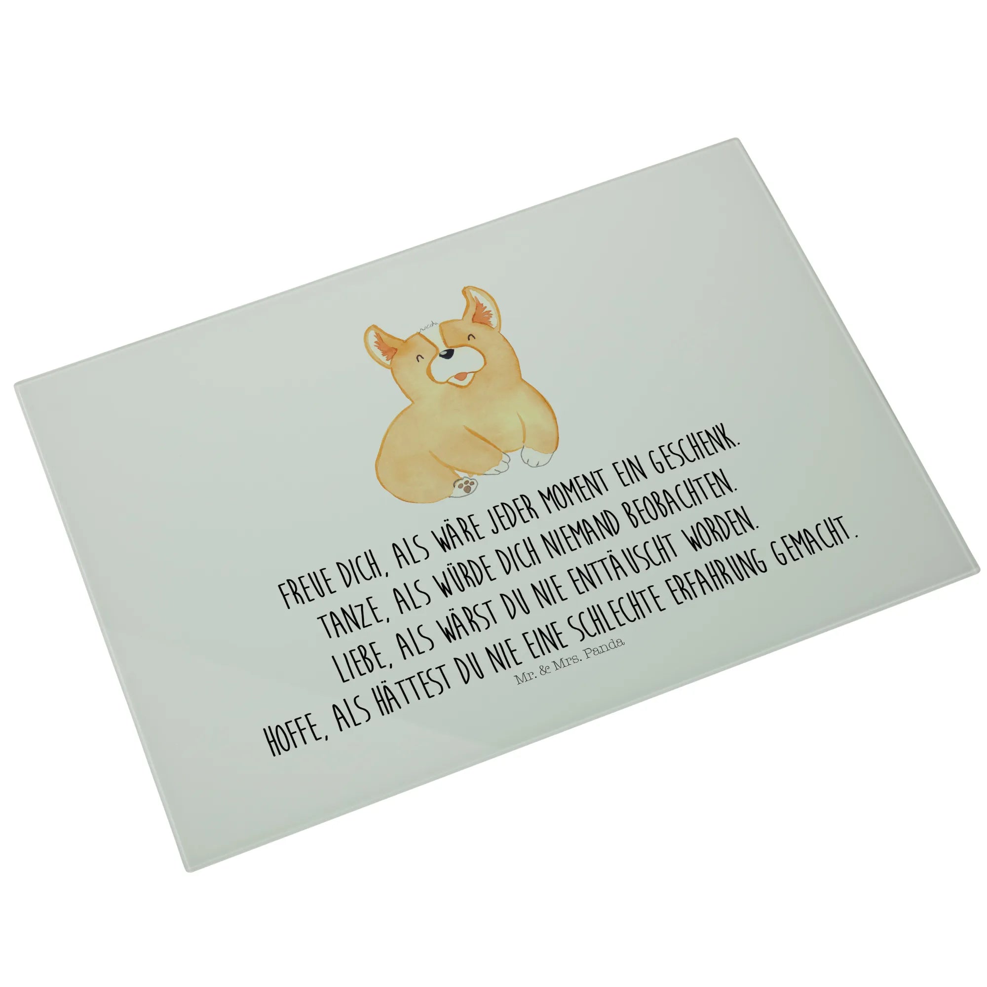 Średnia szklana deska do krojenia Corgi - Medium Glas Schneidbrett - z napisem - biały