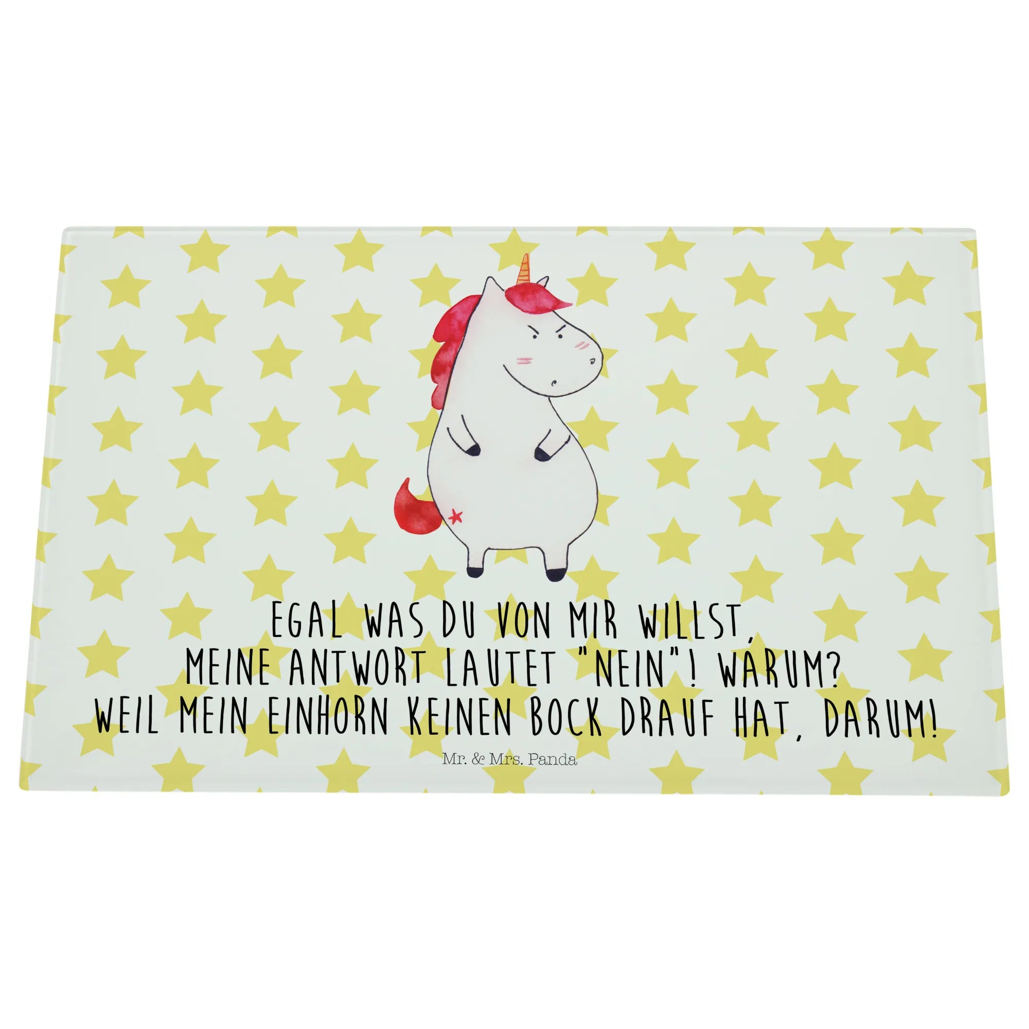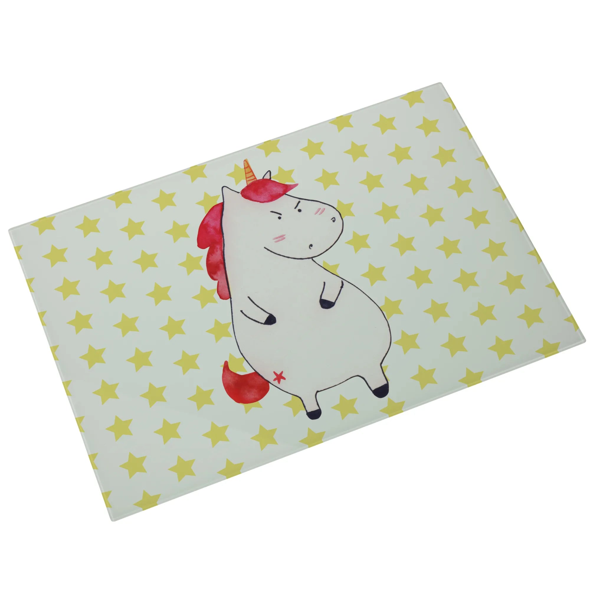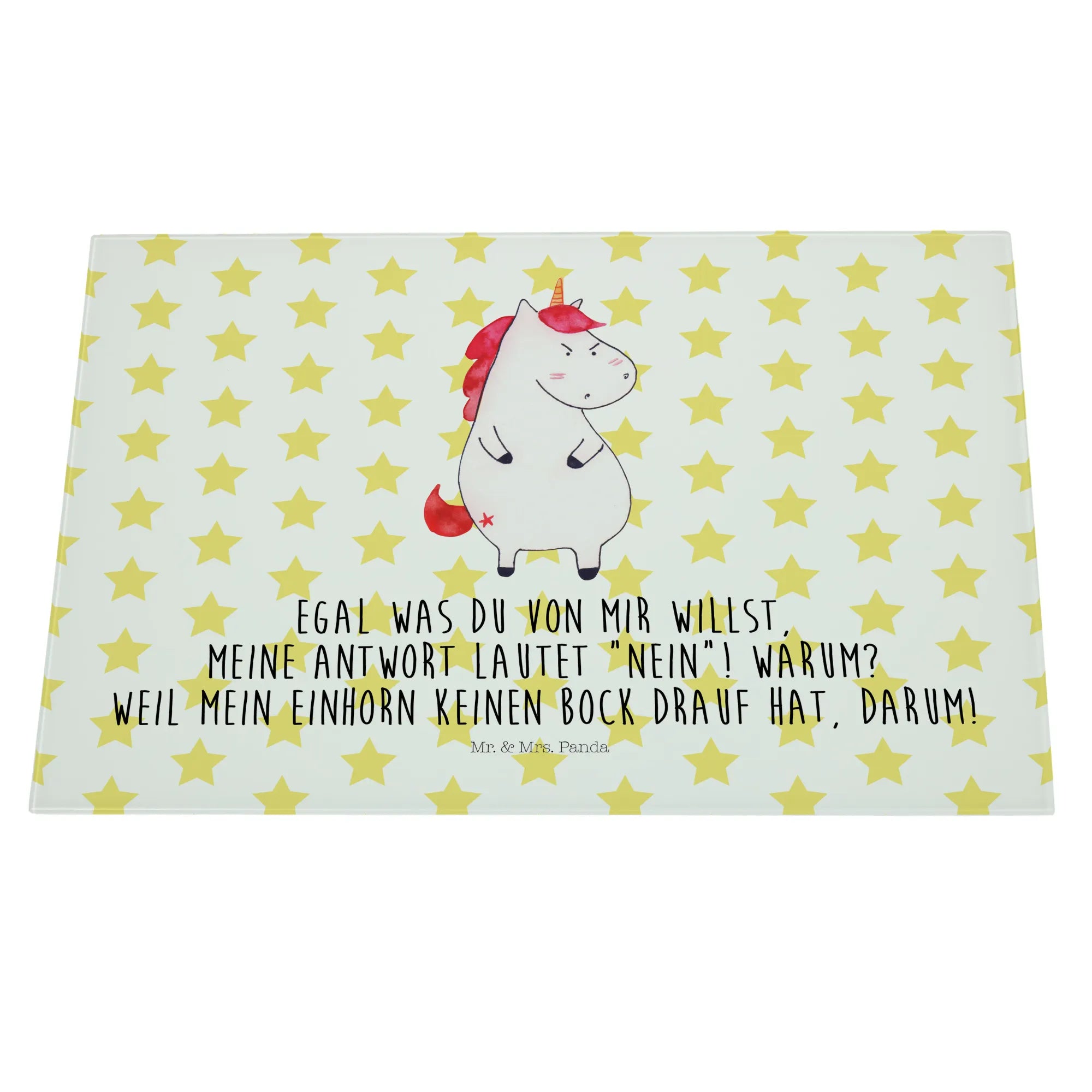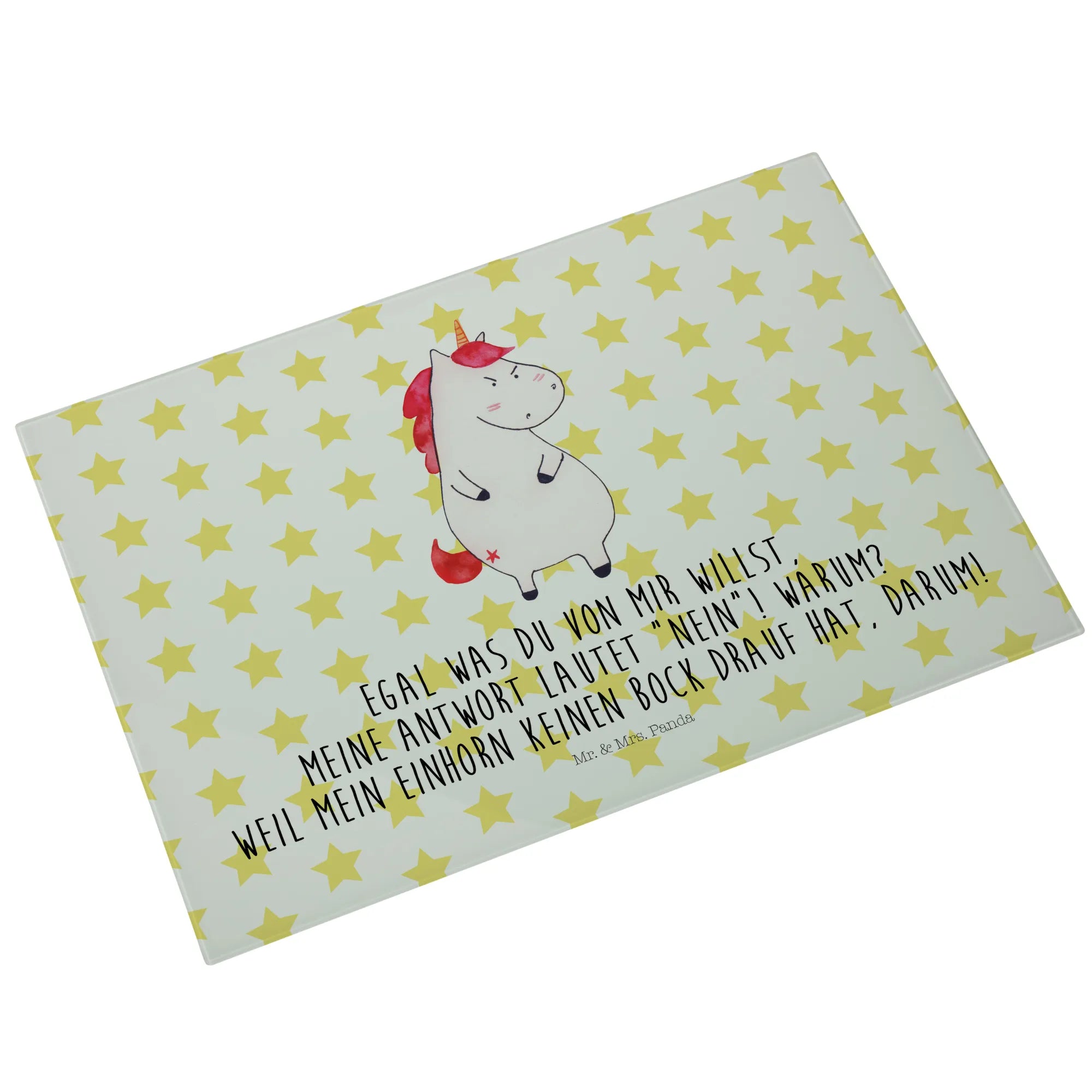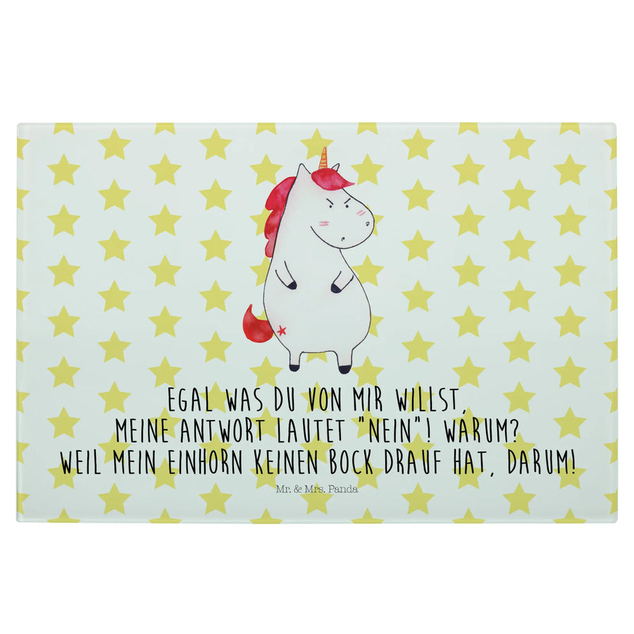 Średnia szklana deska do krojenia Jednorożec gniew - Medium Glas Schneidbrett - z napisem - biały