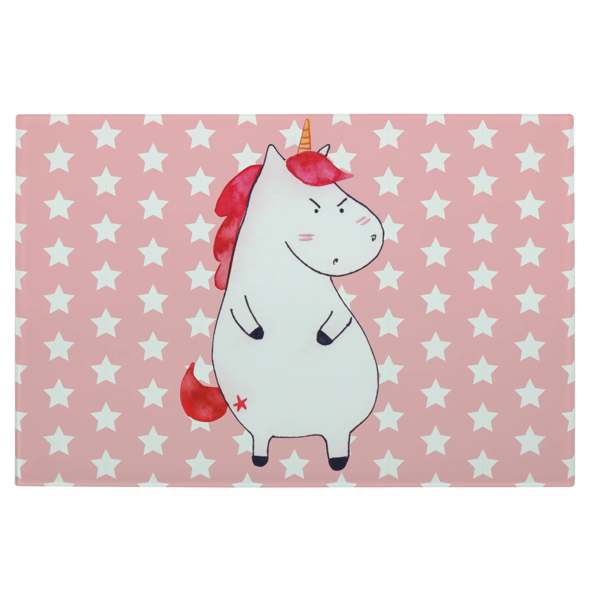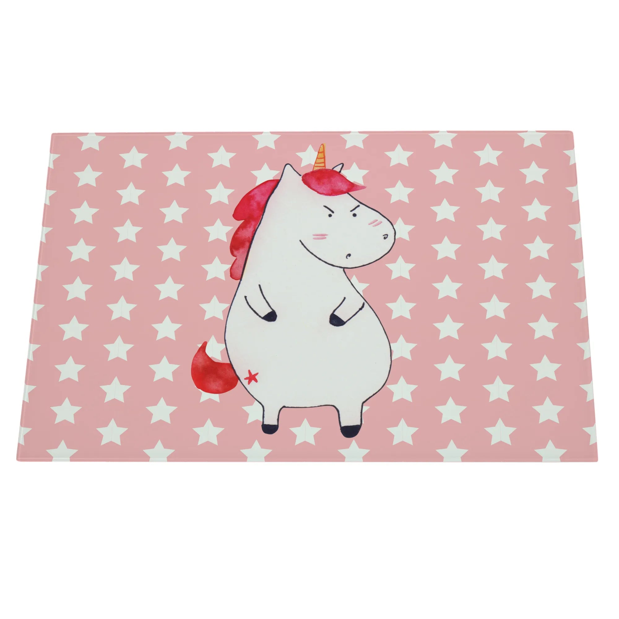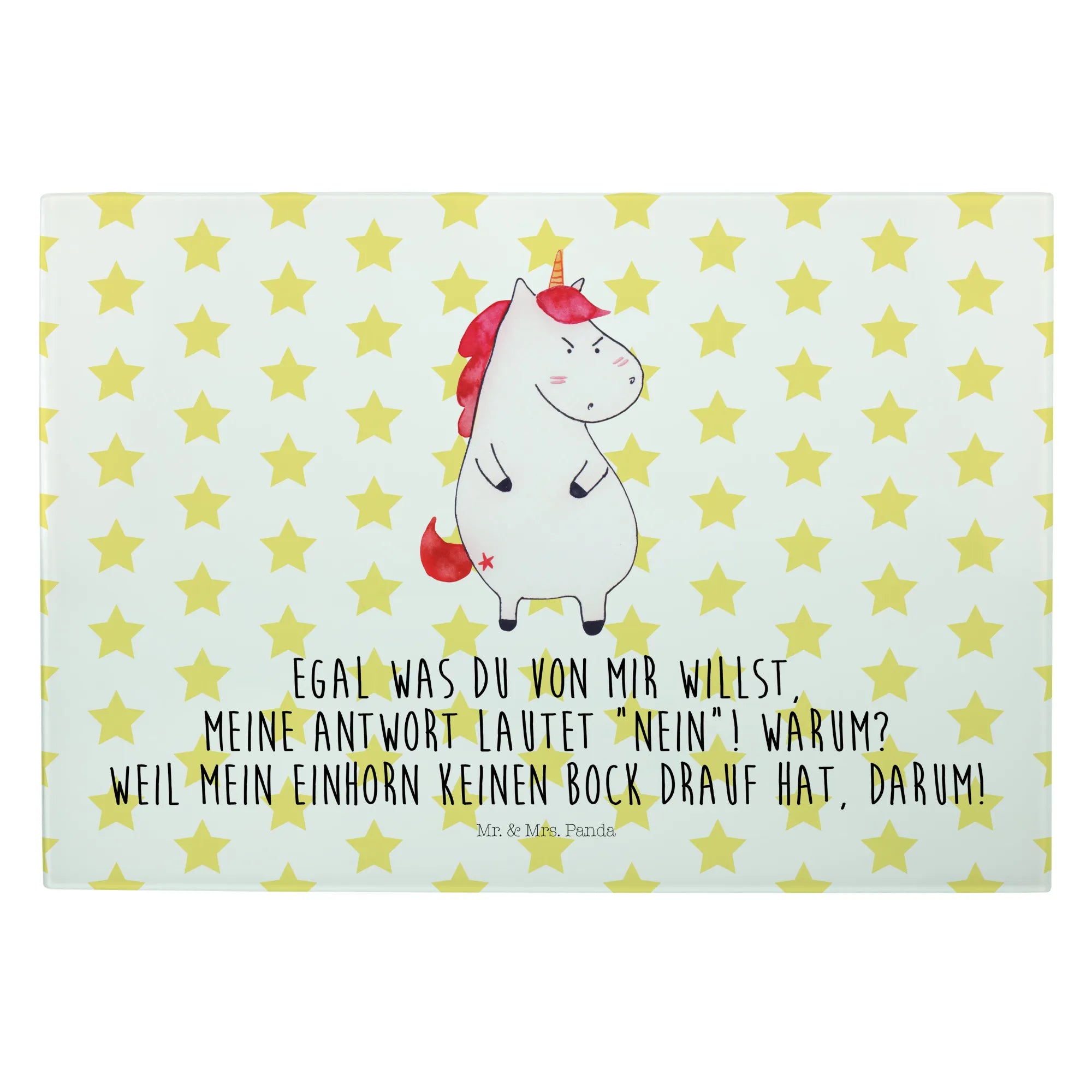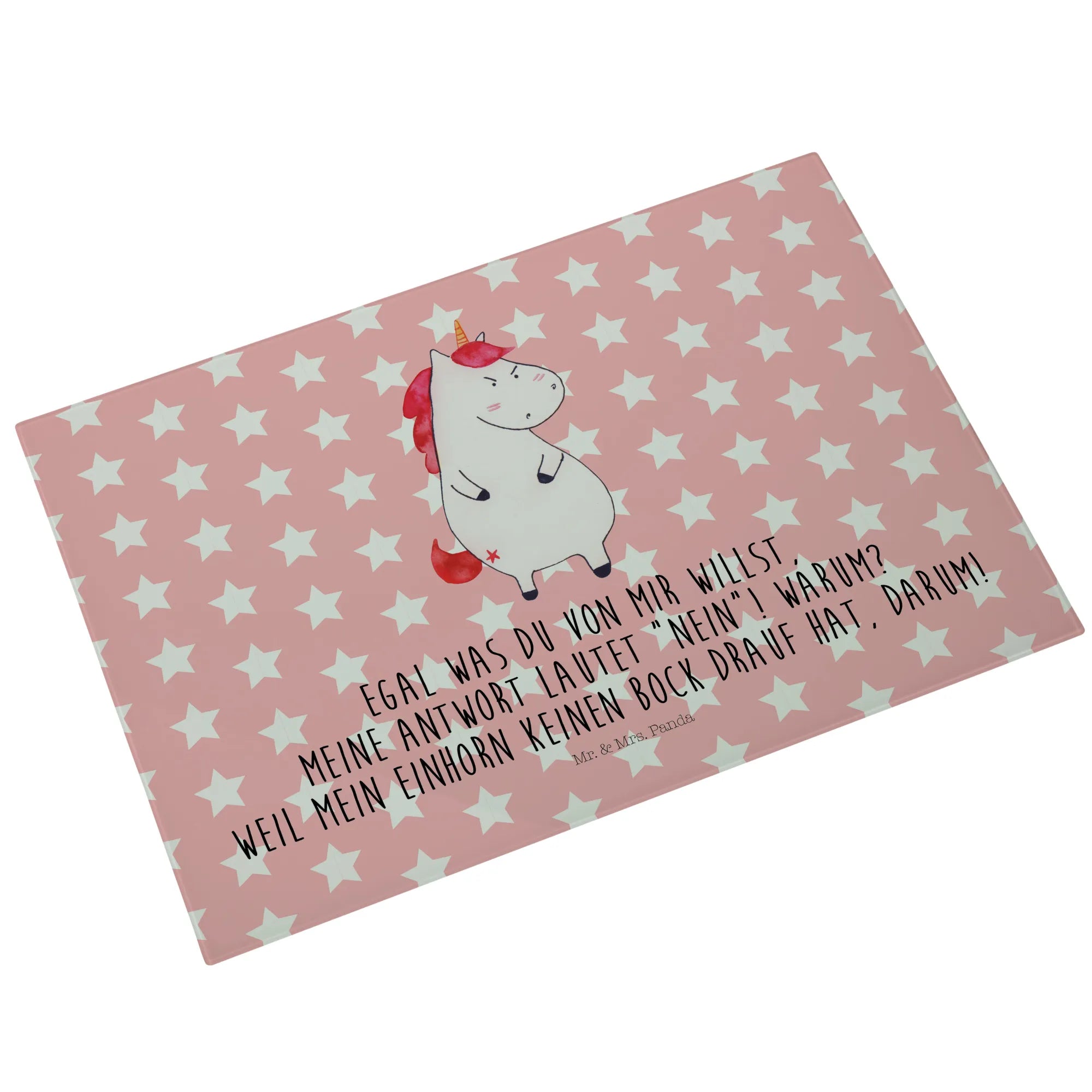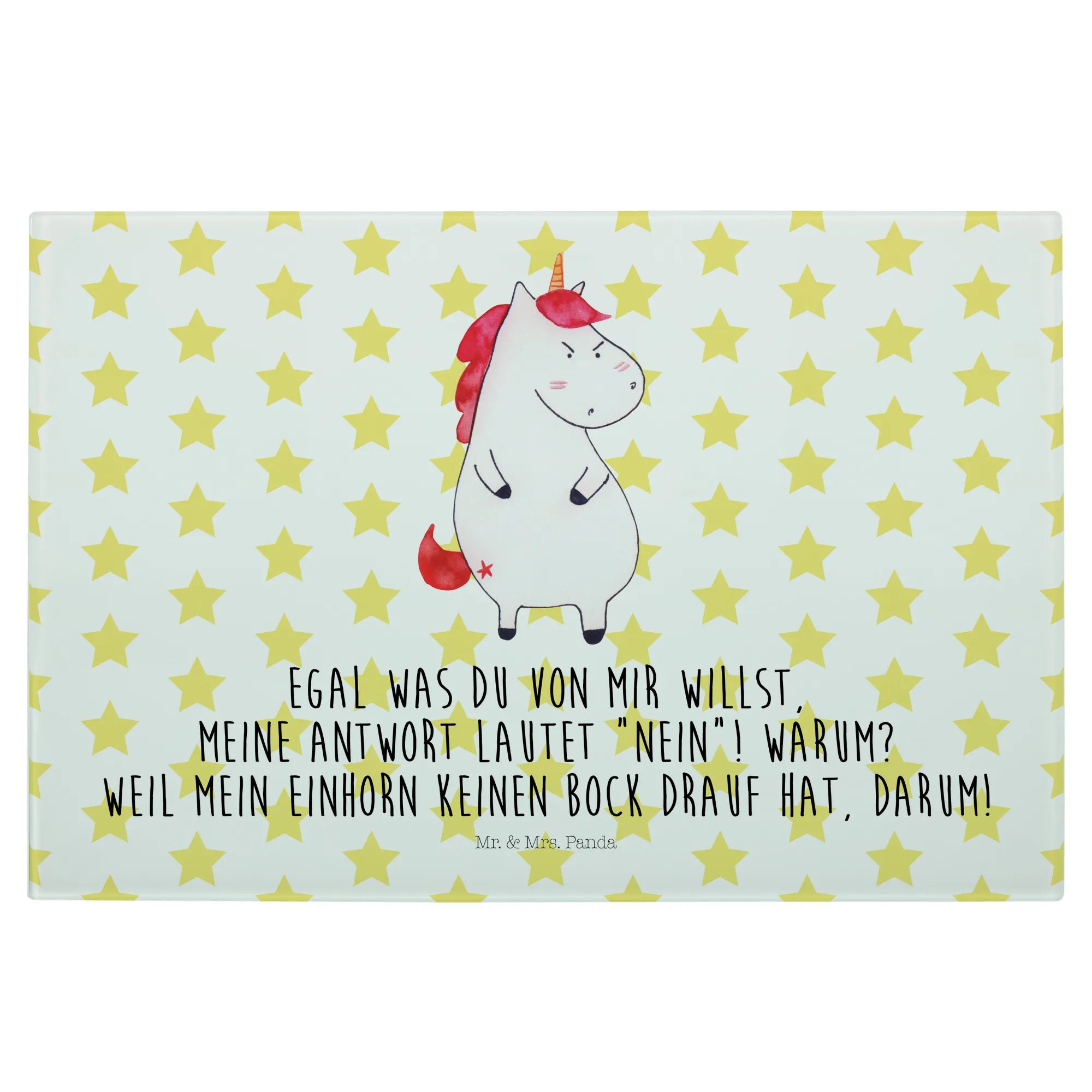 Średnia szklana deska do krojenia Jednorożec gniew - Medium Glas Schneidbrett - z napisem - biały