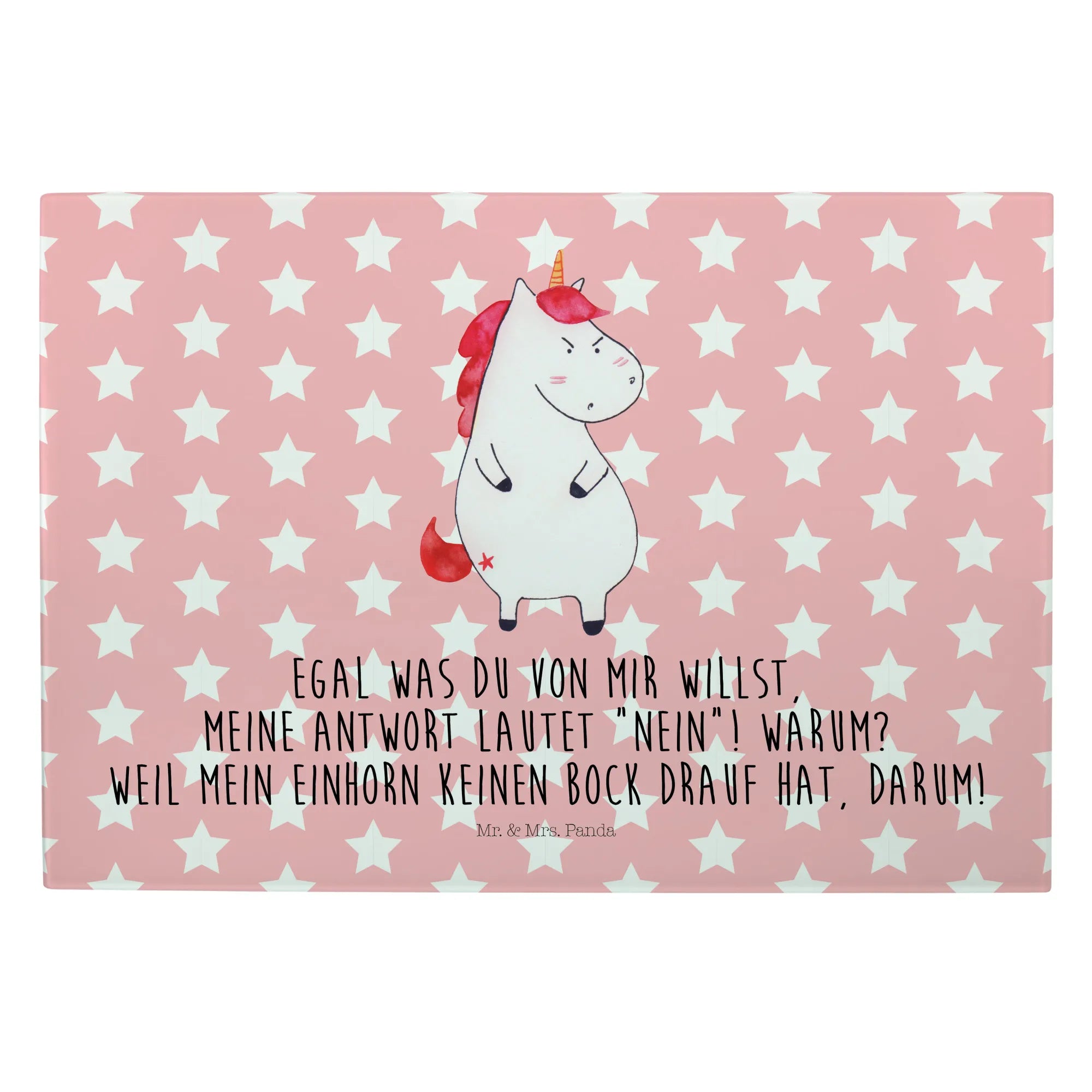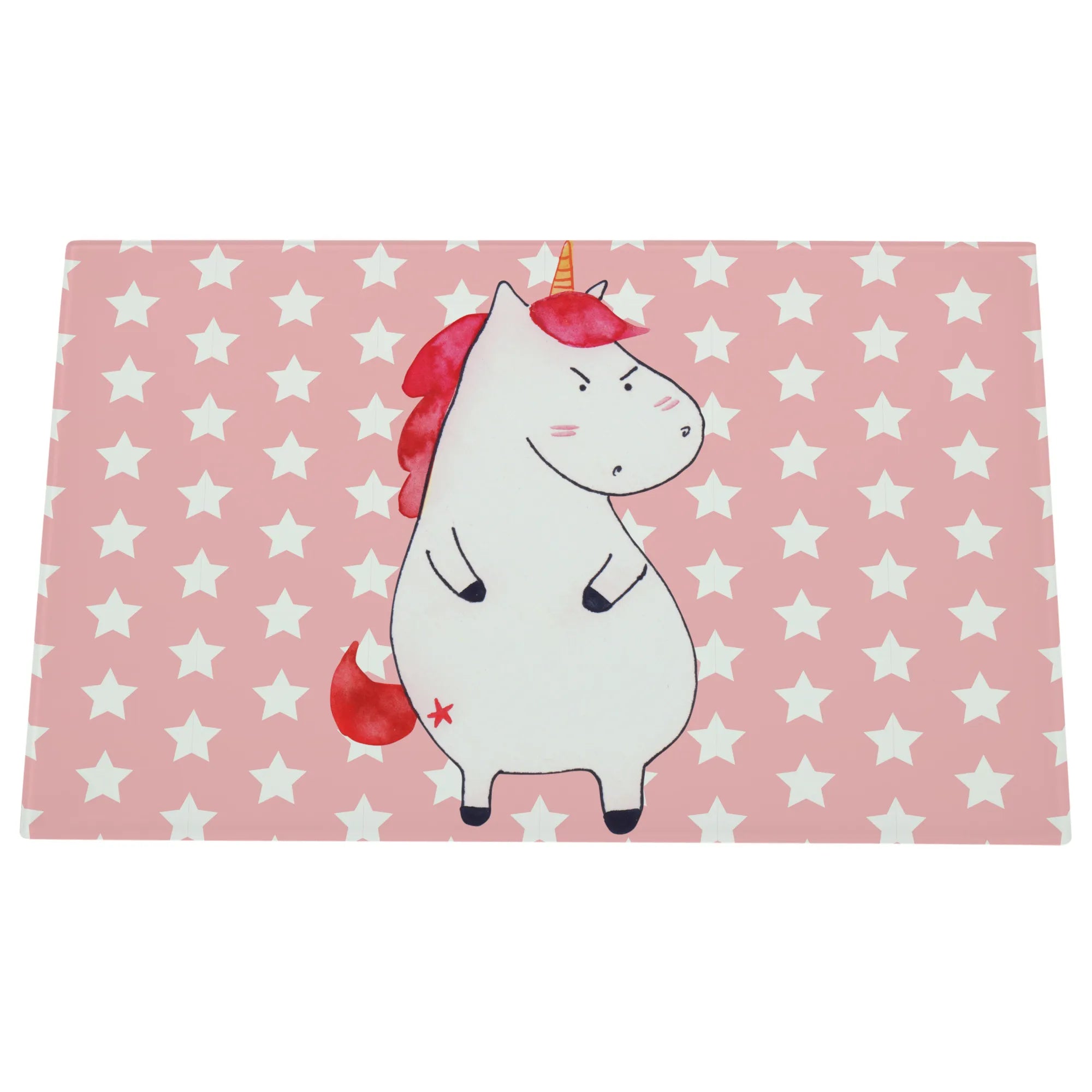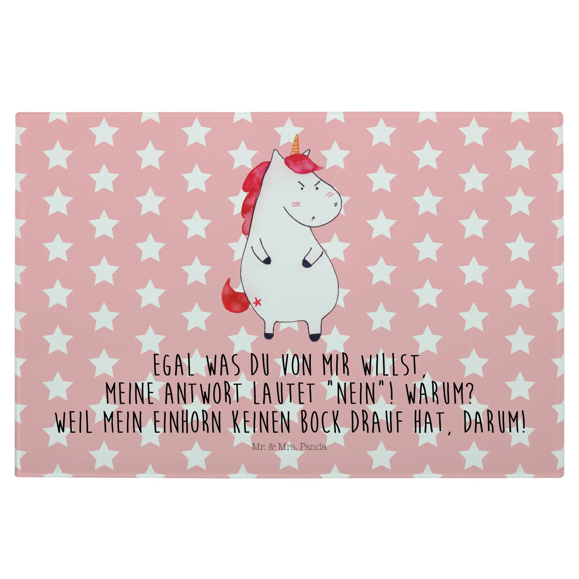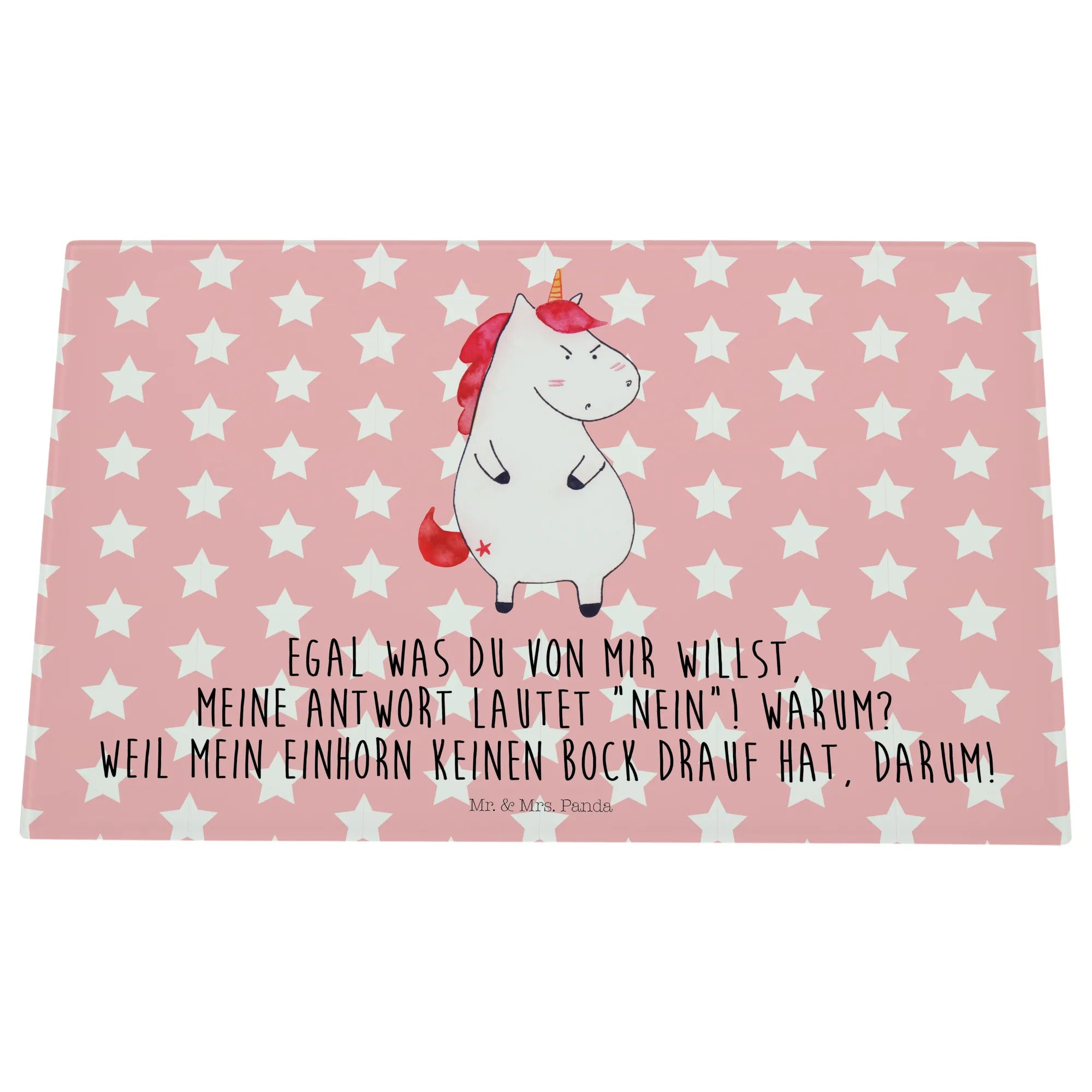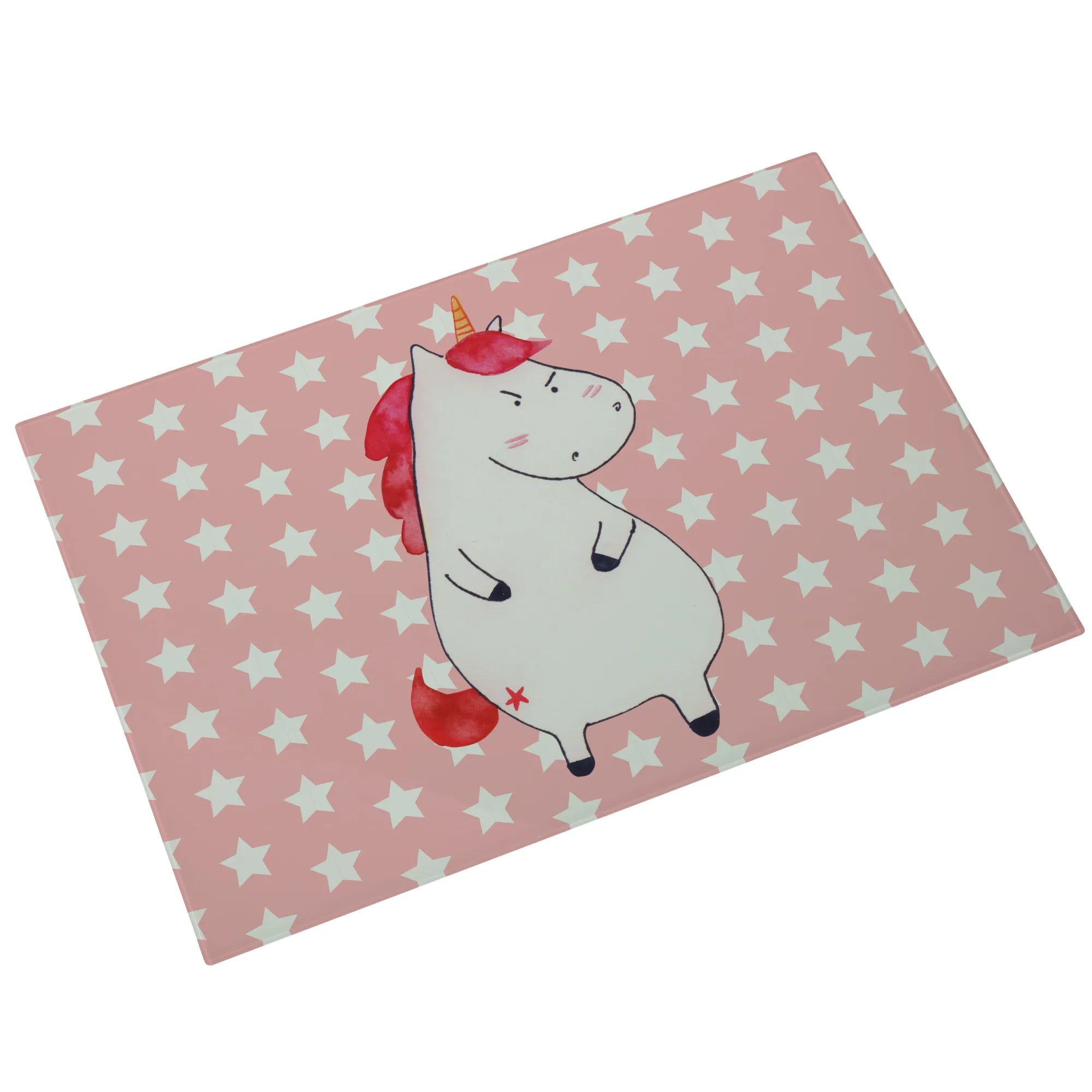 Średnia szklana deska do krojenia Jednorożec gniew - Medium Glas Schneidbrett - z napisem - biały