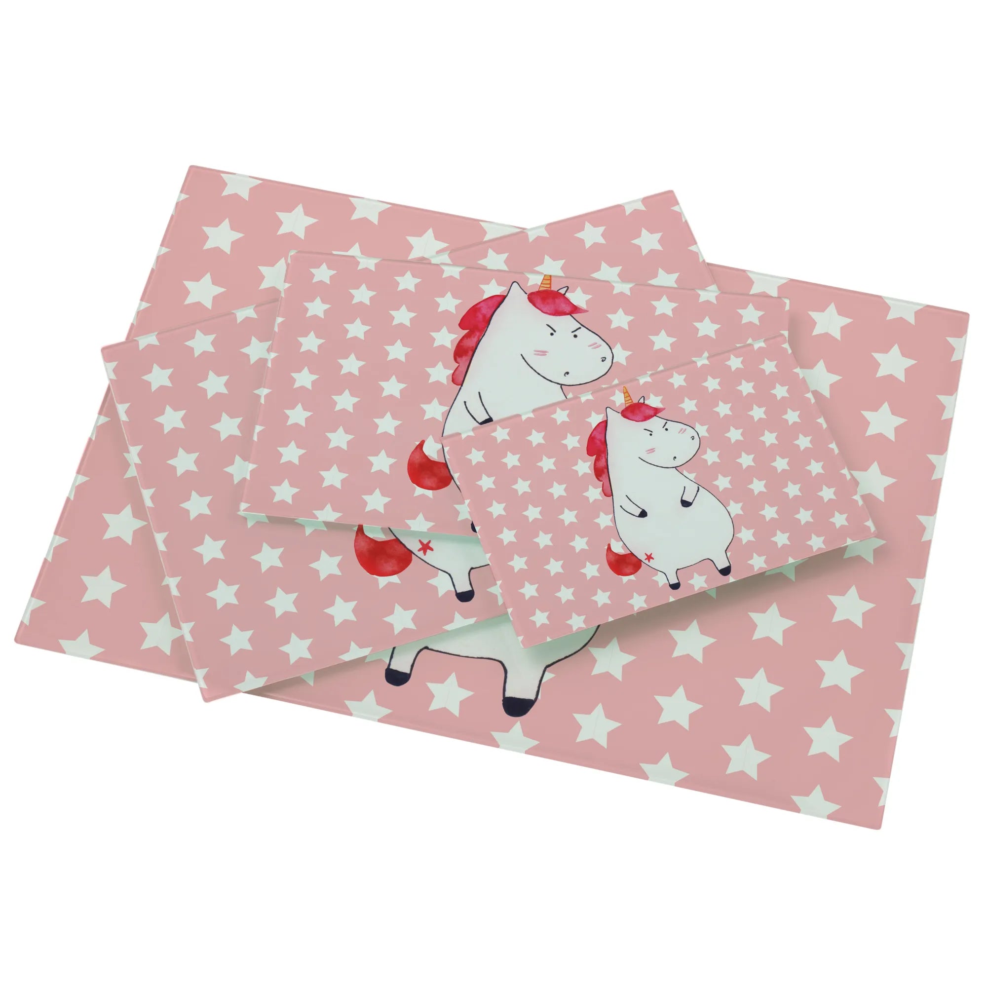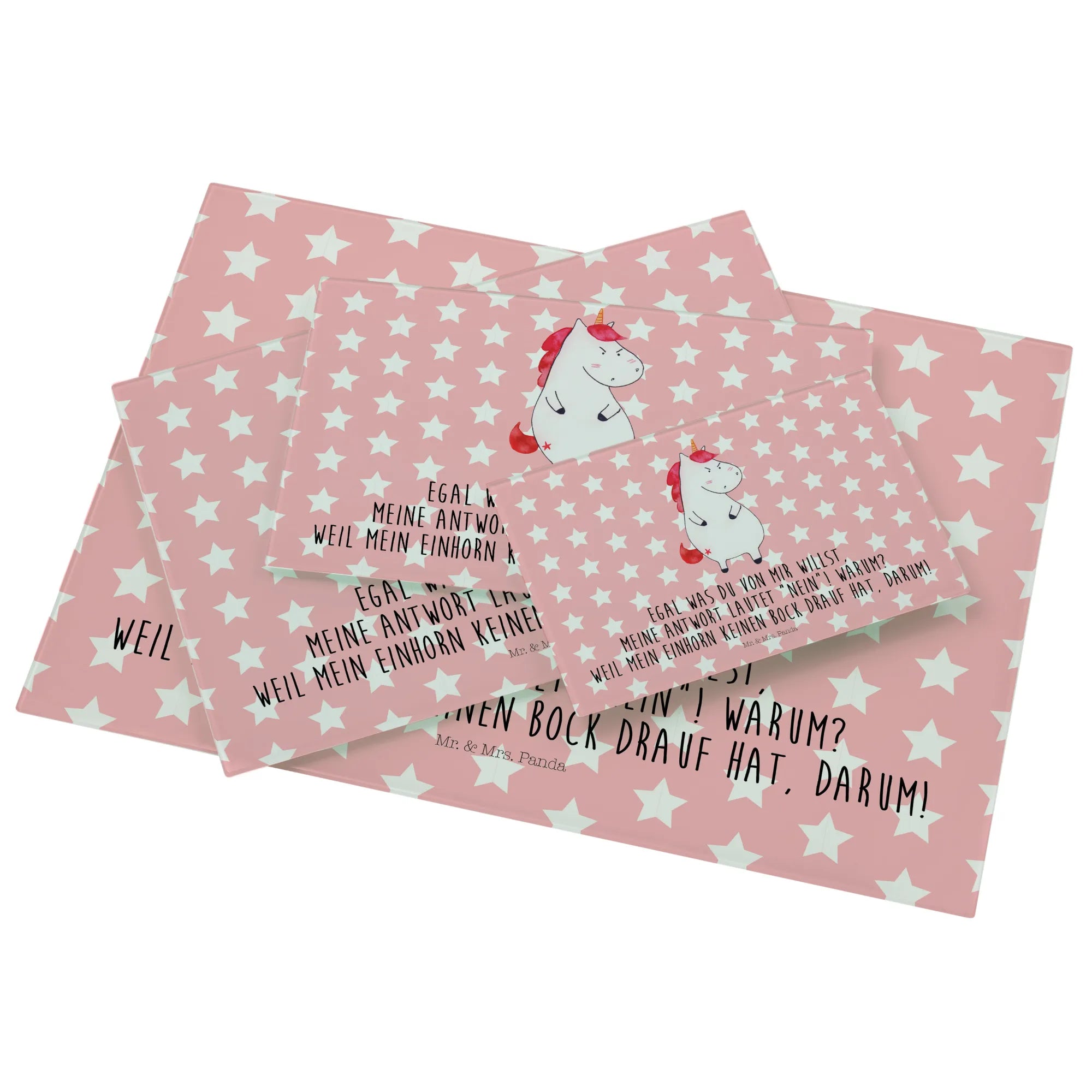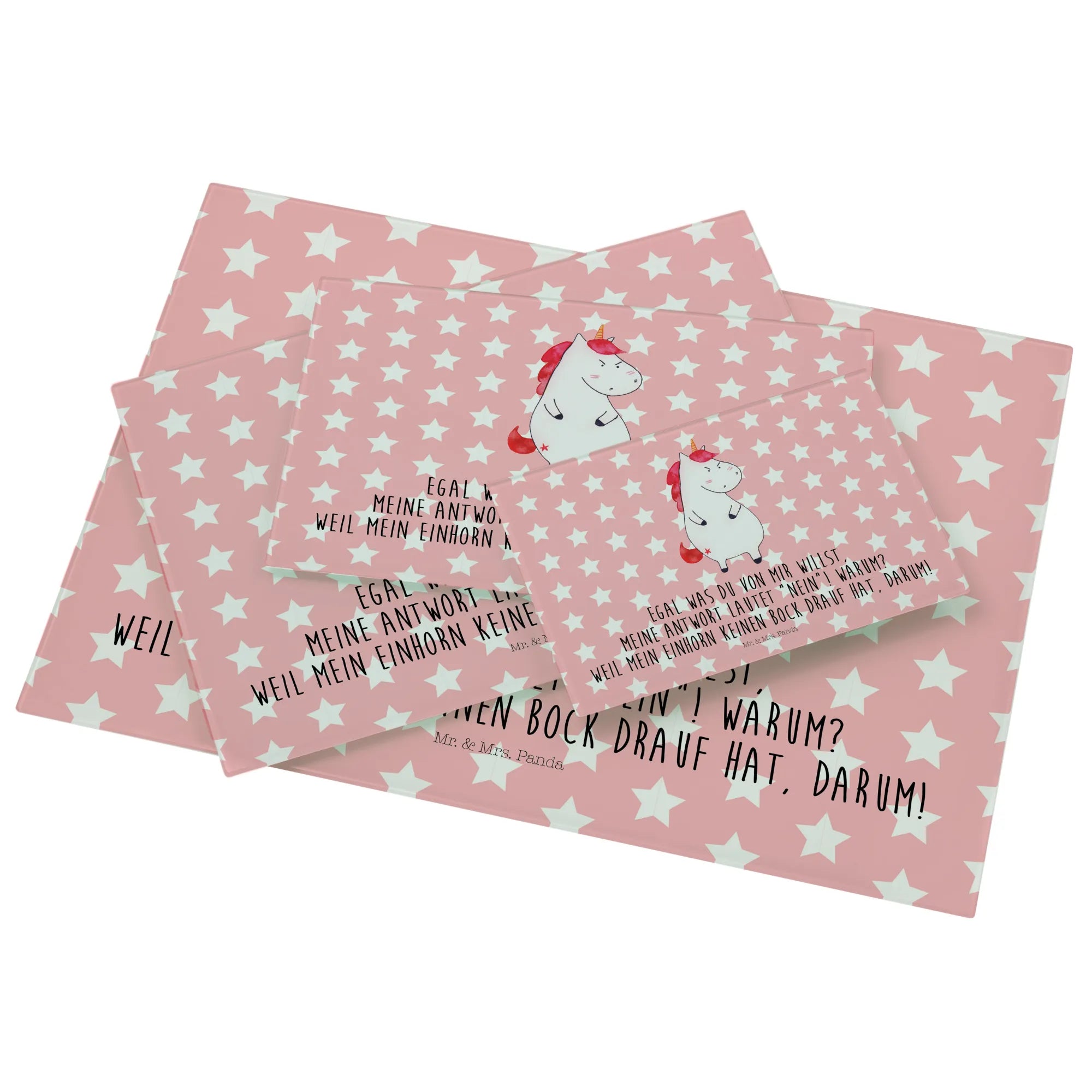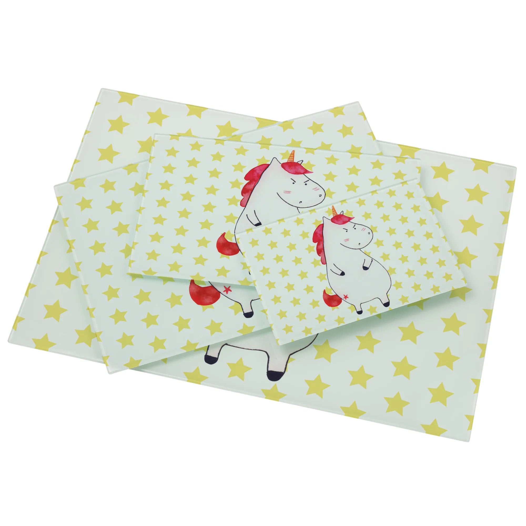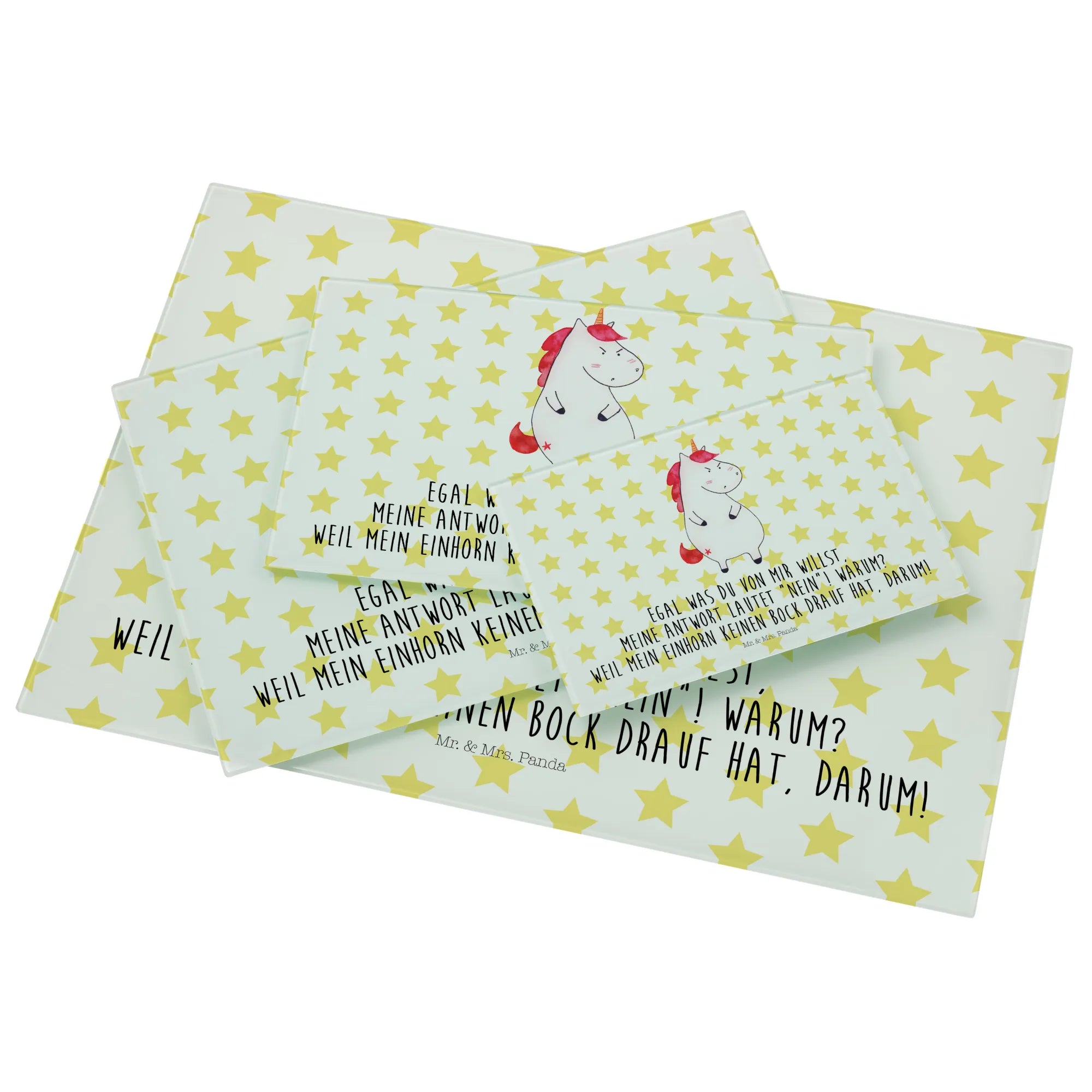 Średnia szklana deska do krojenia Jednorożec gniew - Medium Glas Schneidbrett - z napisem - biały