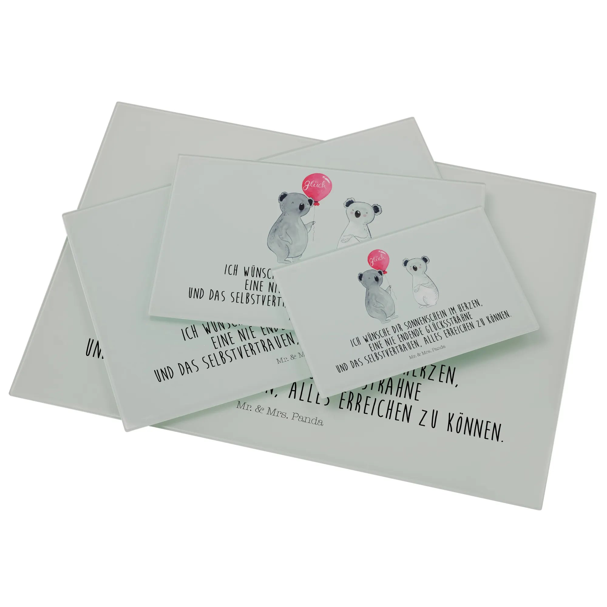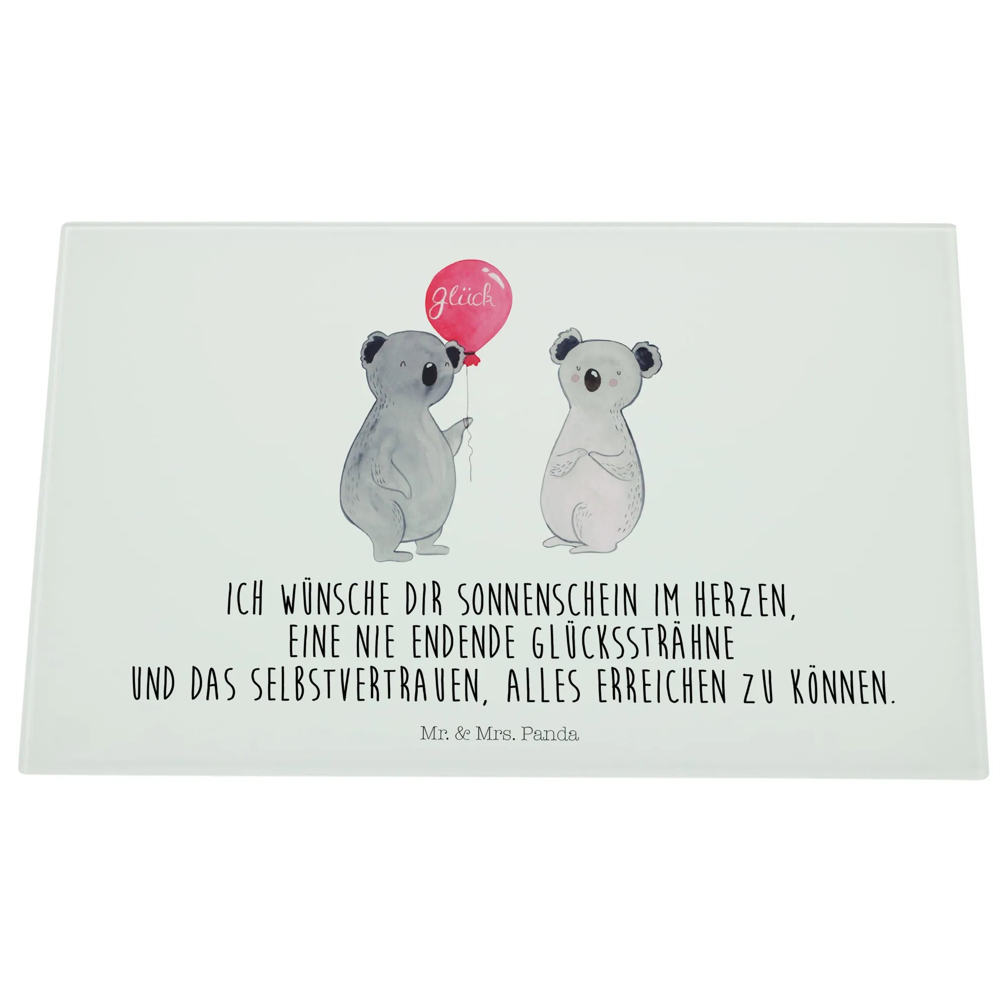 Średnia szklana deska do krojenia koala balon - Medium Glas Schneidbrett - z napisem - biały