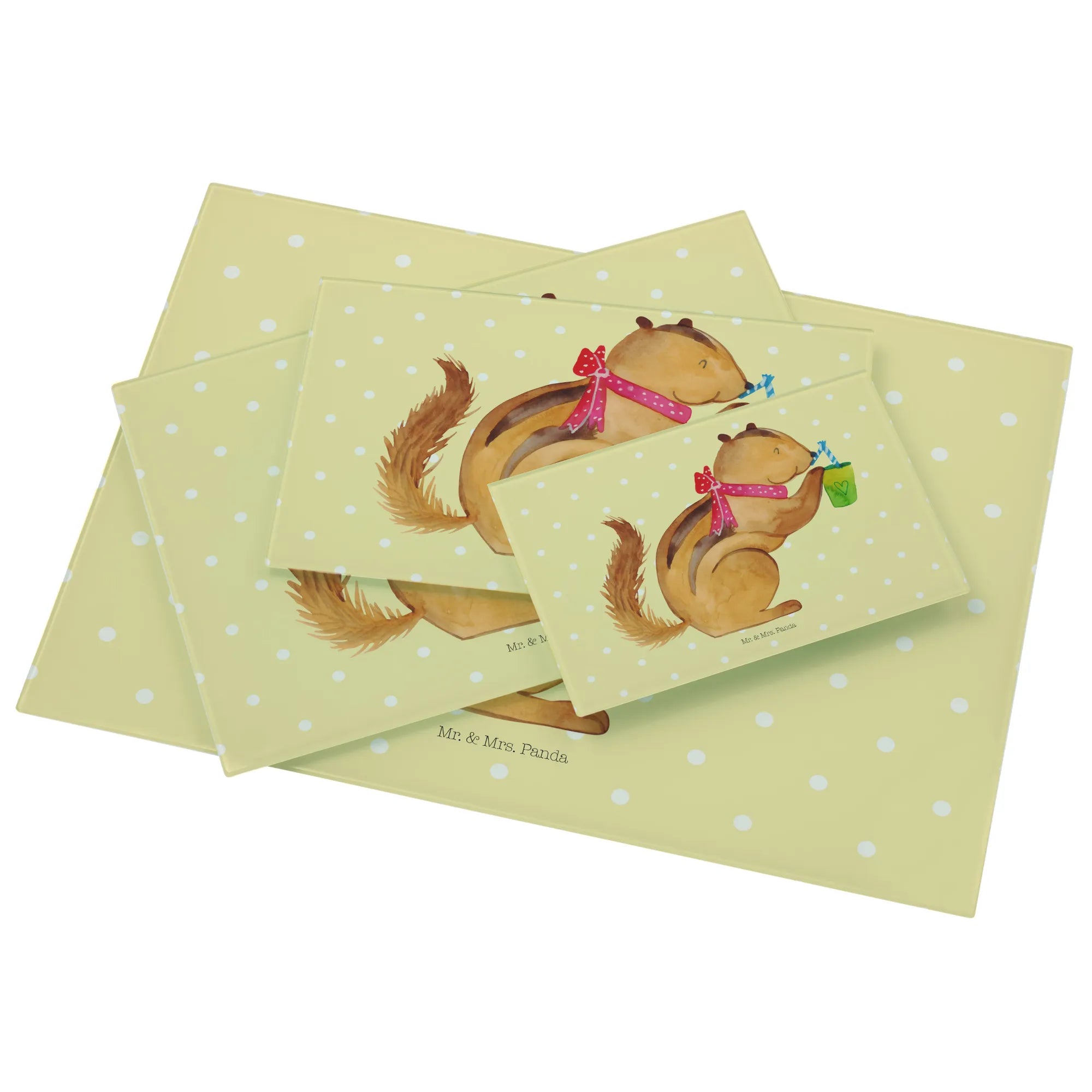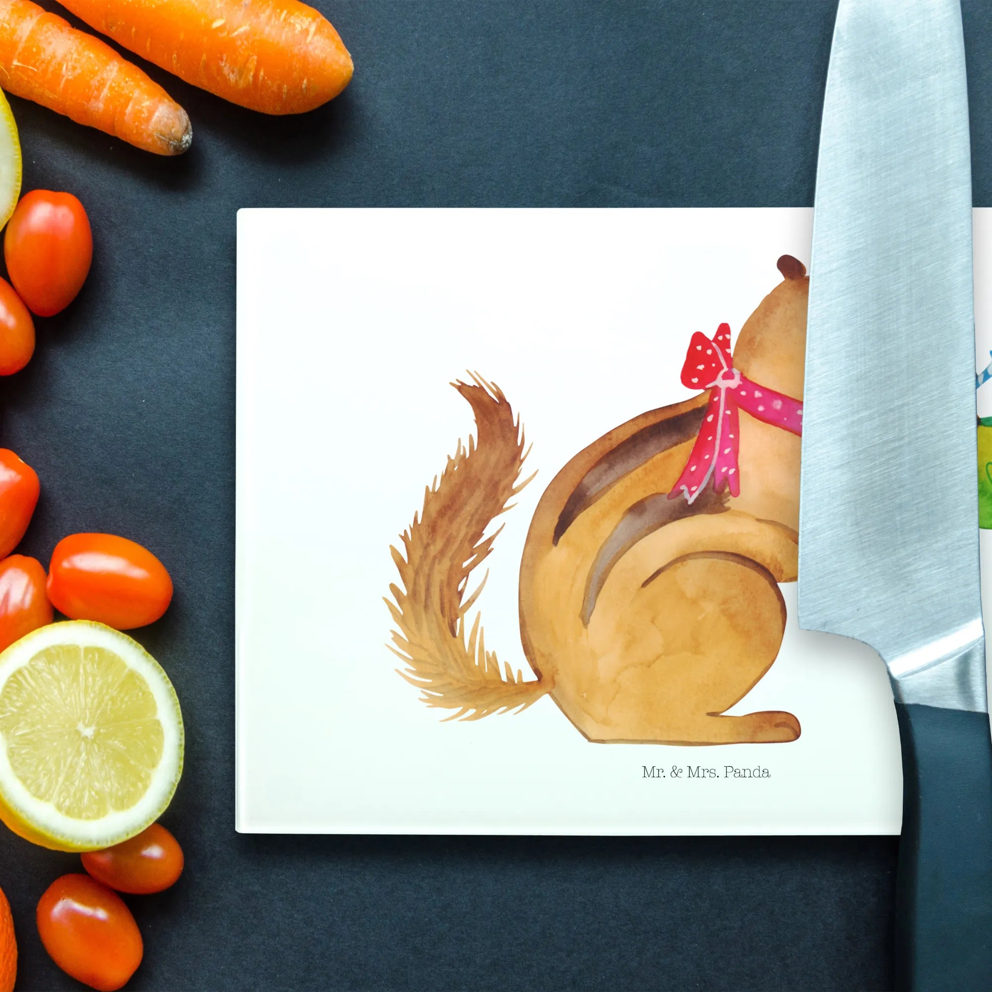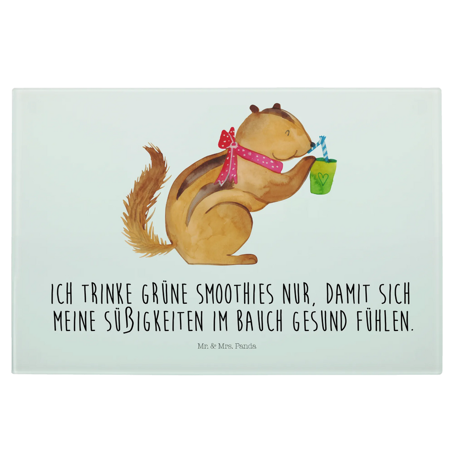 Średnia szklana deska do krojenia wiewiórka Smoothie - Medium Glas Schneidbrett - z napisem - biały