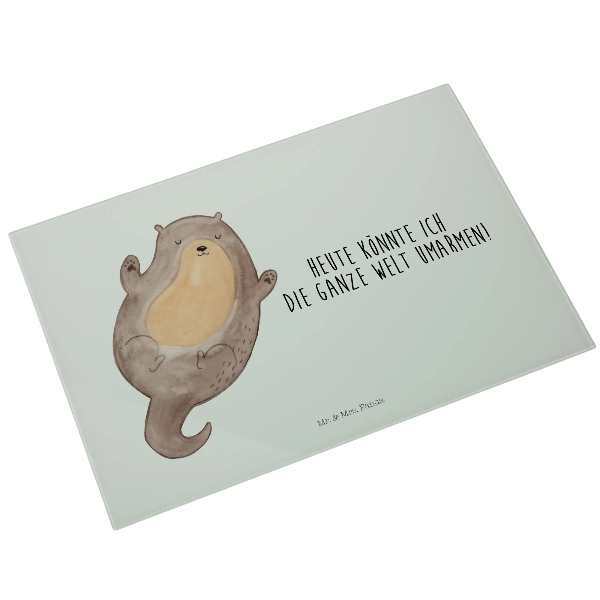 Średnia szklana deska do krojenia wydra Przytulić - Medium Glas Schneidbrett - z napisem - Pastelowy szary