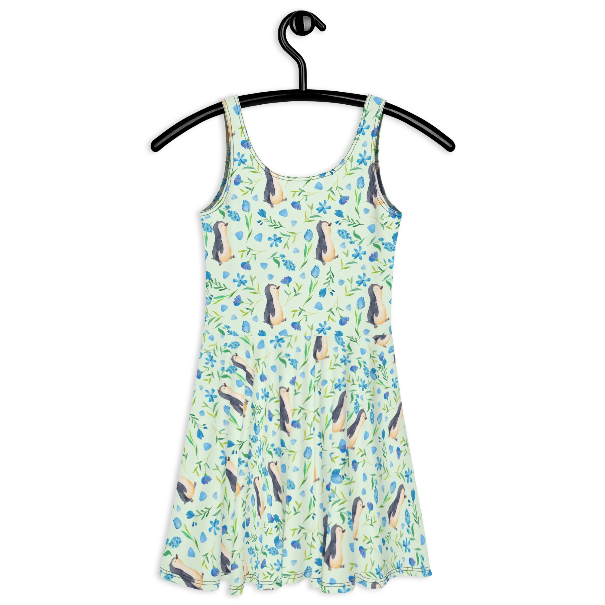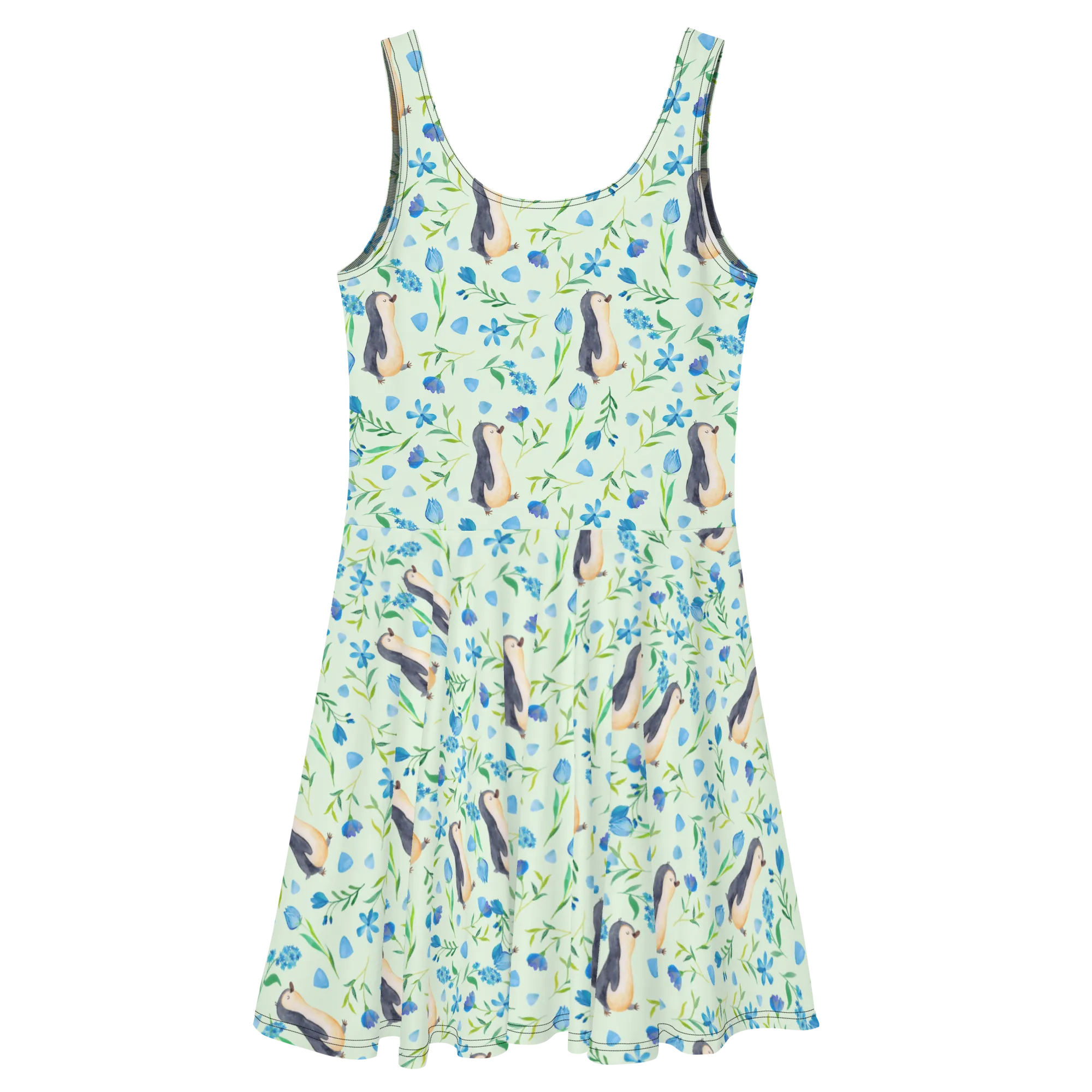 Entdecke das perfekte Sommerkleid von Mr. & Mrs. Panda mit dem bezaubernden Pinguinliebe Design! Dieses it-Kleid ist die perfekte Wahl für die sonnige Jahreszeit und wird all deine Sommerabenteuer begleiten. Mit einem einzigartigen Aquarell-Motiv von fröhlichen Pinguinen und blauen Blumen wird dieses Skaterkleid zum Blickfang in jedem Hafen, Park oder bei einem Picknick im Freien. Die lebendigen Farben und das liebevoll gestaltete Muster machen jede Trägerin zum Star der Sommerfestlichkeiten.