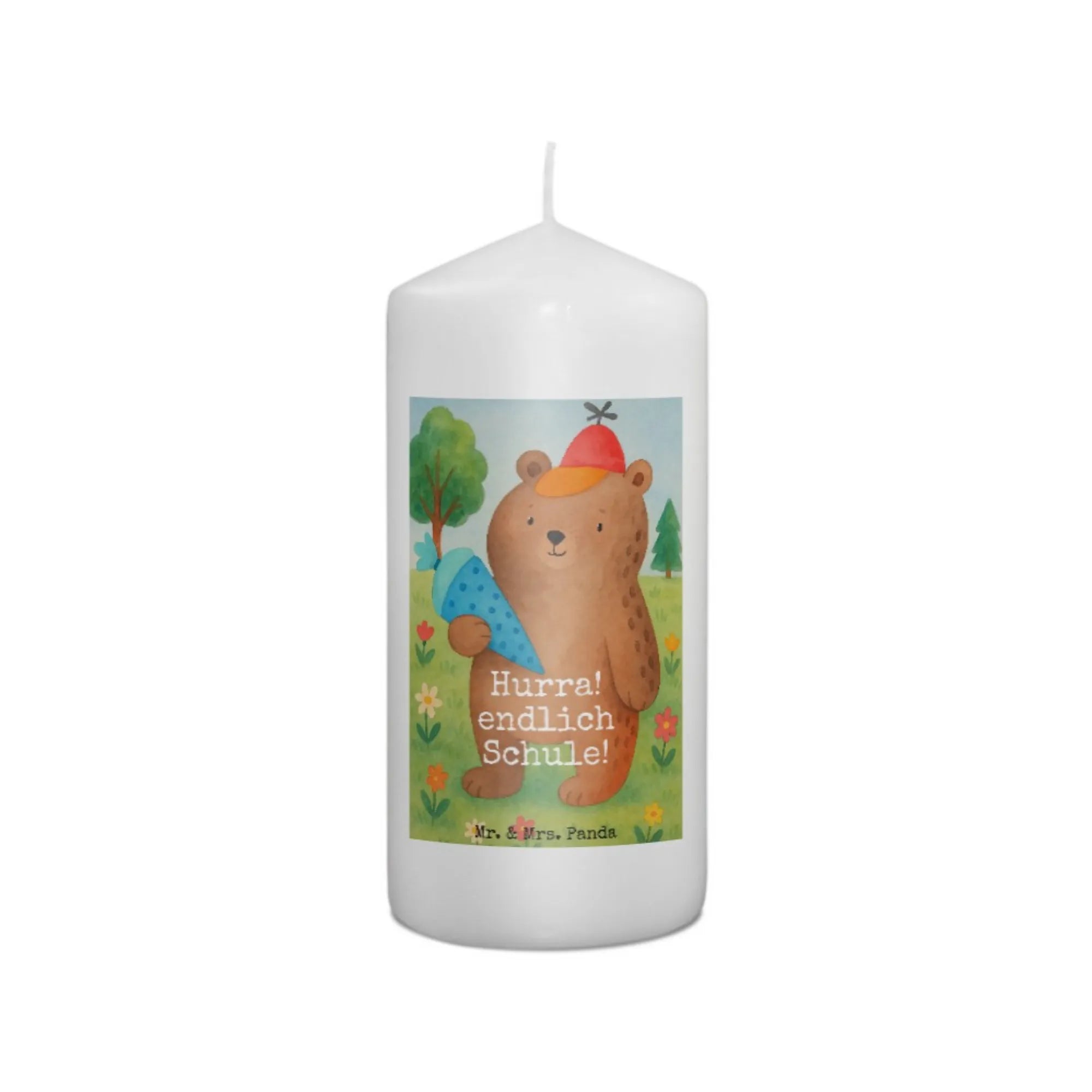 świeca Niedźwiedź Torebka szkolna Design - 15 x 7 cm - z napisem