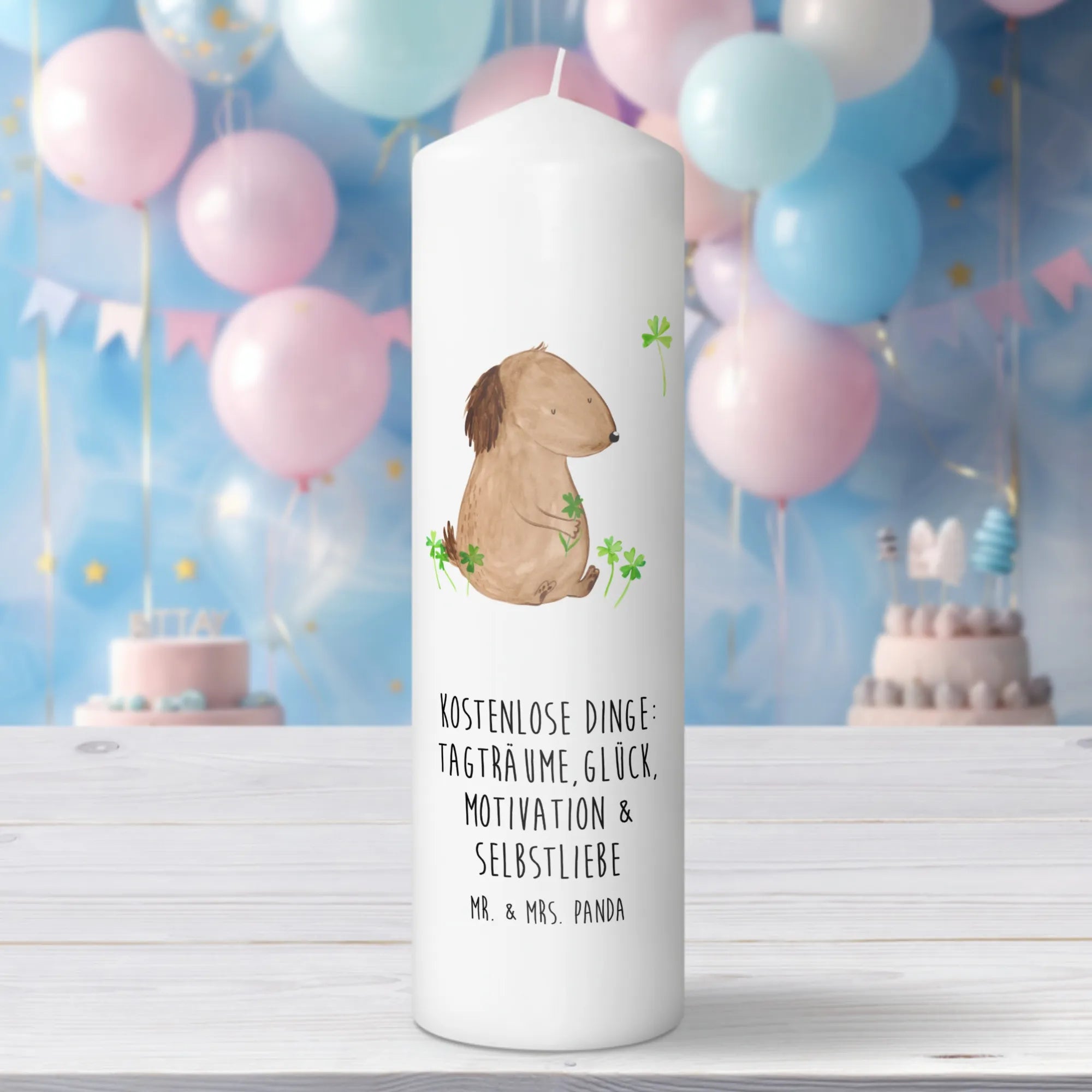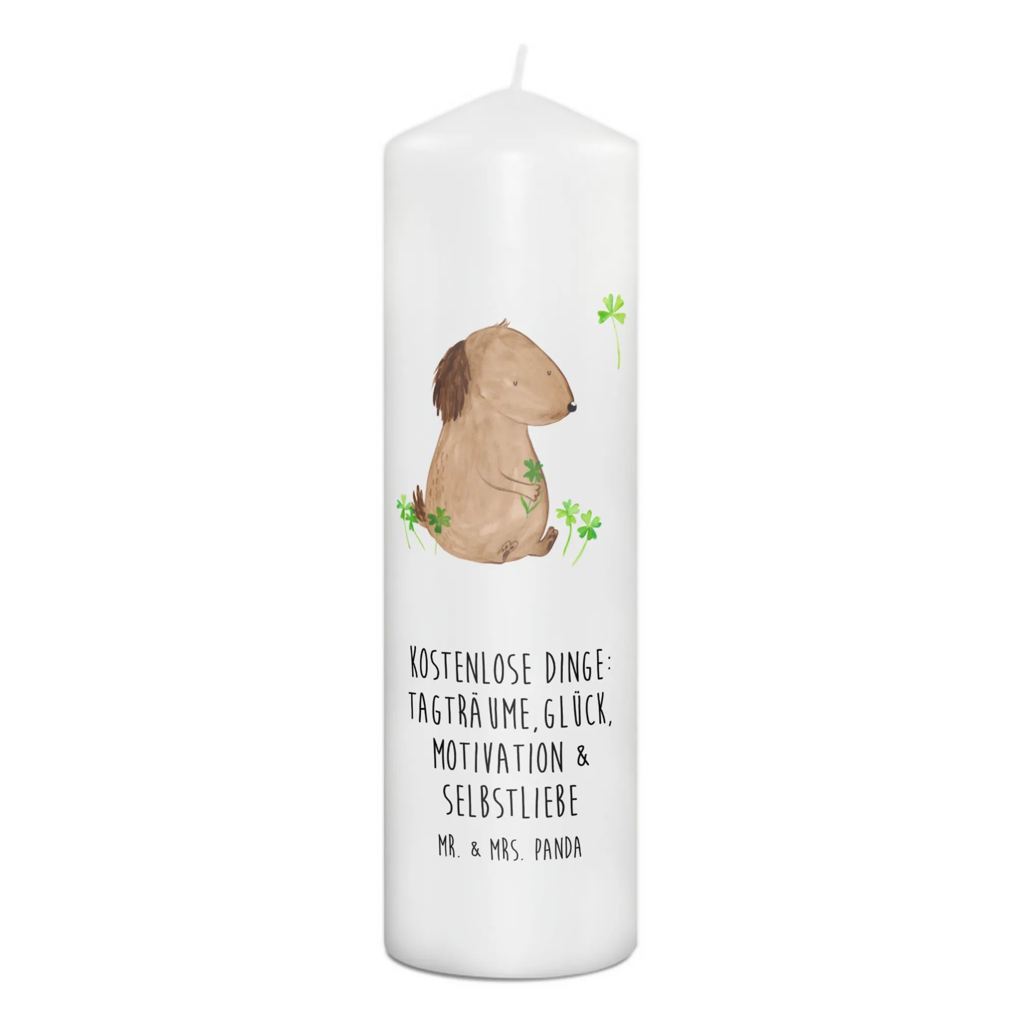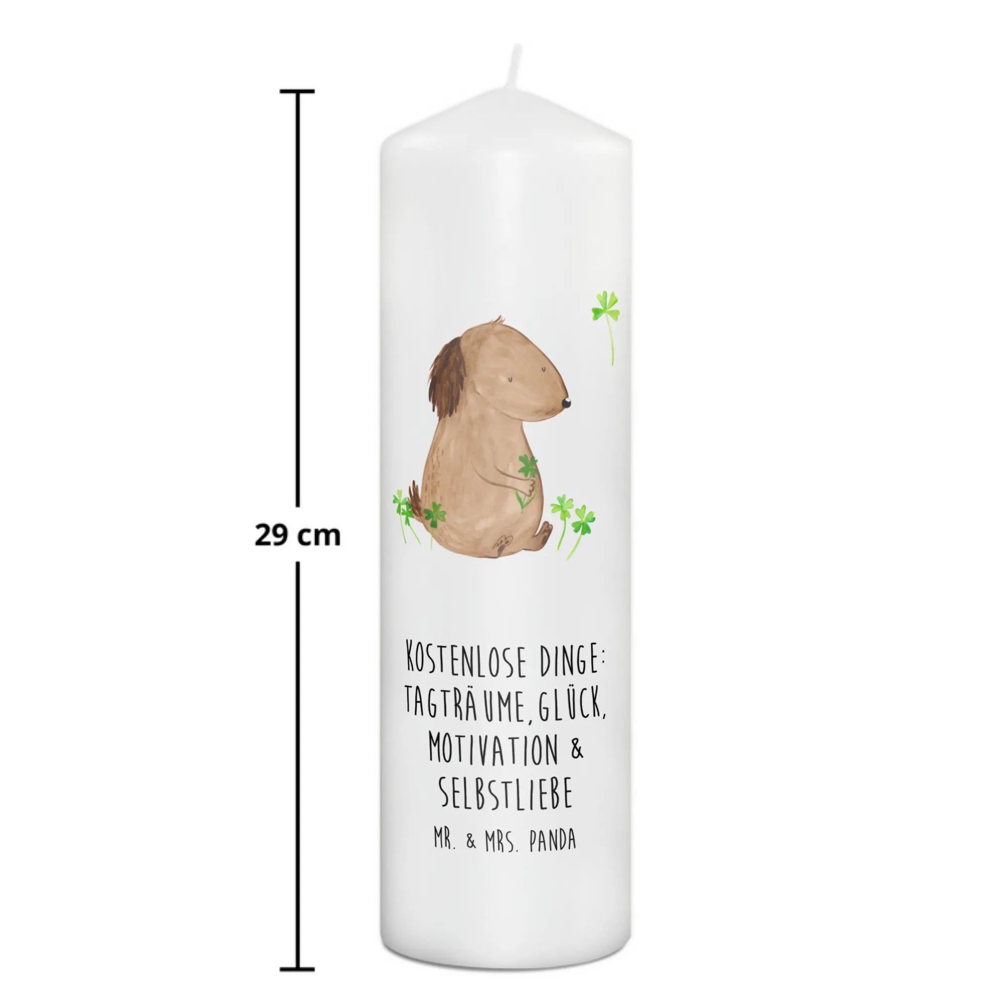 świeca pies koniczyna - 29 x 8 cm XL - z napisem