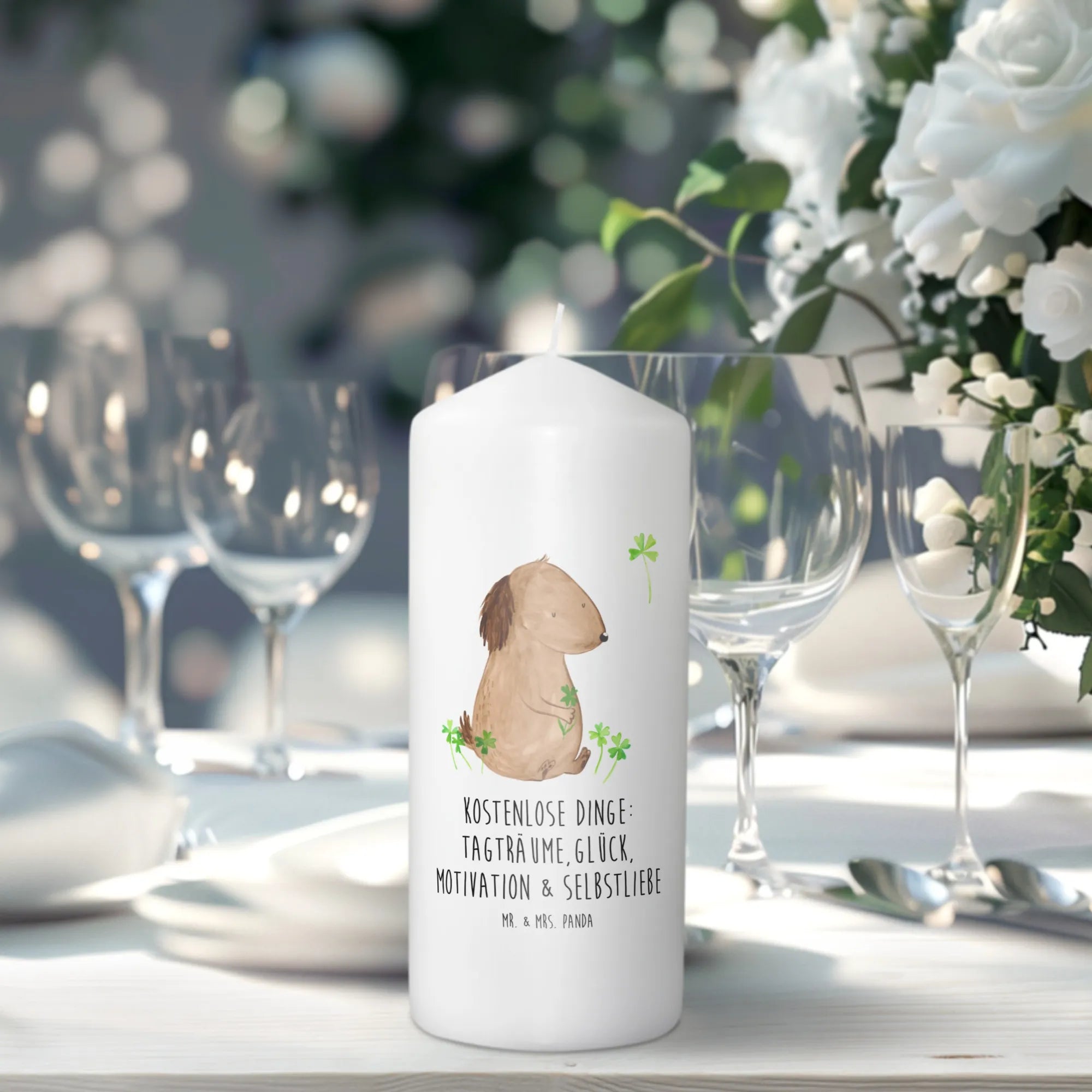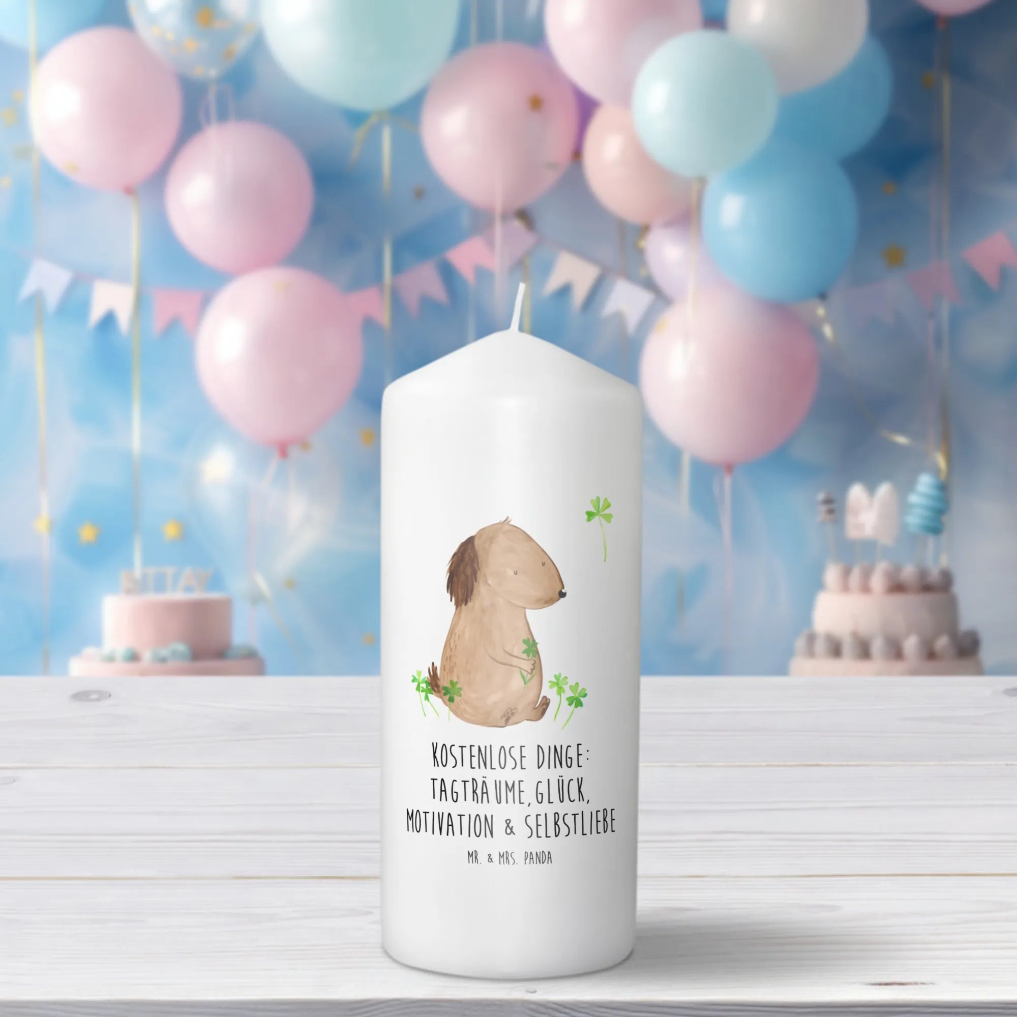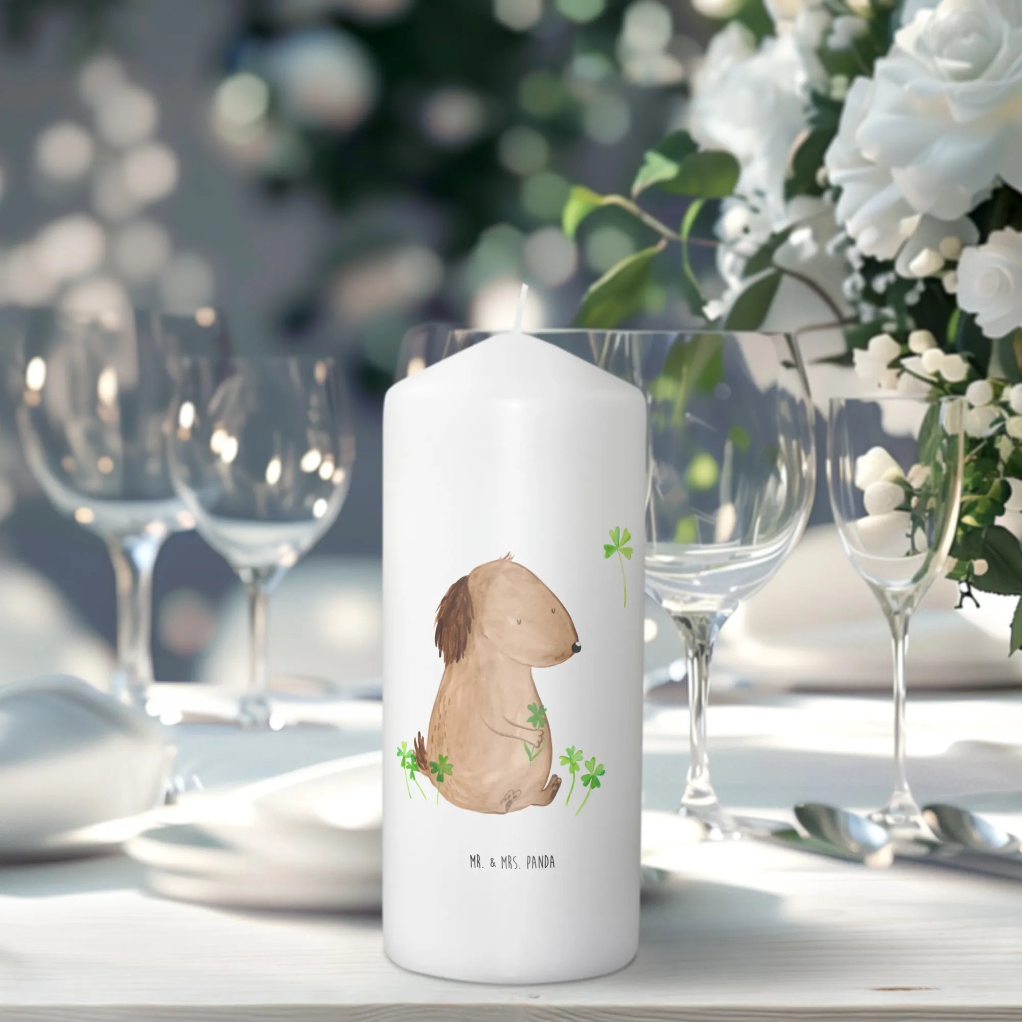 świeca pies koniczyna - 29 x 8 cm XL - z napisem