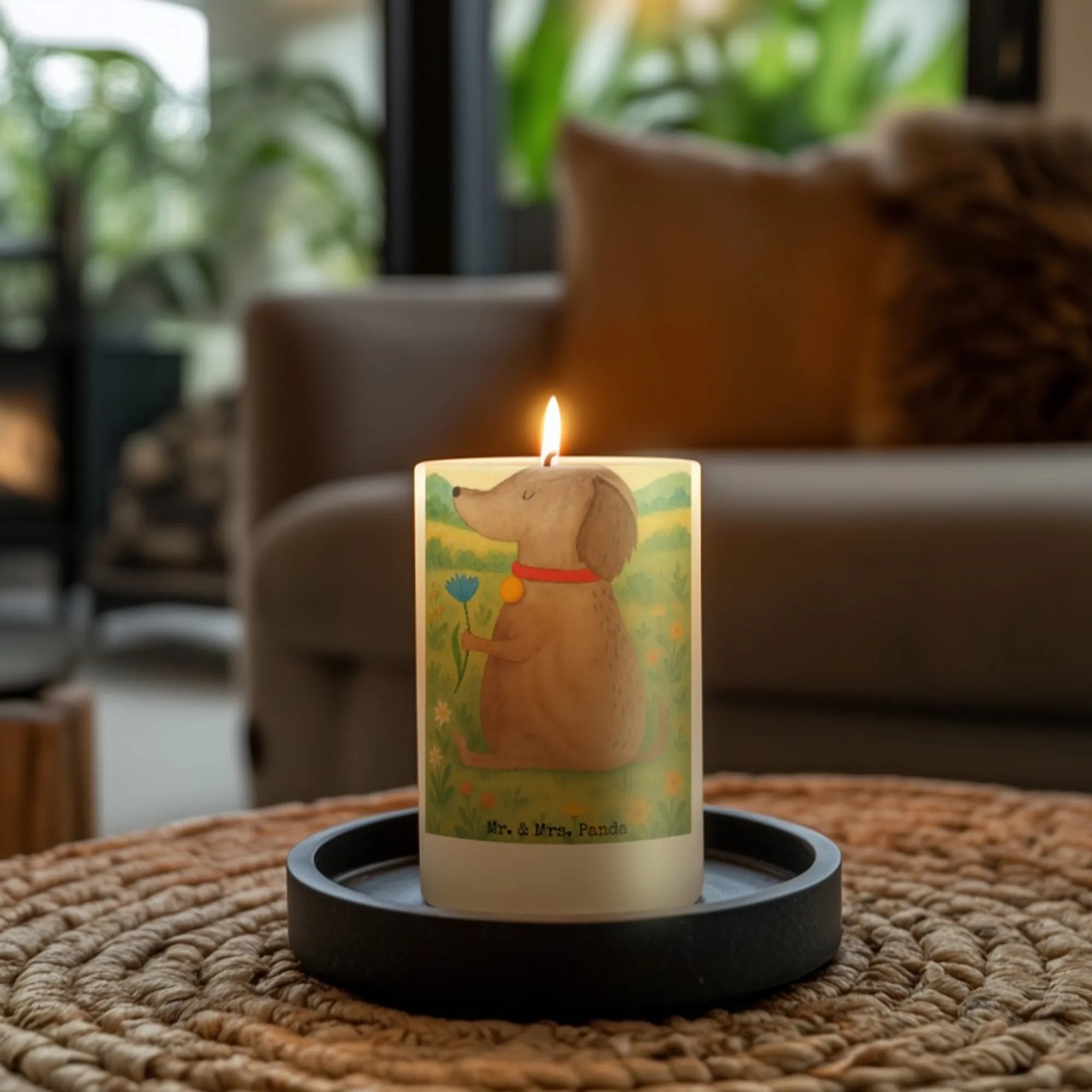 świeca pies kwiat Design - 19 x 8 cm - z napisem