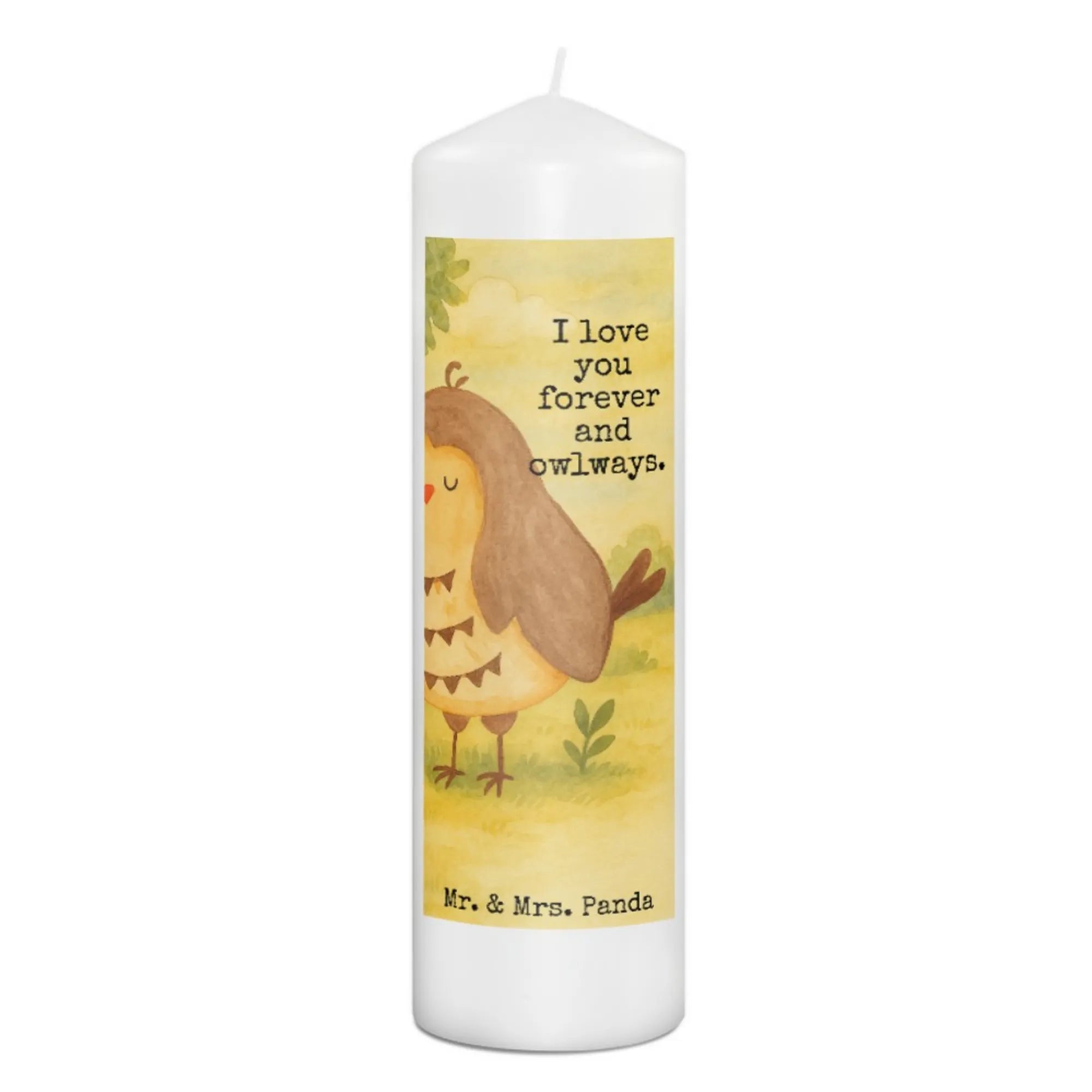 świeca sowa zadowolona Design - 15 x 7 cm - z napisem