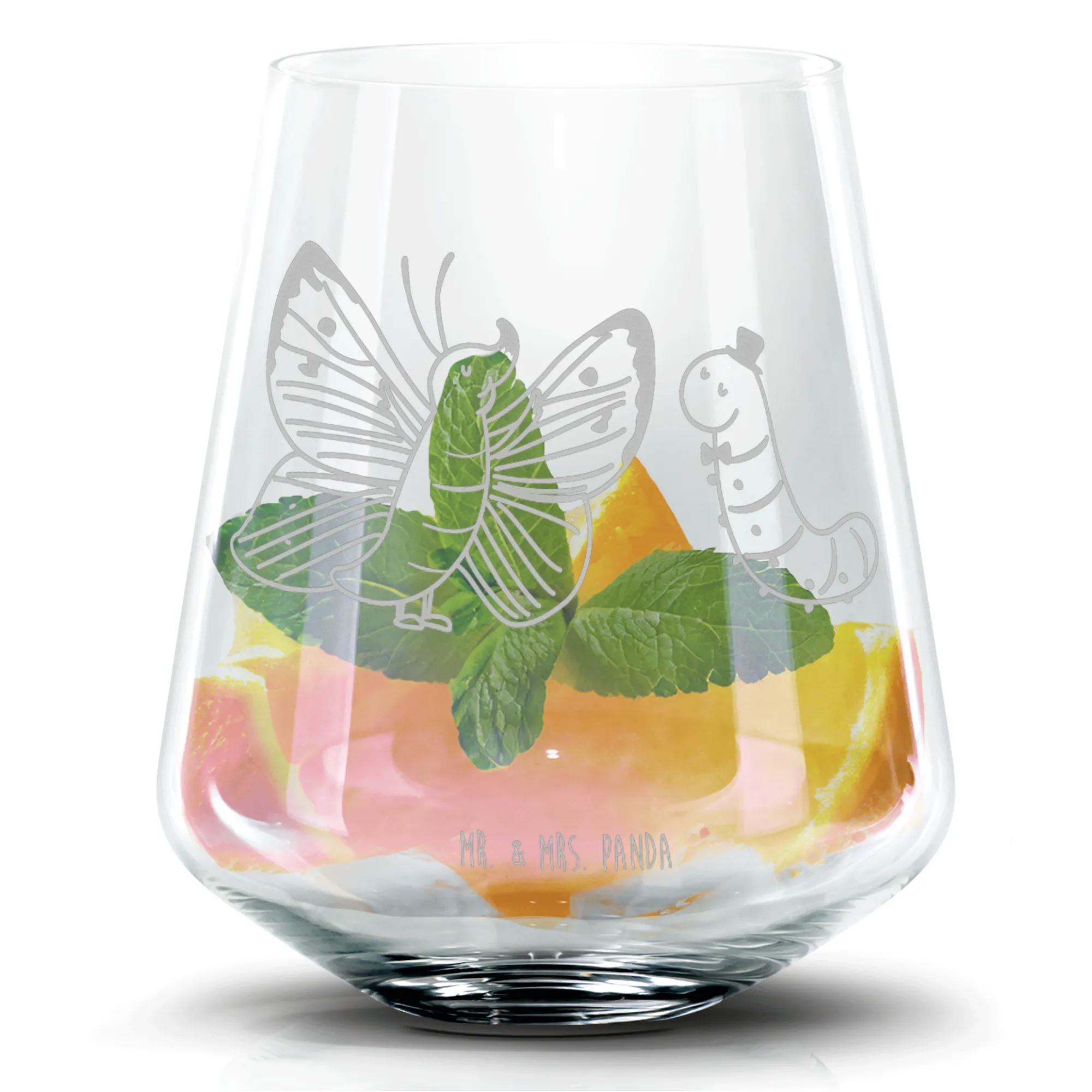 Szklanka koktajlowa gąsienica motyl - z napisem