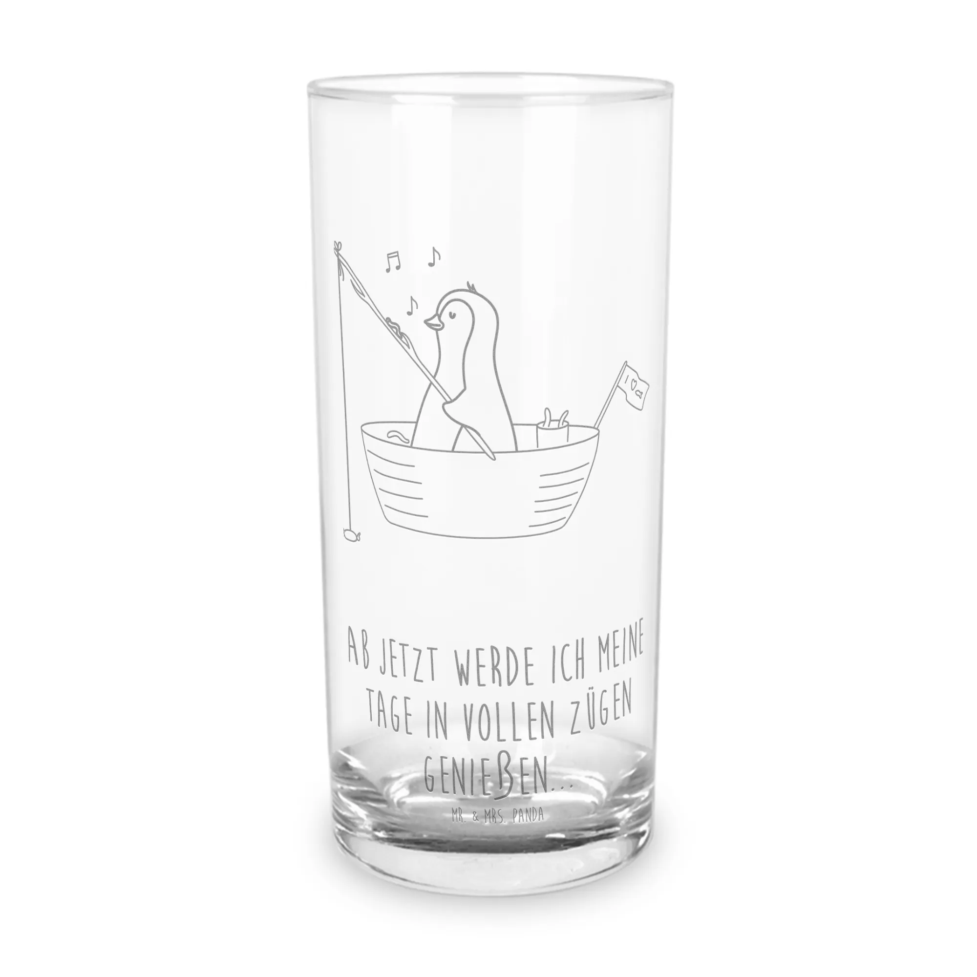 Entdecke unser wunderschönes Wasserglas mit dem süßen Pinguin-Motiv von Mr. & Mrs. Panda! Dieses Trinkglas ist nicht nur ein praktisches Accessoire für jeden Tag, sondern auch ein liebevolles Geschenk für all jene, die das Leben in vollen Zügen genießen möchten. Mit einer Höhe von 134 mm und einem Durchmesser von 74 mm ist es perfekt für dein Lieblingsgetränk – ob Wasser, Tee oder Saft. Das Motiv zeigt einen niedlichen Pinguin, der in seinem kleinen Angelboot mit Bonbons am Haken angelt, und es wird dich bei jedem Schluck zum Schmunzeln bringen.