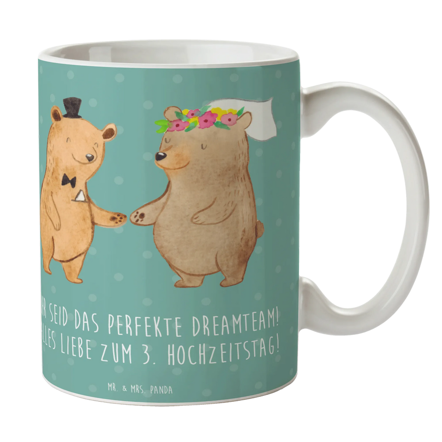 Die perfekte Tasse für den 3. Hochzeitstag! Diese wunderschöne Tasse von Mr. & Mrs. Panda ist nicht nur ein praktisches Accessoire für den täglichen Kaffeegenuss, sondern auch ein liebevolles Geschenk für alle, die ihre Lederhochzeit feiern. Mit dem Slogan "Ihr seid das perfekte Dreamteam! Alles Liebe zum 3. Hochzeitstag!" wird dieser Becher zum idealen Ausdruck Deiner Wertschätzung für das glückliche Paar.