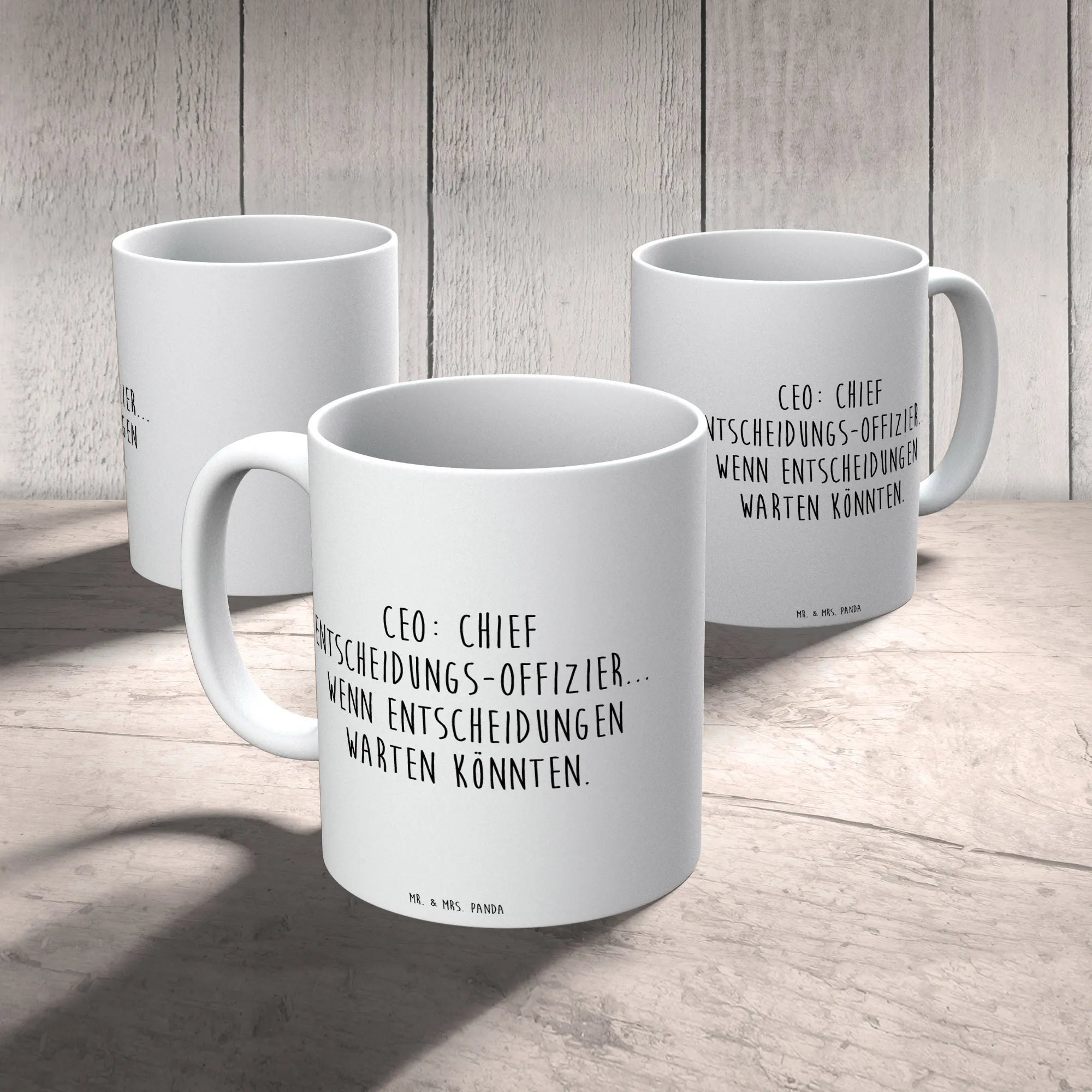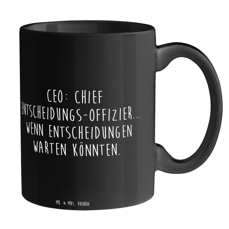 Die wunderschöne spülmaschinenfeste Keramiktasse von Mr. & Mrs. Panda ist DER perfekte Begleiter für jeden CEO – oder auch für die, die es werden wollen! Diese Tasse mit dem charmanten Motiv 'CEO: Chief Entscheidungs-Offizier... wenn Entscheidungen warten könnten.' ist mehr als nur ein Becher. Sie ist eine tägliche Motivation, ein täglicher Reminder für all die wichtigen Entscheidungen, die Du als Führungskraft treffen musst.