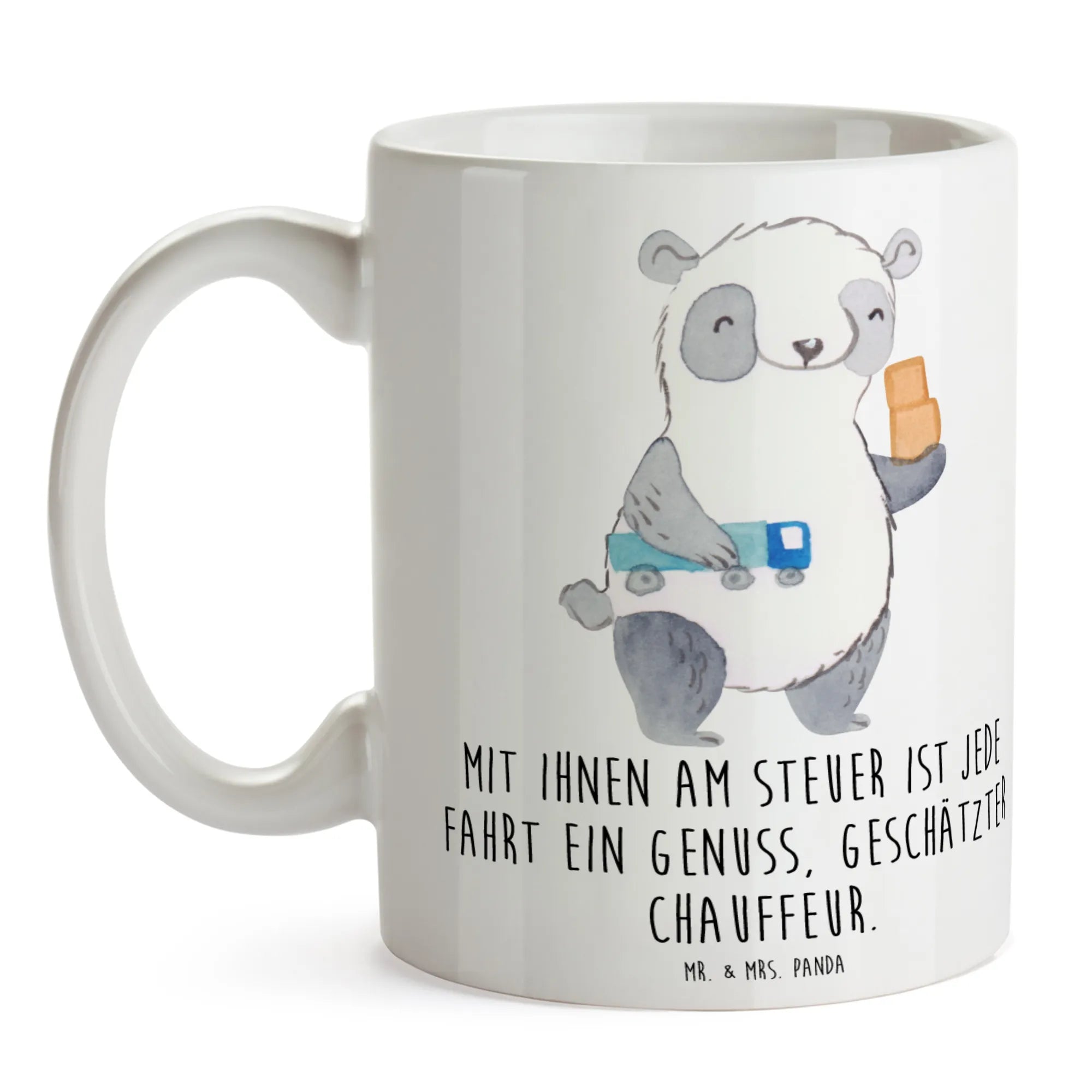 Du suchst ein liebevolles Dankeschön für den Chauffeur in deinem Leben? Unsere Mr. & Mrs. Panda Tasse Chauffeur aus der Danke-Kollektion ist eine herzerwärmende und praktische Geschenkidee. Auf der Tasse steht der Satz: „Mit Ihnen am Steuer ist jede Fahrt ein Genuss, geschätzter Chauffeur.“ – eine stilvolle Botschaft, die Fahrer aller Art zu schätzen wissen 🚗☕️.