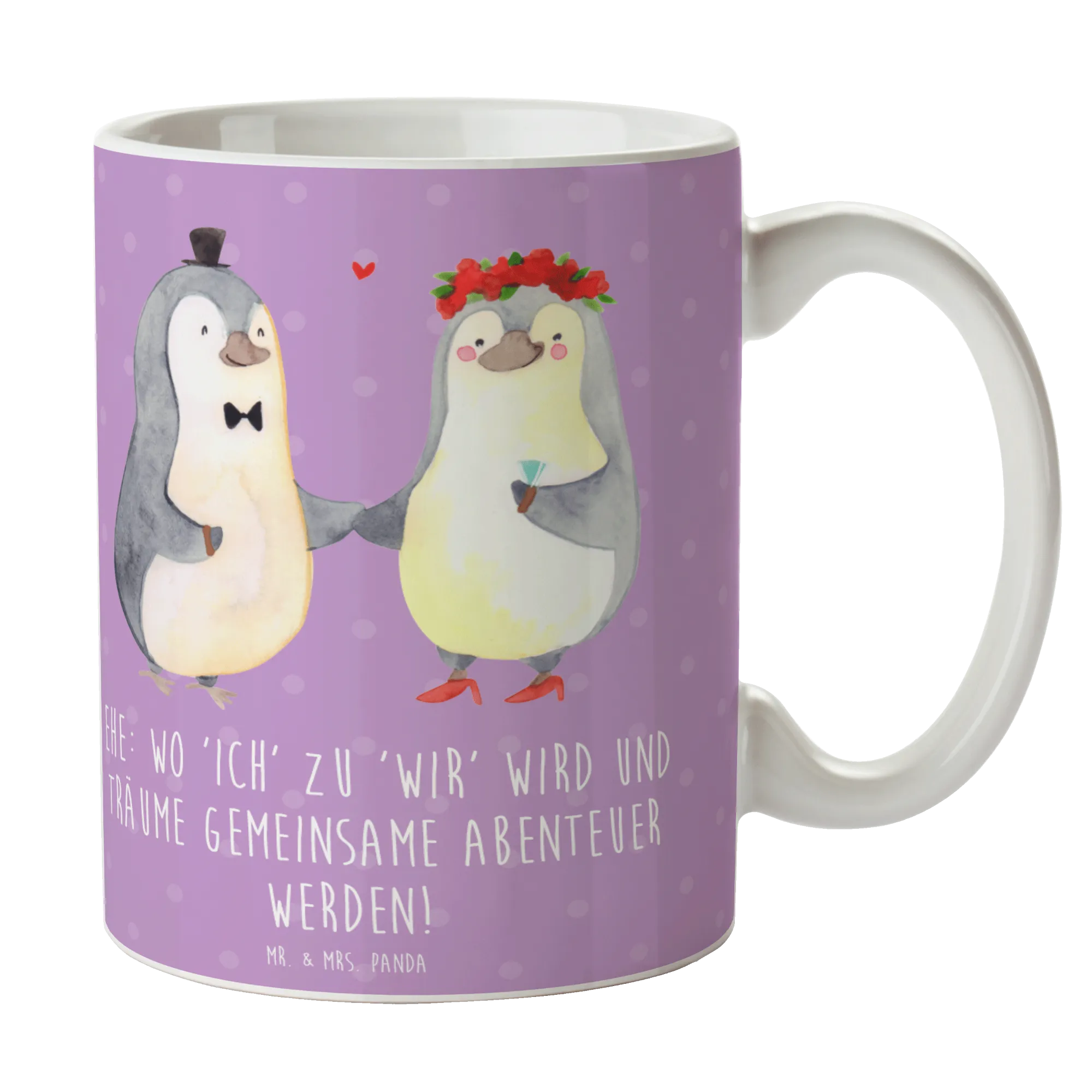 Die Tasse Hochzeitsfeier aus der liebevollen Hochzeit-Kollektion von Mr. & Mrs. Panda ist das perfekte Geschenk für frisch Verheiratete oder zukünftige Brautpaare! Mit dem zauberhaften Spruch "Ehe: wo 'Ich' zu 'Wir' wird und Träume gemeinsame Abenteuer werden!" bringt diese Tasse nicht nur Freude zum täglichen Kaffee- oder Teegenuss, sondern auch eine Prise Romantik in jede Pause.